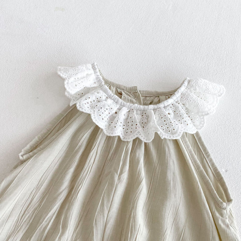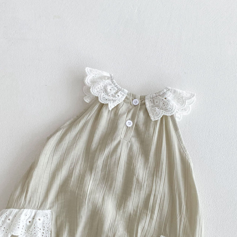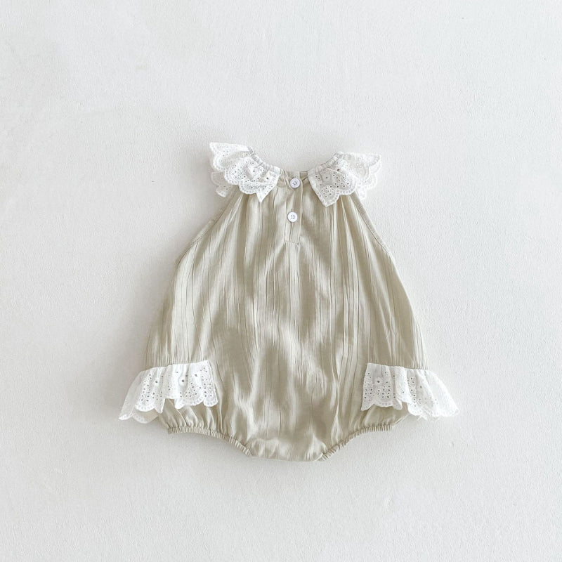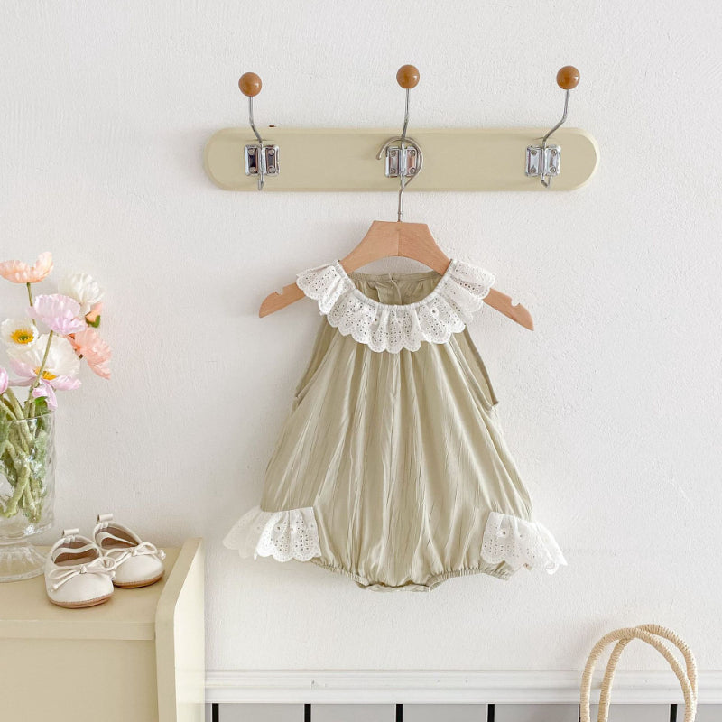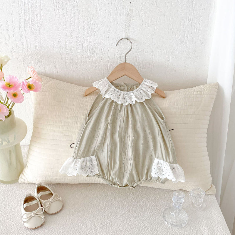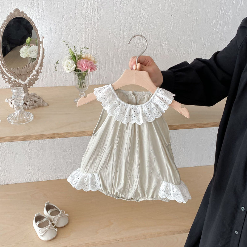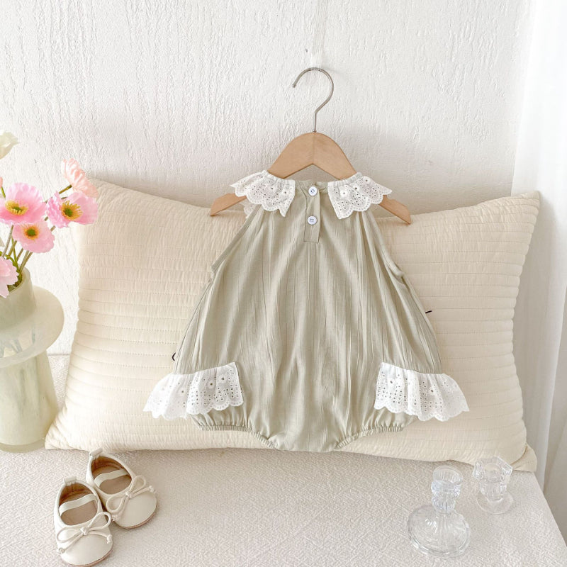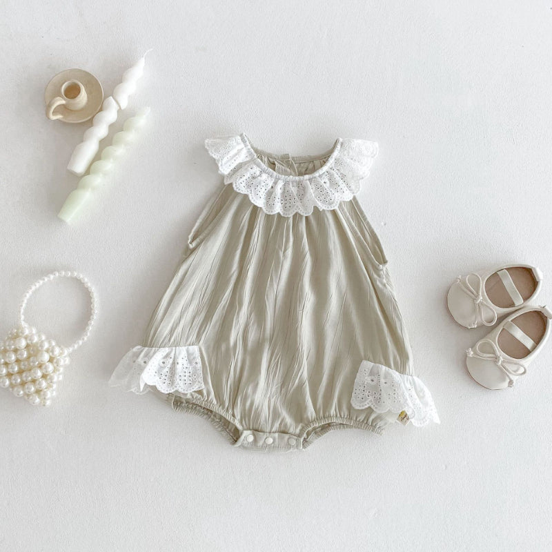 【BABY】夏新作 レース襟ノースリーブロンパースSK082602