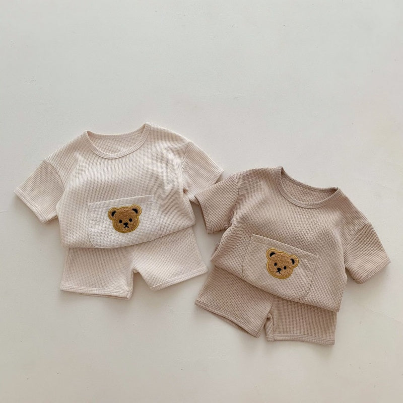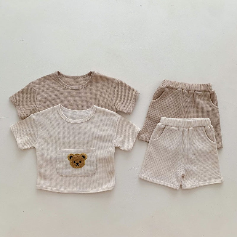 【BABY】夏新作 ワッフル大ポケットくまセットアップSK092621