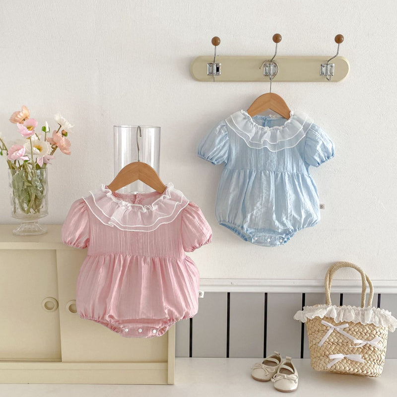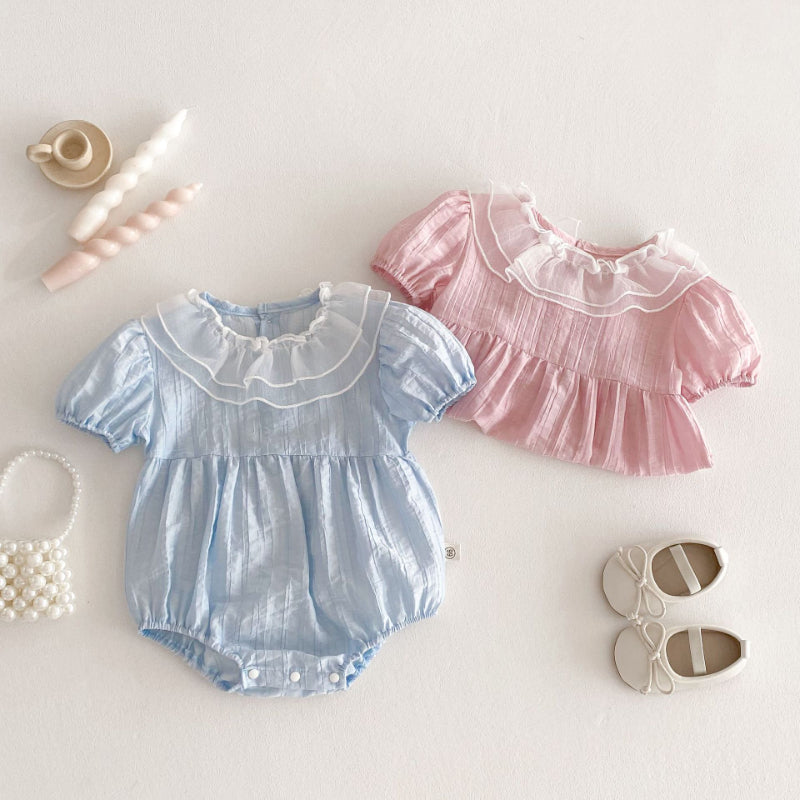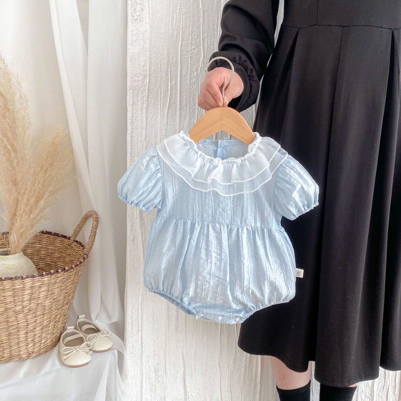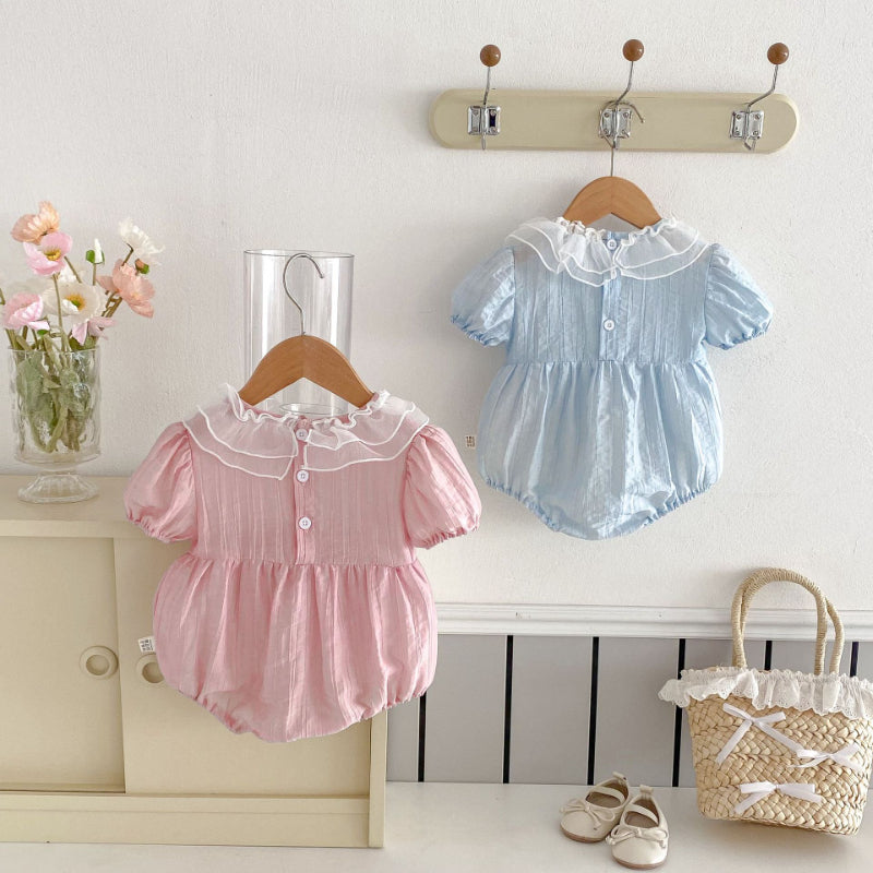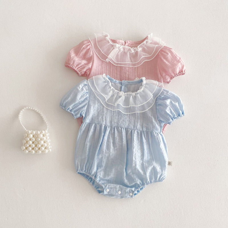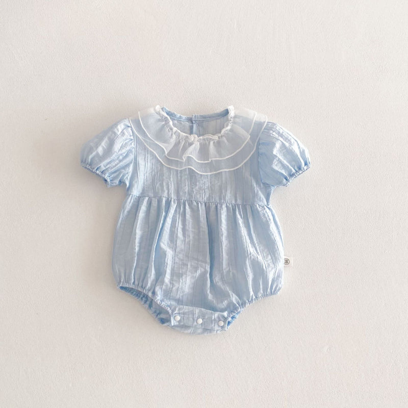 【BABY】夏新作 二重レース襟パフスリーブロンパースSK072303