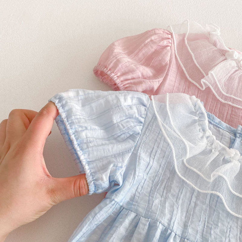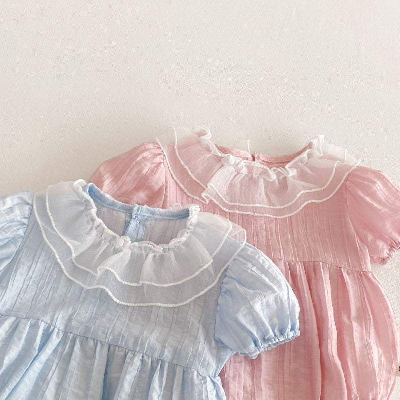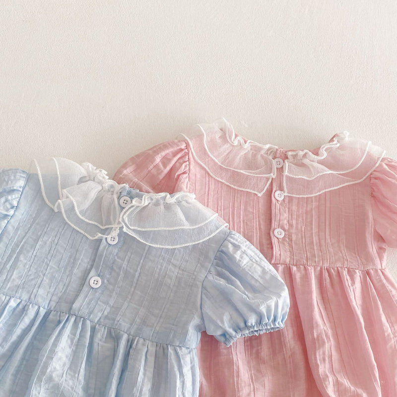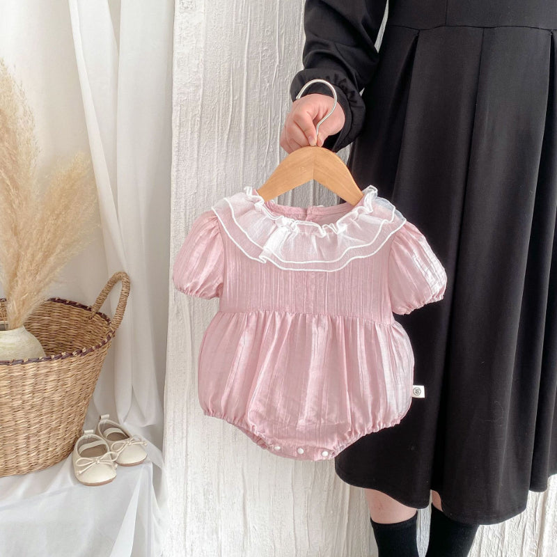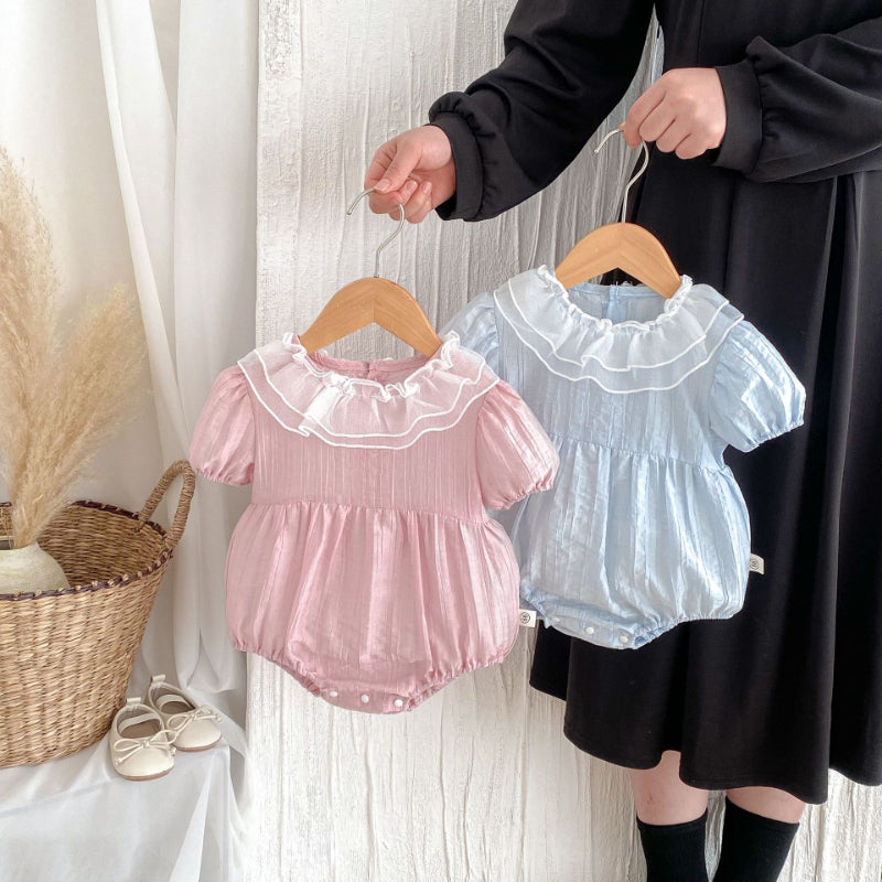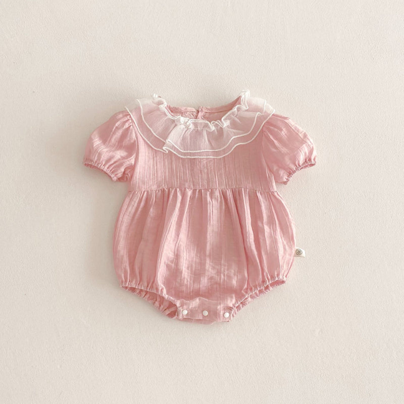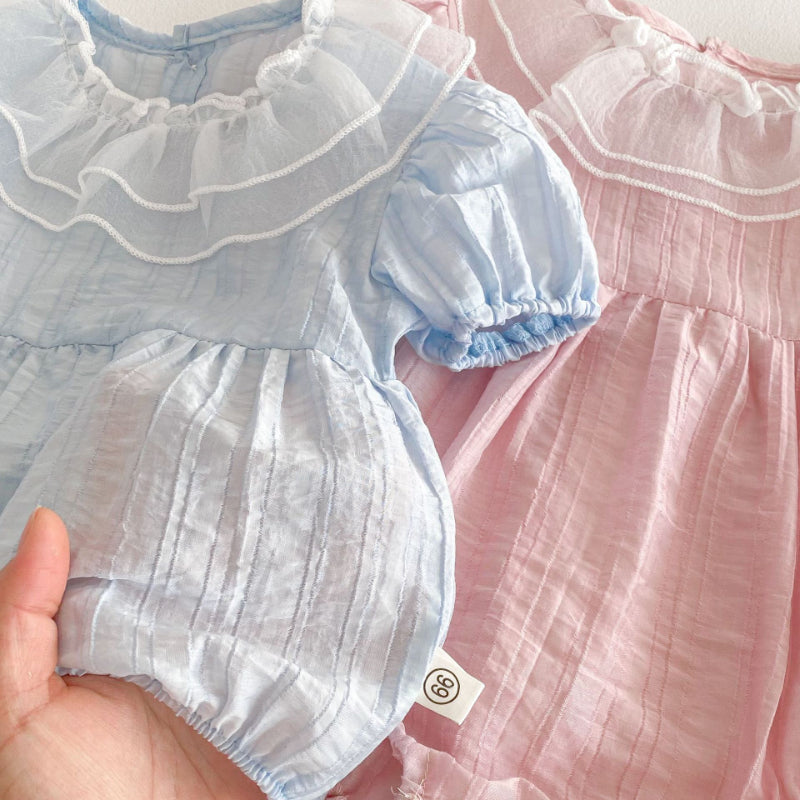 【BABY】夏新作 二重レース襟パフスリーブロンパースSK072303