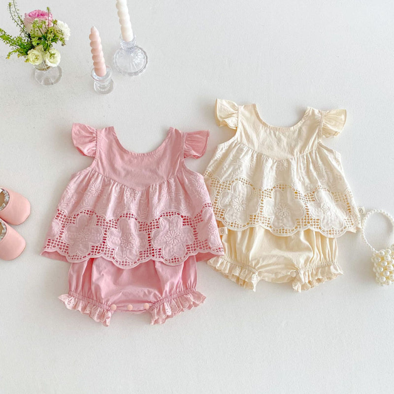 【BABY】夏新作 刺繍フリル袖セットアップSK080601