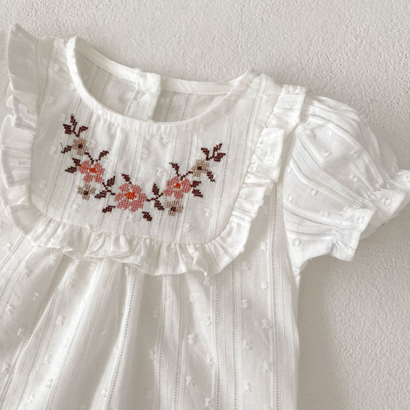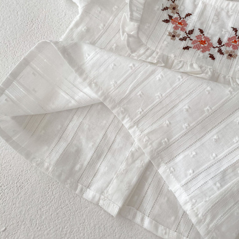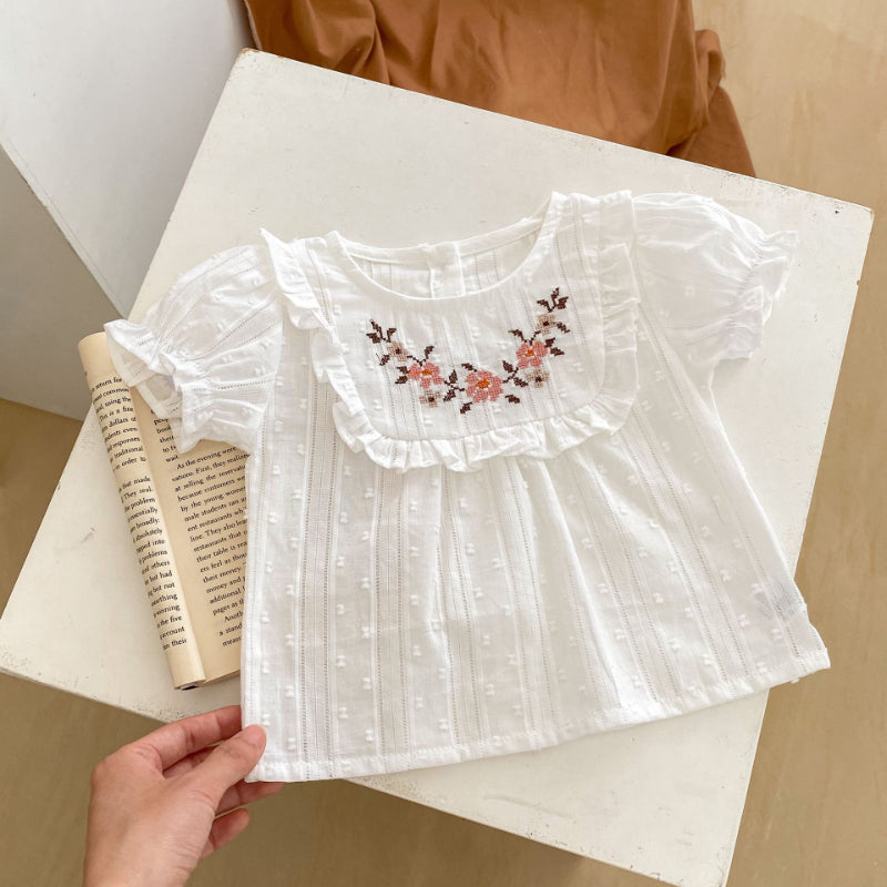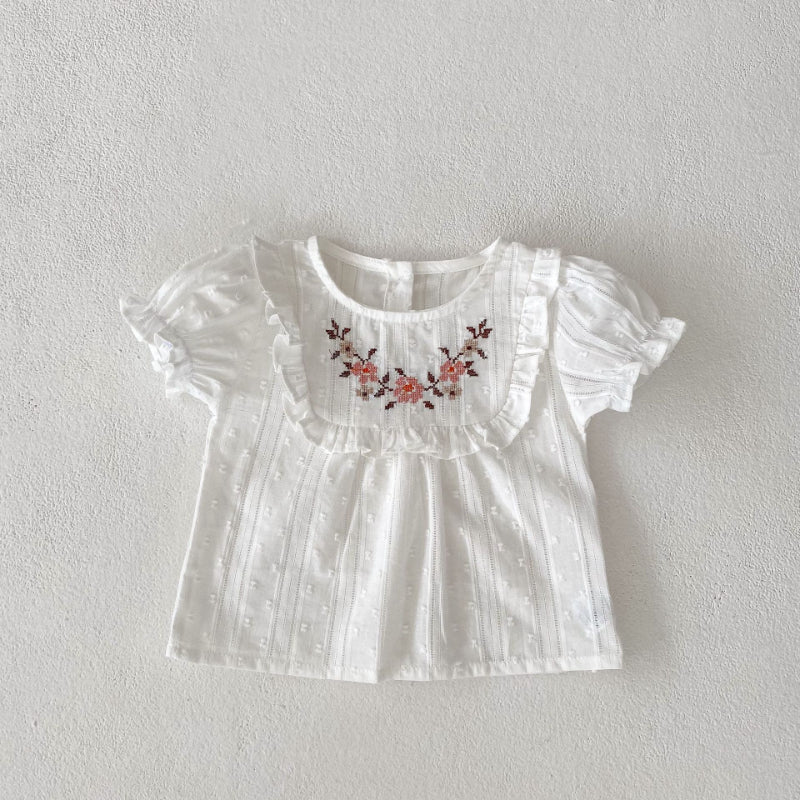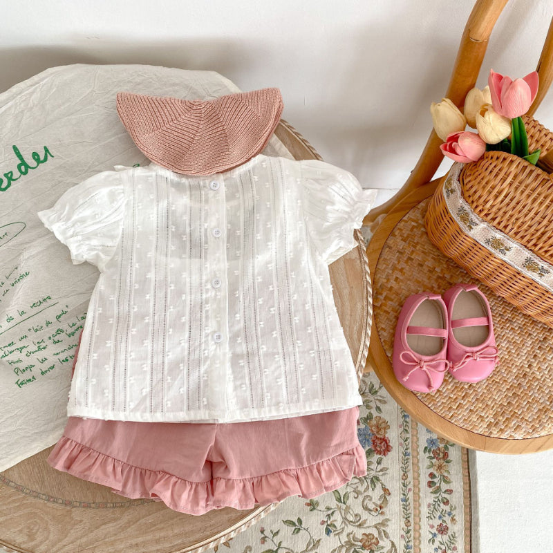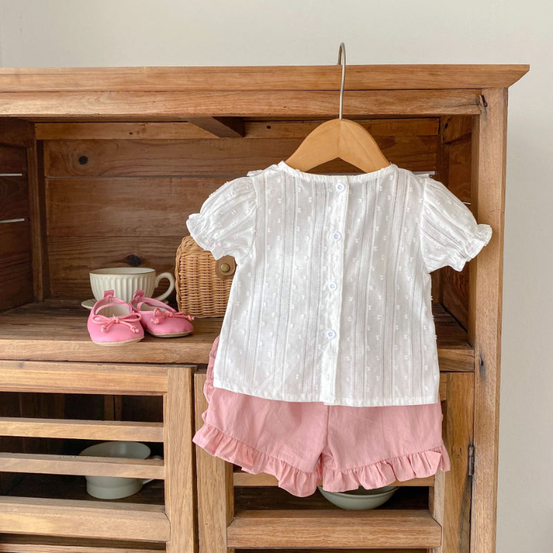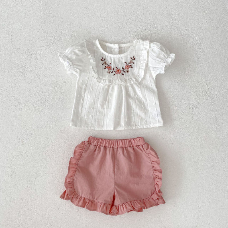 【BABY】夏新作 刺繍入りパフスリーブトップス&フリルショートパンツセットアップSK071919