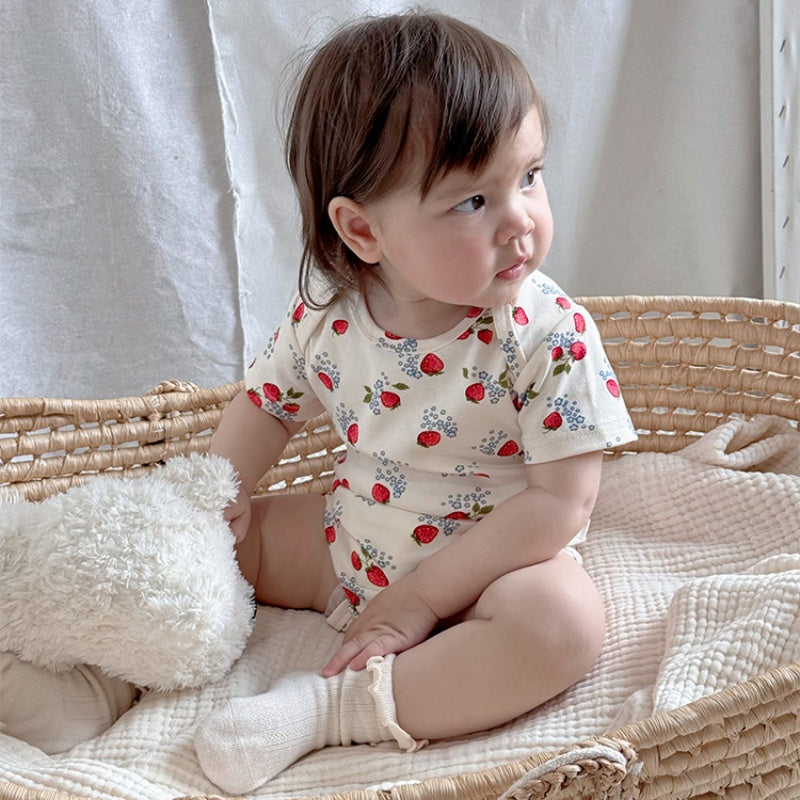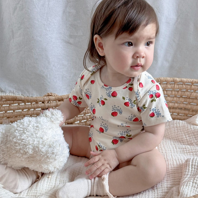 【BABY】夏新作 北欧風いちご、りんご、レモン柄オールインワンSKO71508