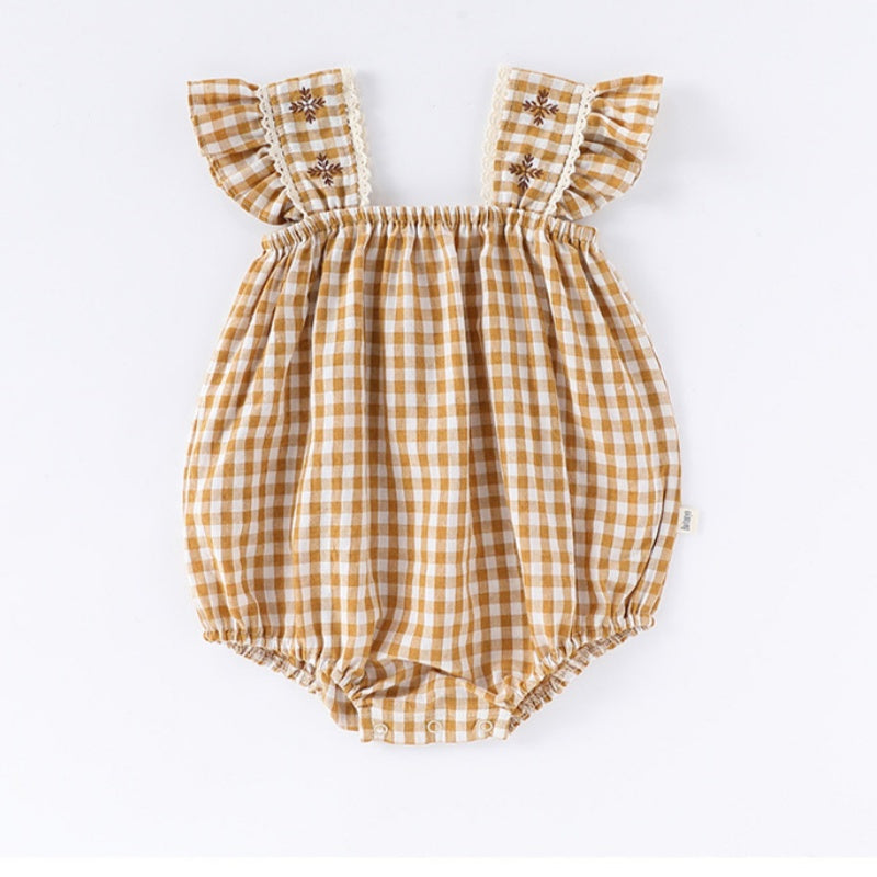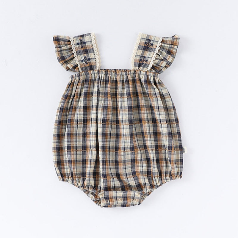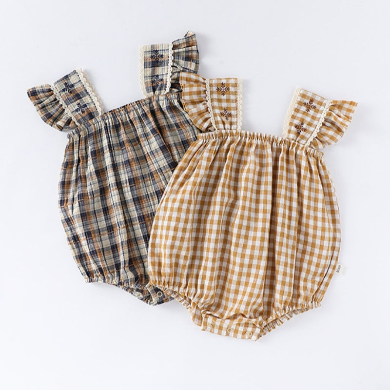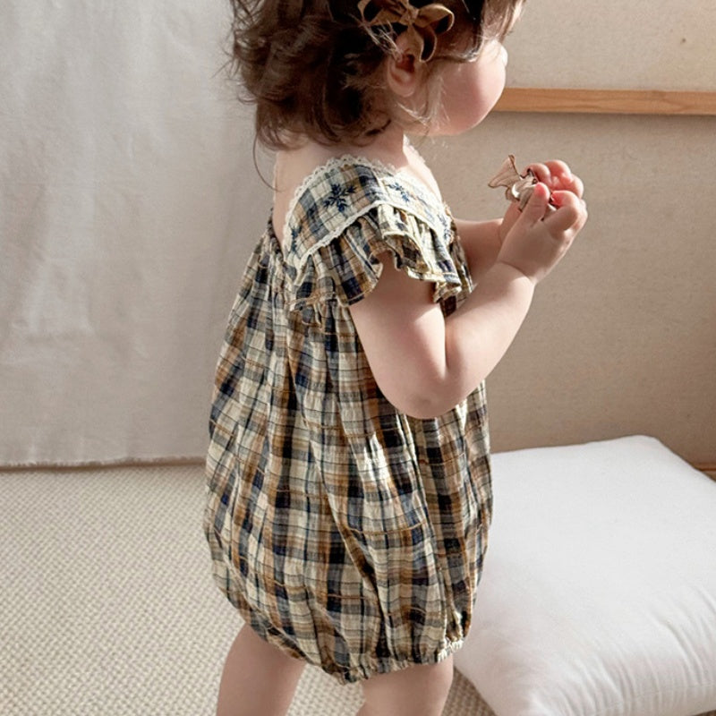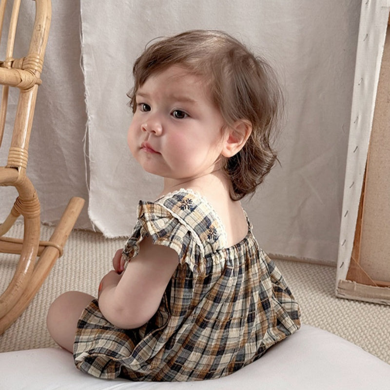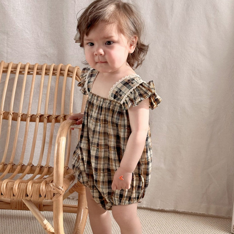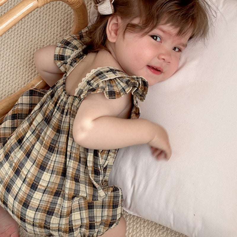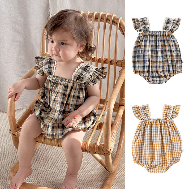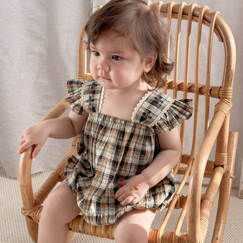 【BABY】夏新作 北欧風フリルチェックロンパースSKO71511
