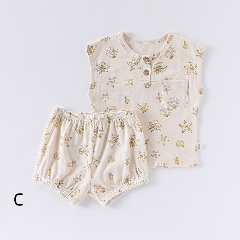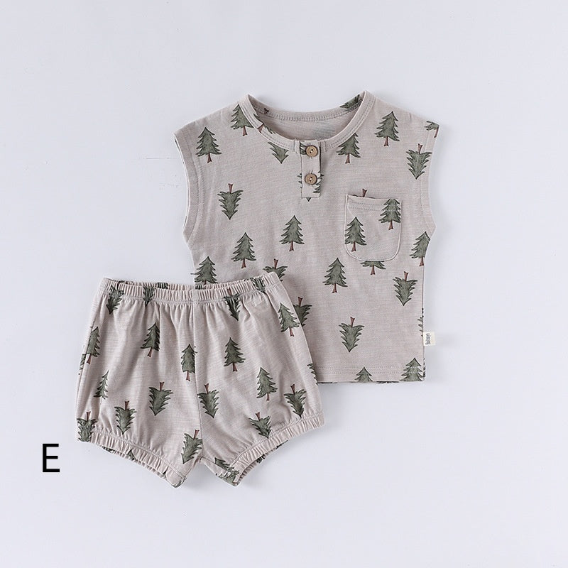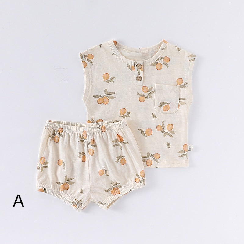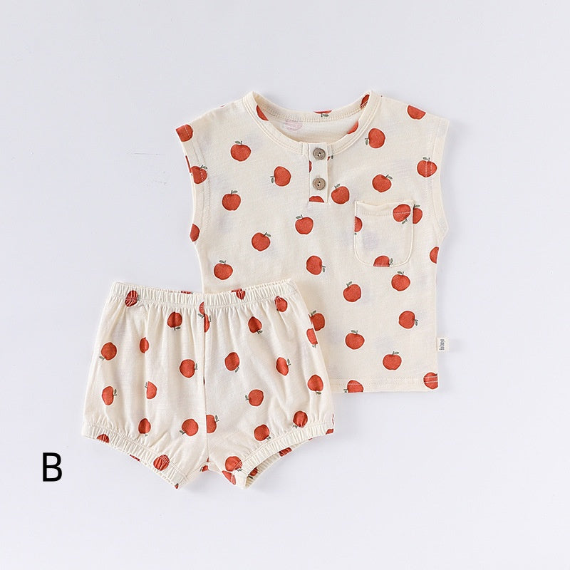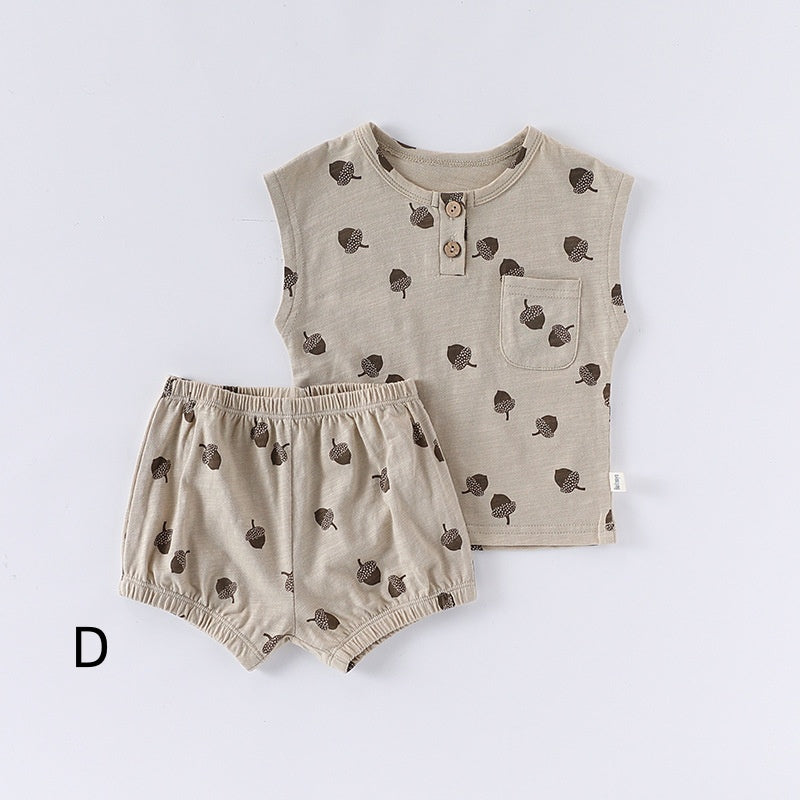 【BABY】夏新作 北欧風純綿ノースリーブプリントスーツSKO71516