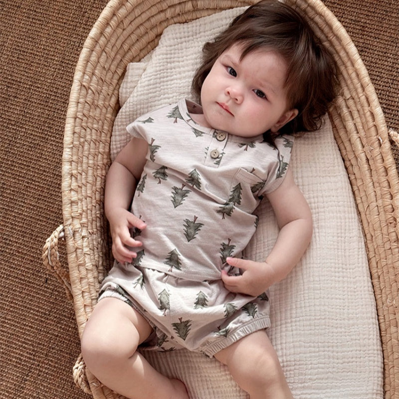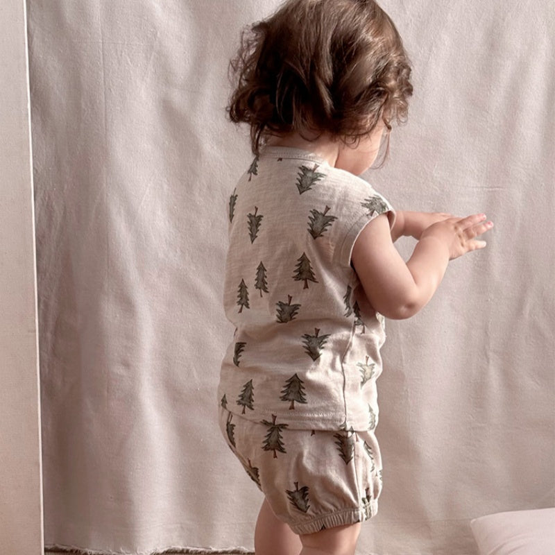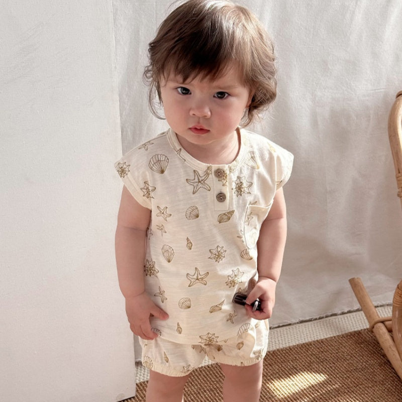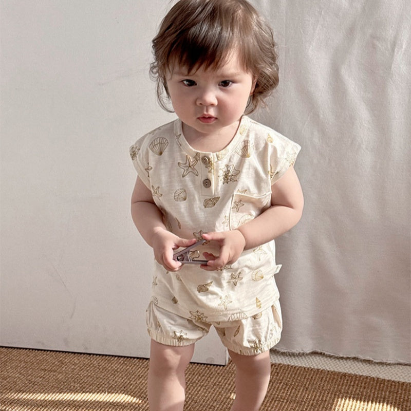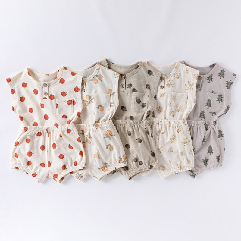 【BABY】夏新作 北欧風純綿ノースリーブプリントスーツSKO71516