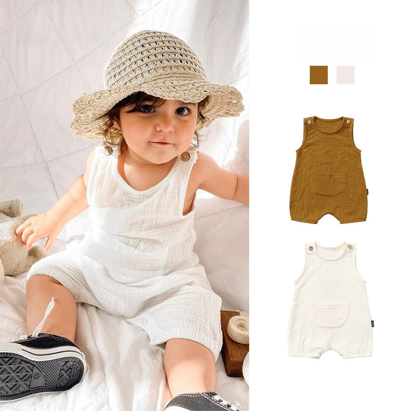 【BABY】夏新作 北欧風綿ガーゼしわカバーオールSK092003