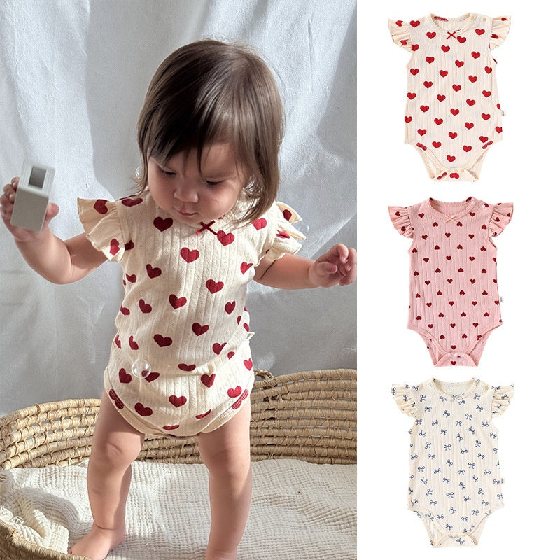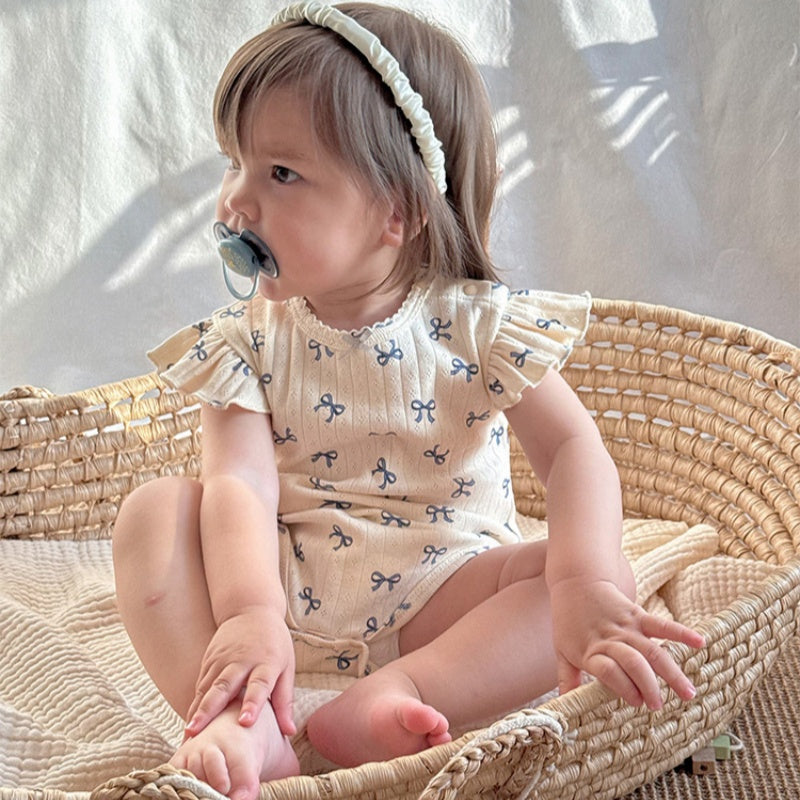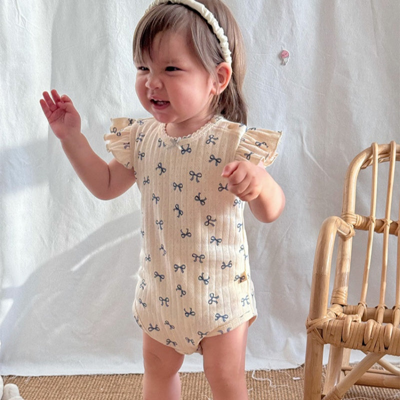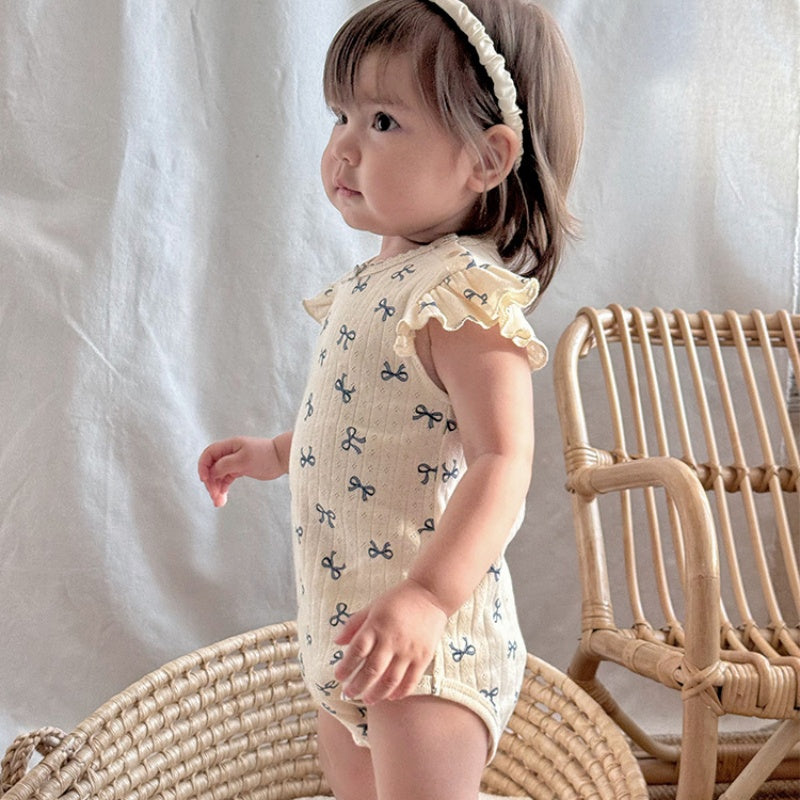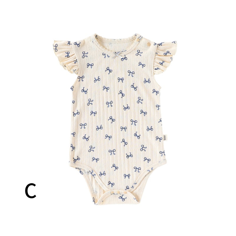 【BABY】夏新作 北欧風 フリル袖クルーネックロンパースSK091303