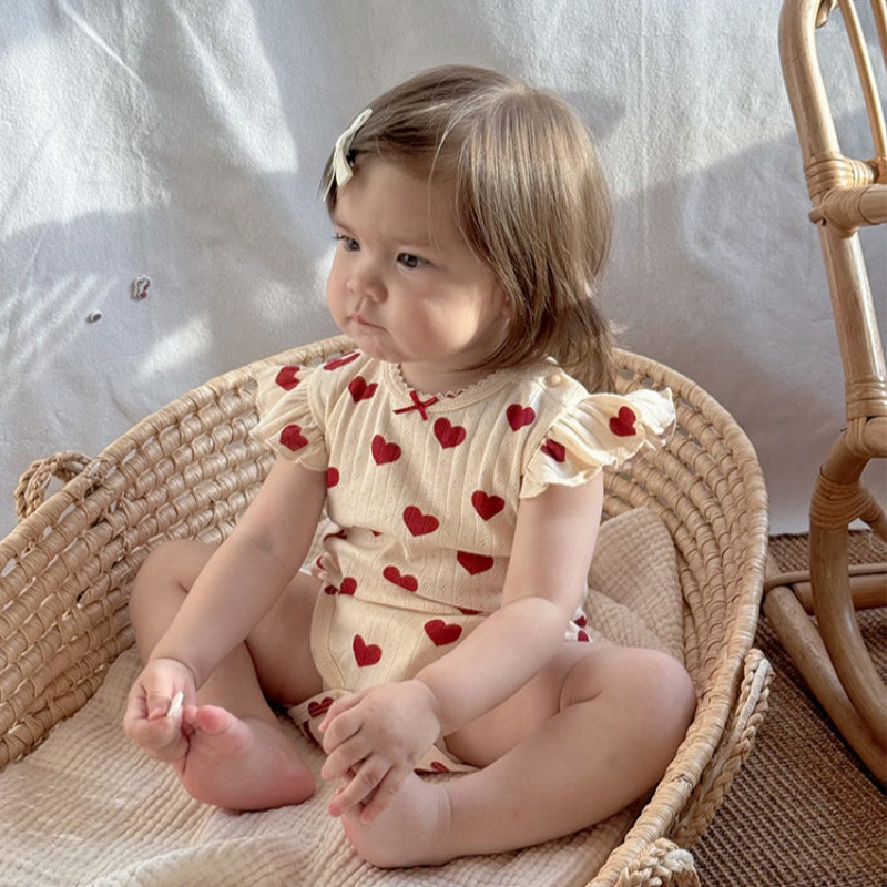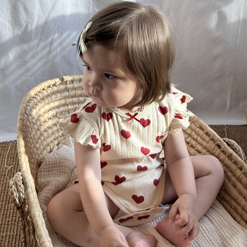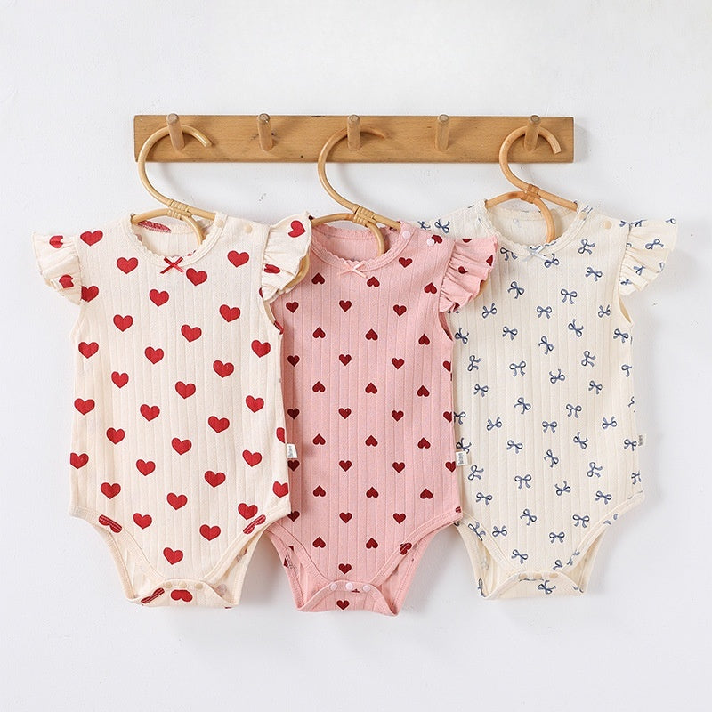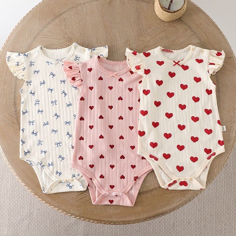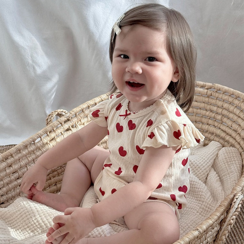 【BABY】夏新作 北欧風 フリル袖クルーネックロンパースSK091303