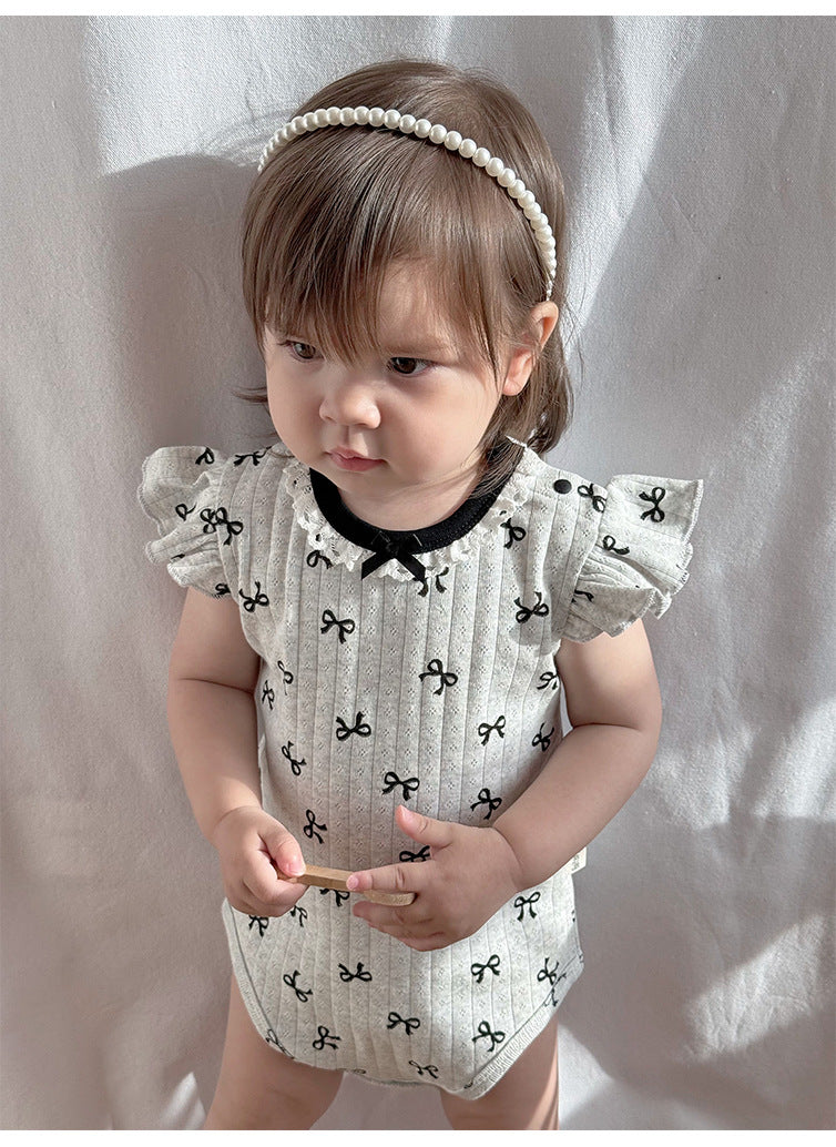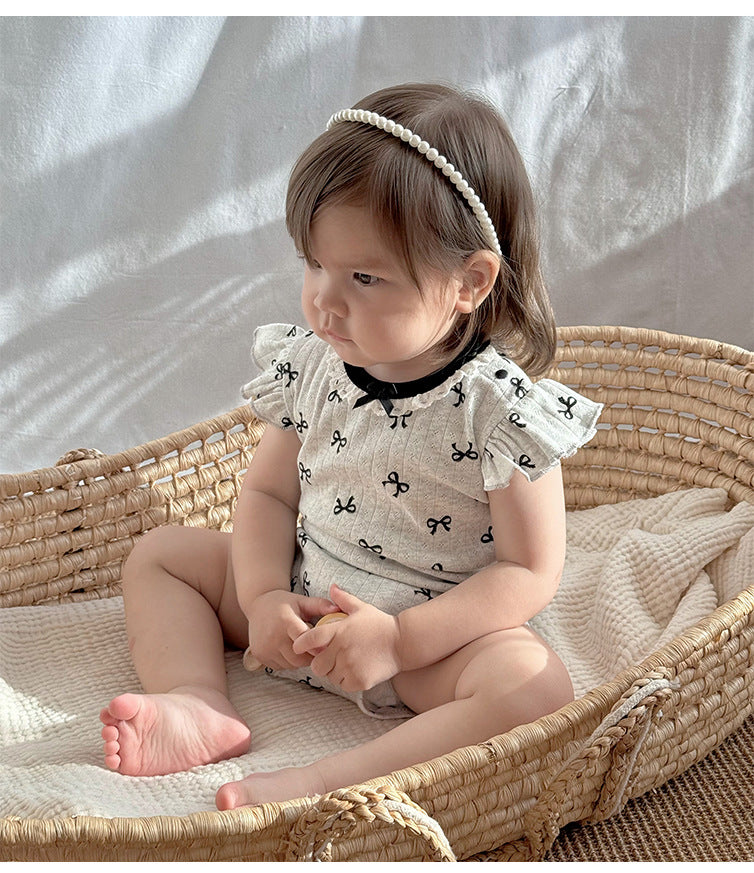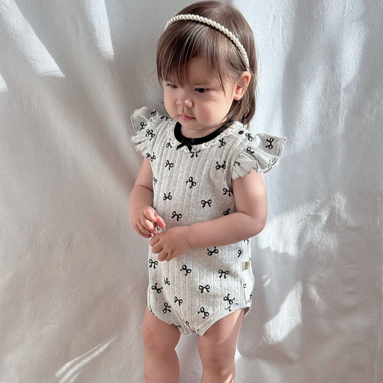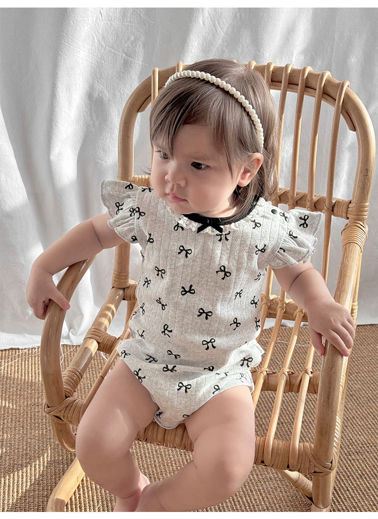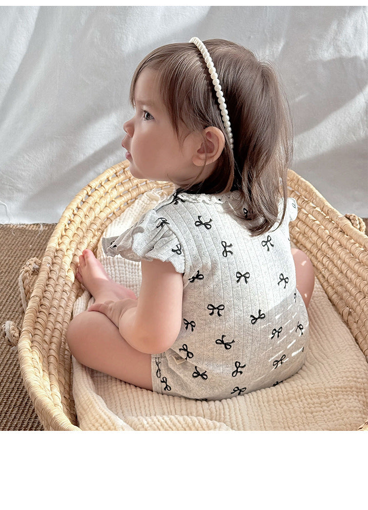 【BABY】夏新作 北欧風 蝶結びロンパースSK091301