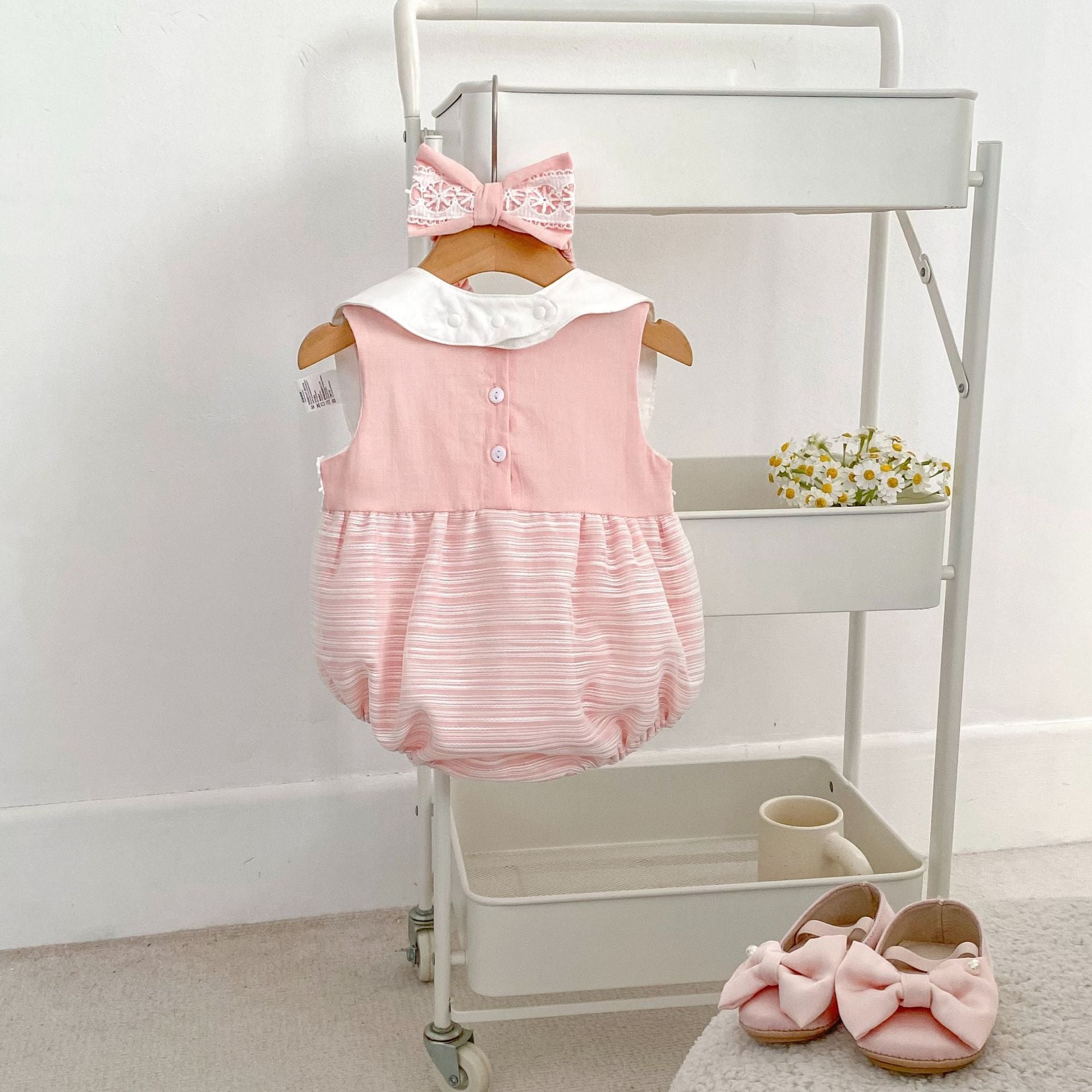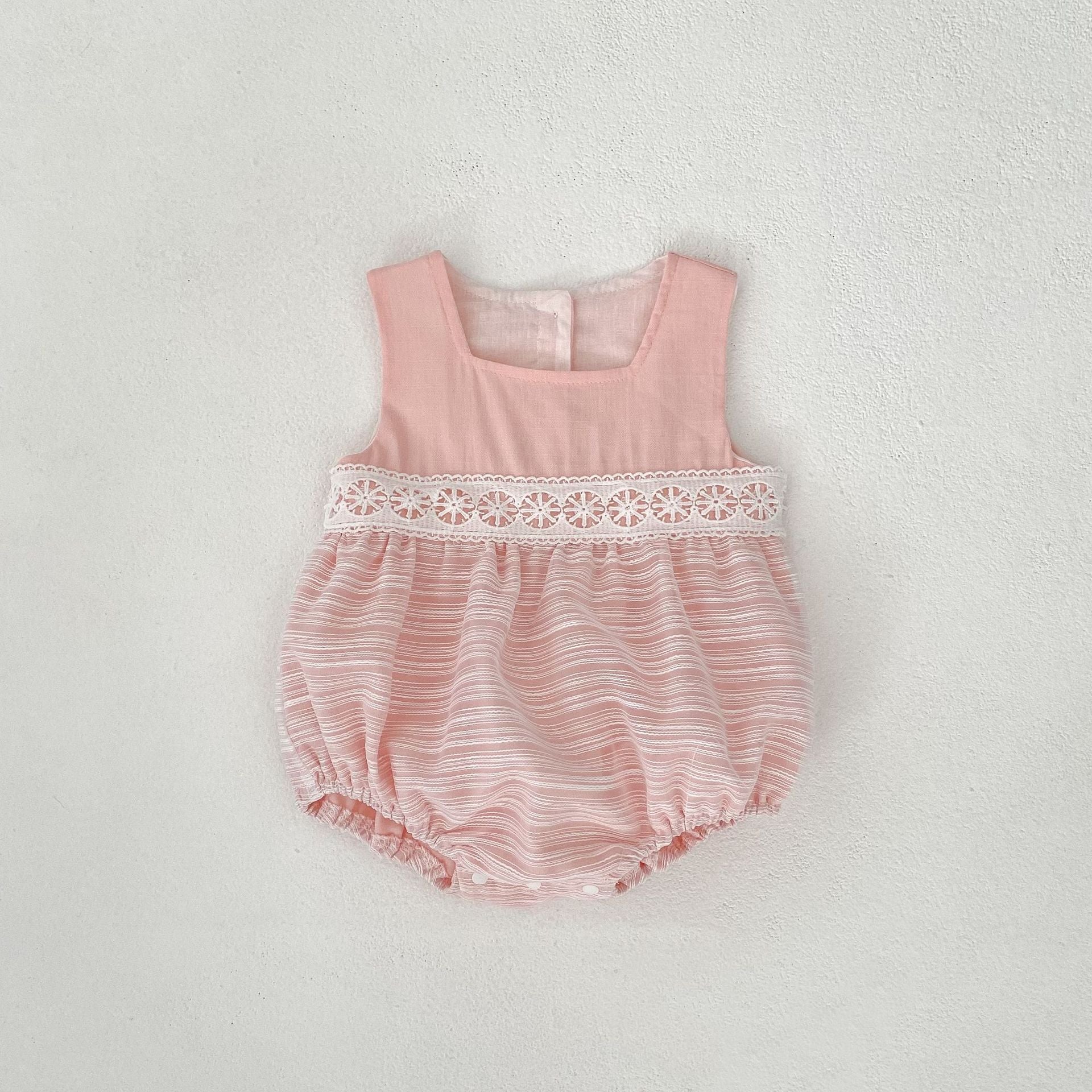 【BABY】夏新作 可愛いピンクボーダーロンパースSK061813