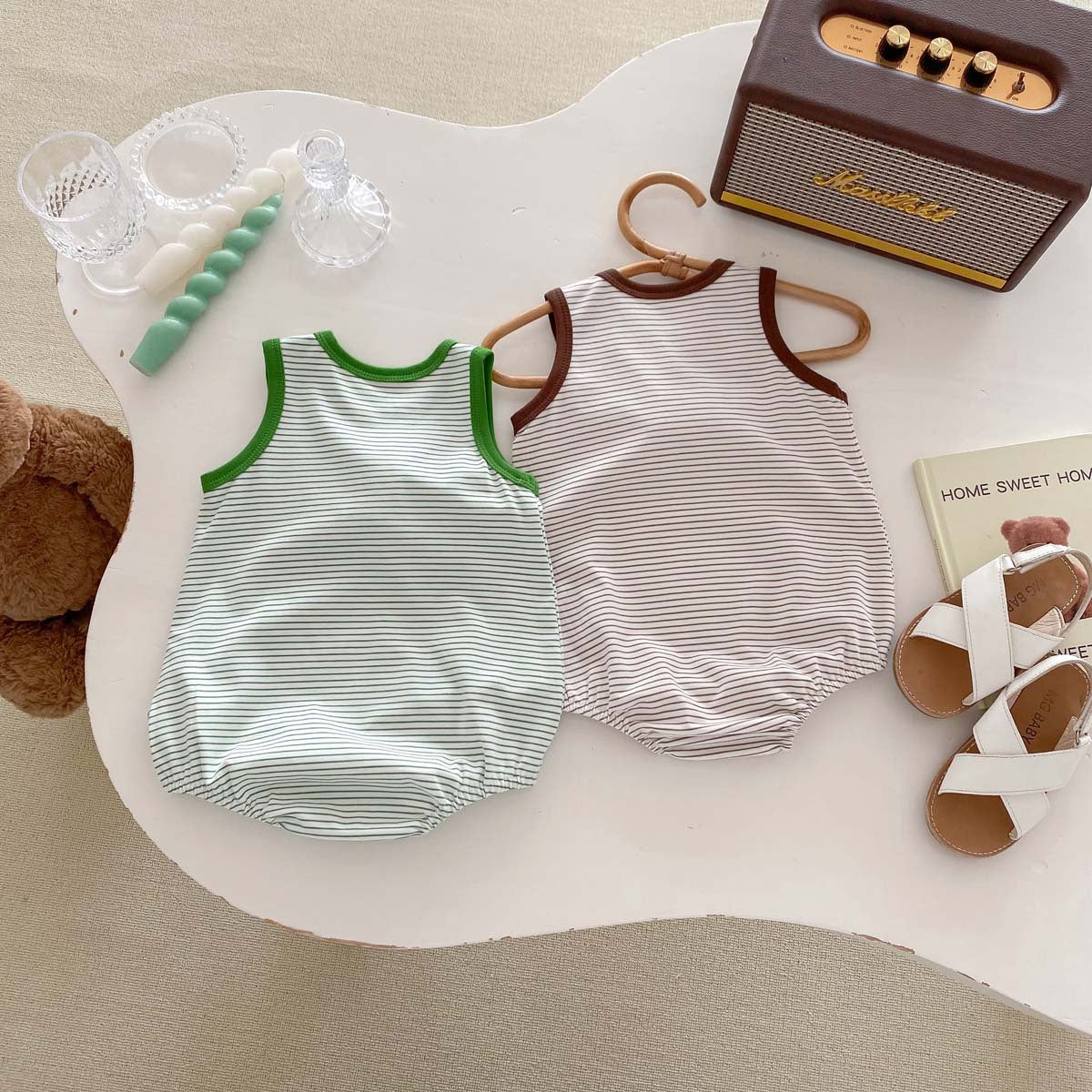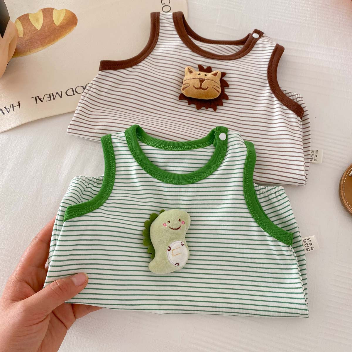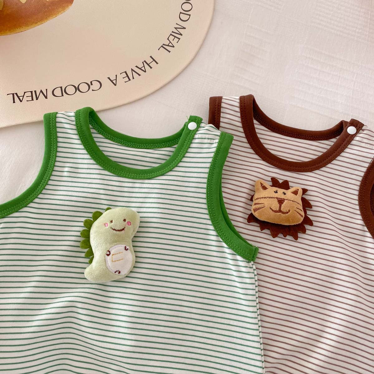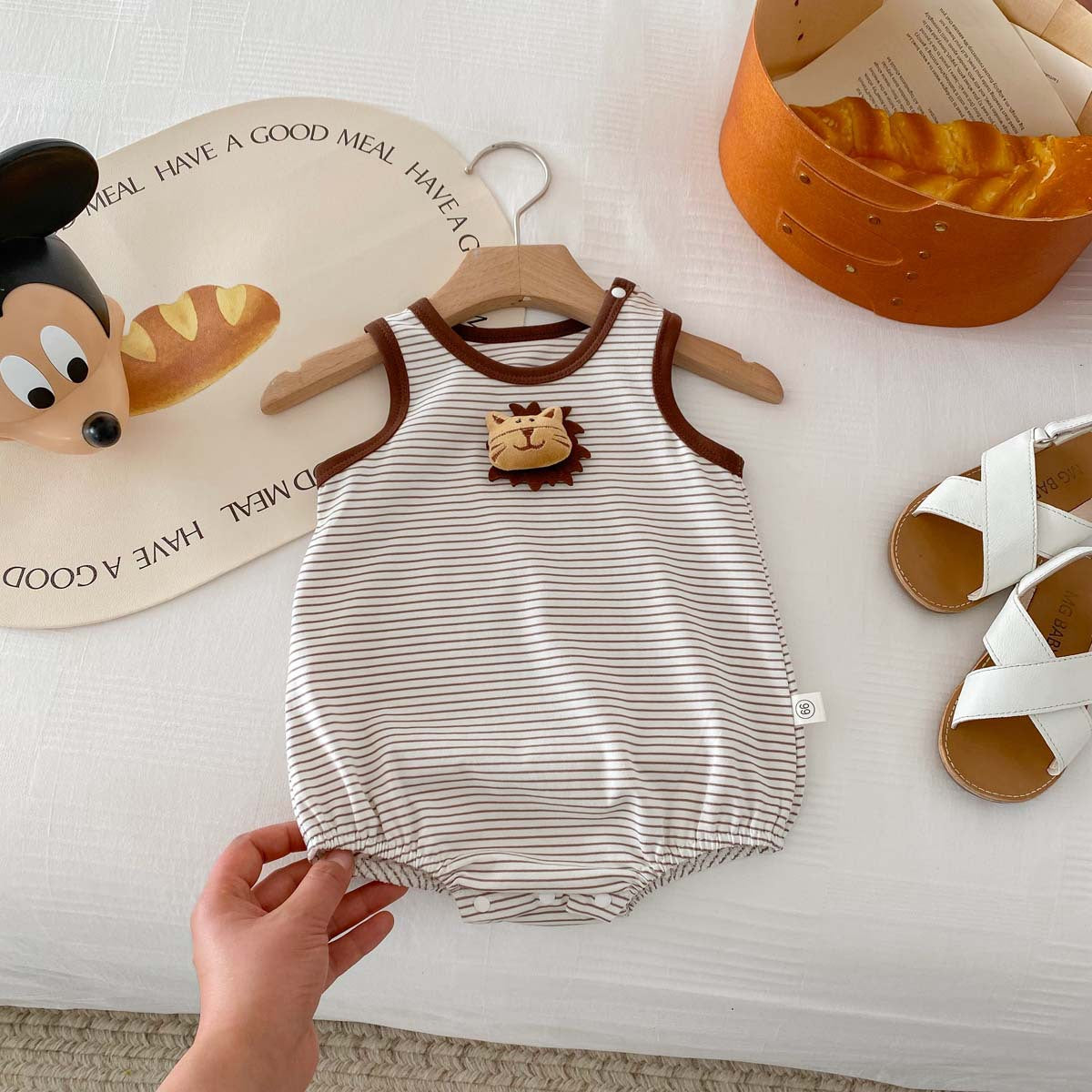 【BABY】夏新作 可愛い恐竜、ライオンボーダーロンパースSK062909