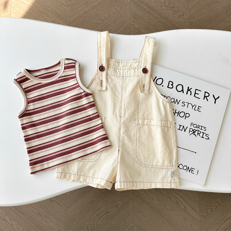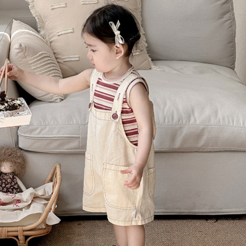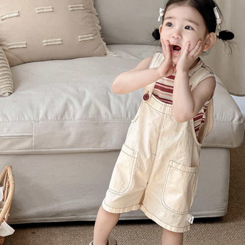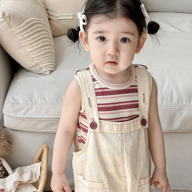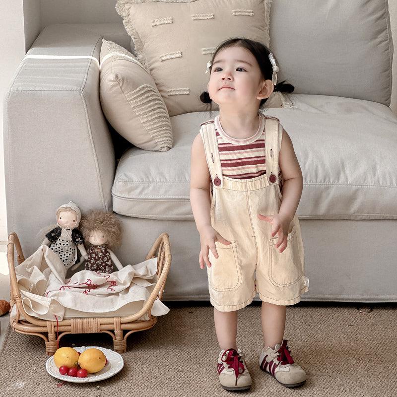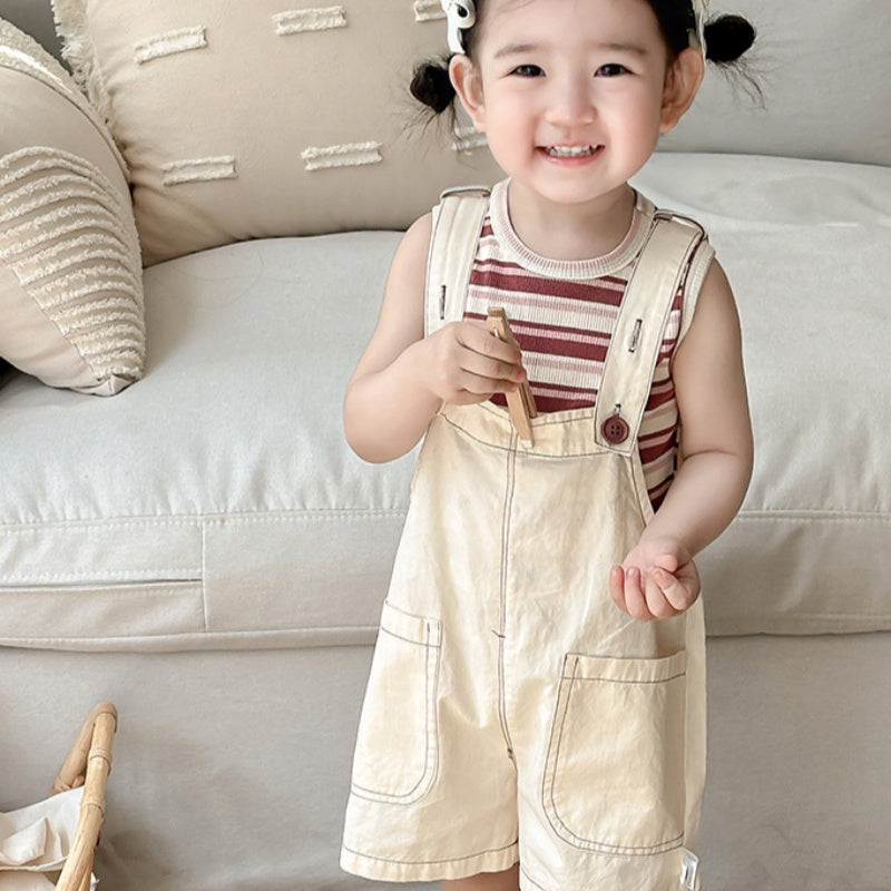 【BABY】夏新作 大きめポケットサロペット&ボーダーTシャツSK090618