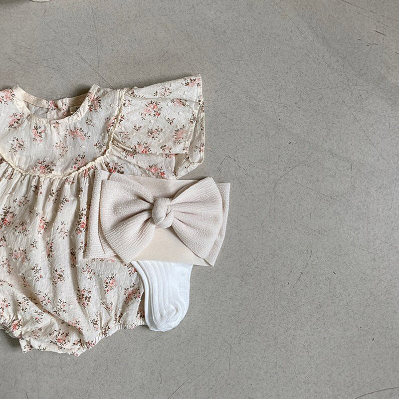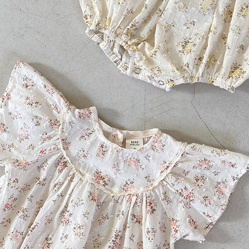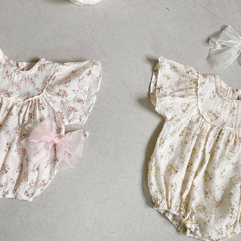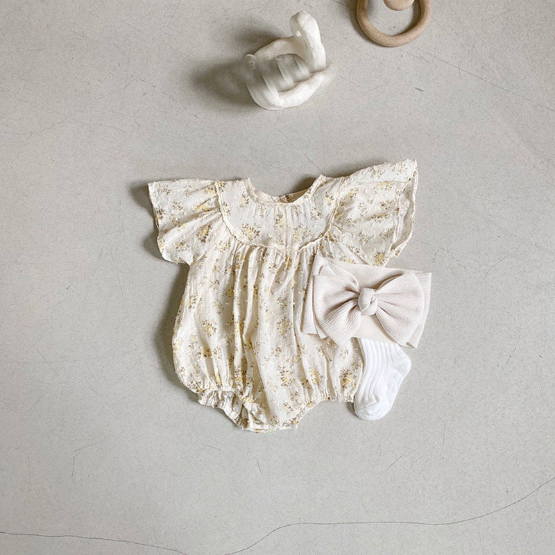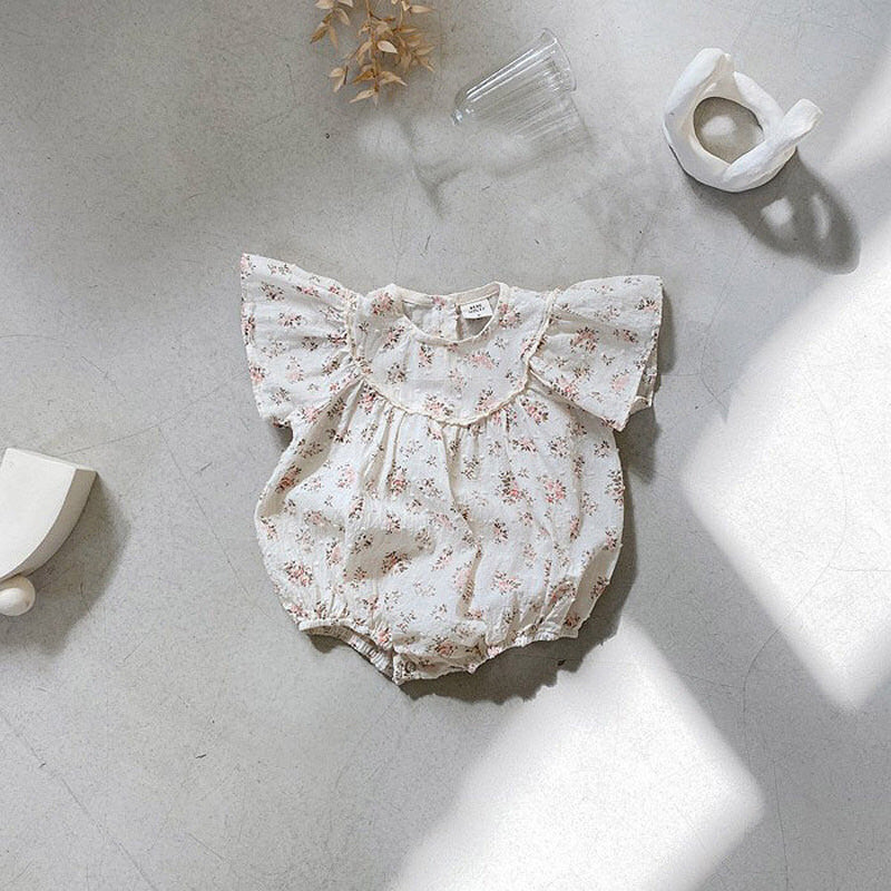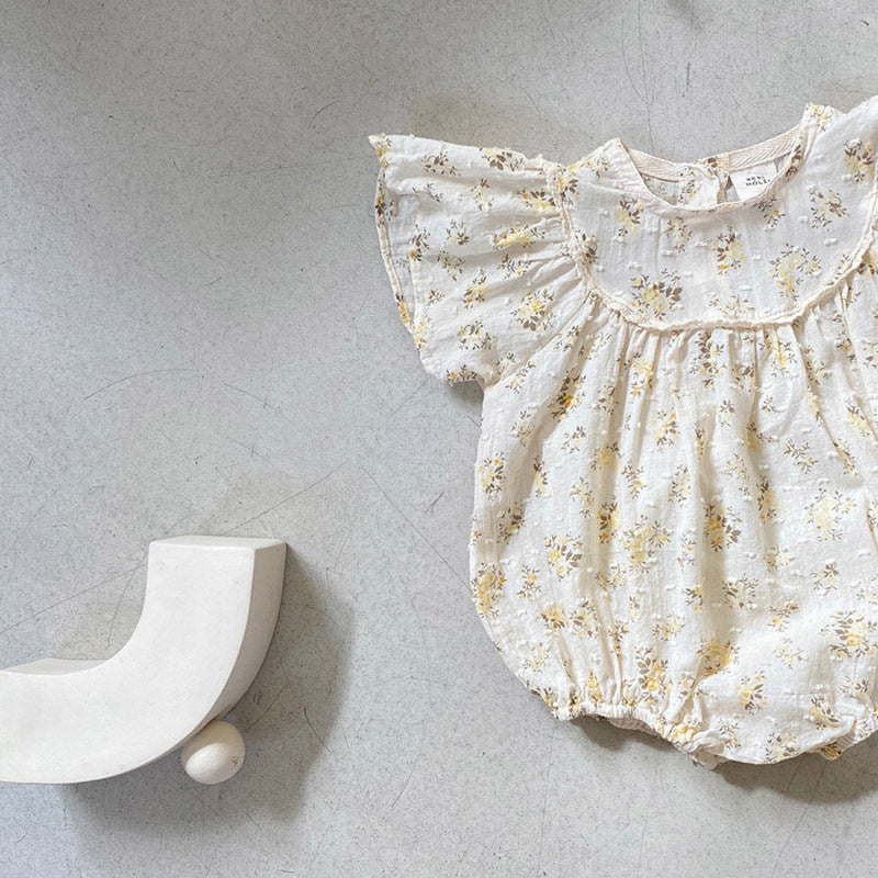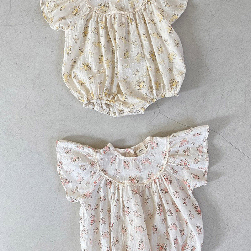 【BABY】夏新作 小花柄フリル袖ロンパースSK010202