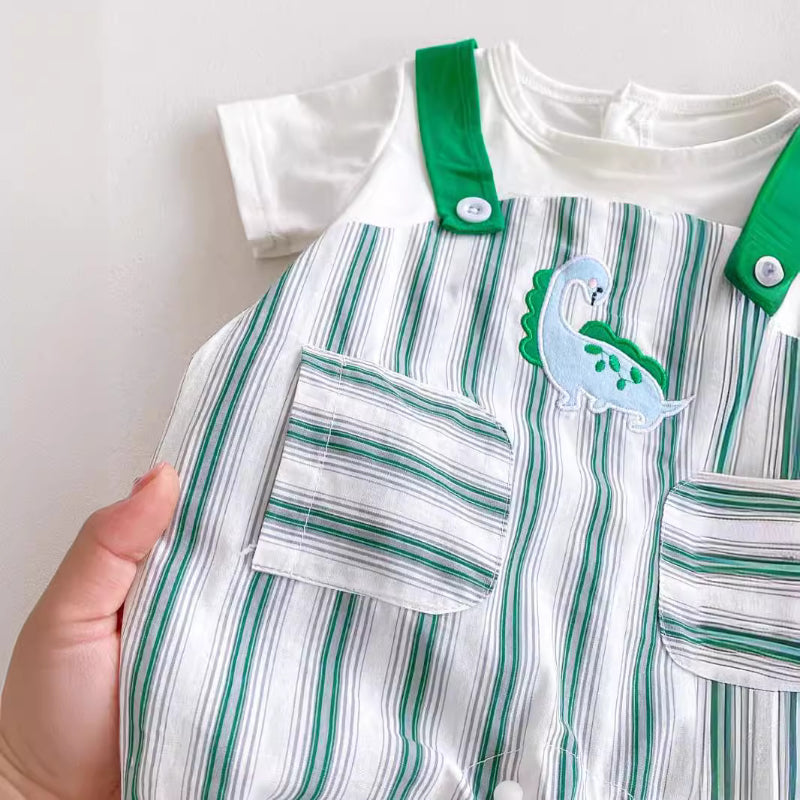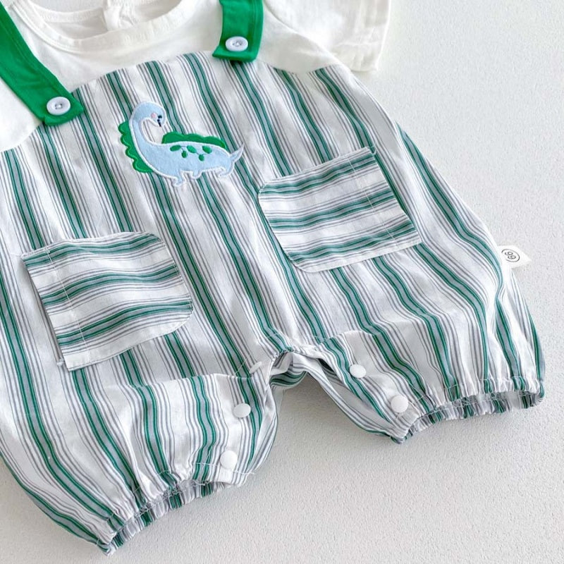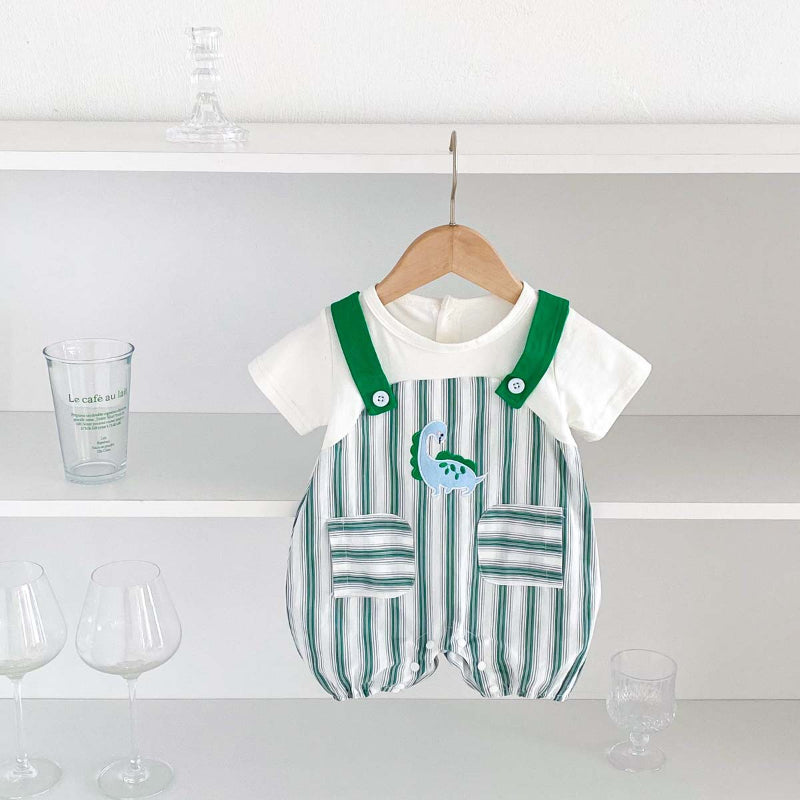 【BABY】夏新作 恐竜ストライプカバーオールSK090703