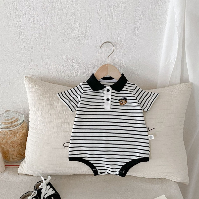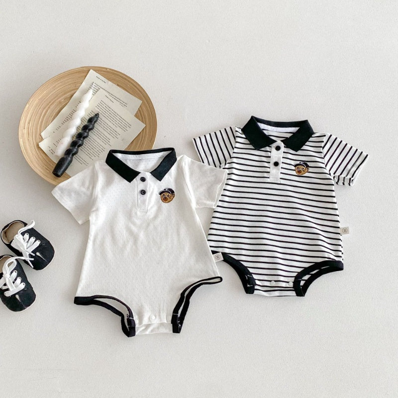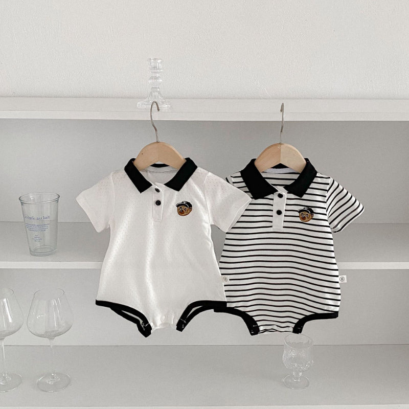 【BABY】夏新作 無地、ストライプロンパースSK091325