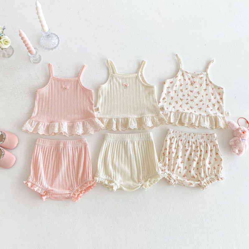 【BABY】夏新作 無地、花柄レースセットアップSK072223