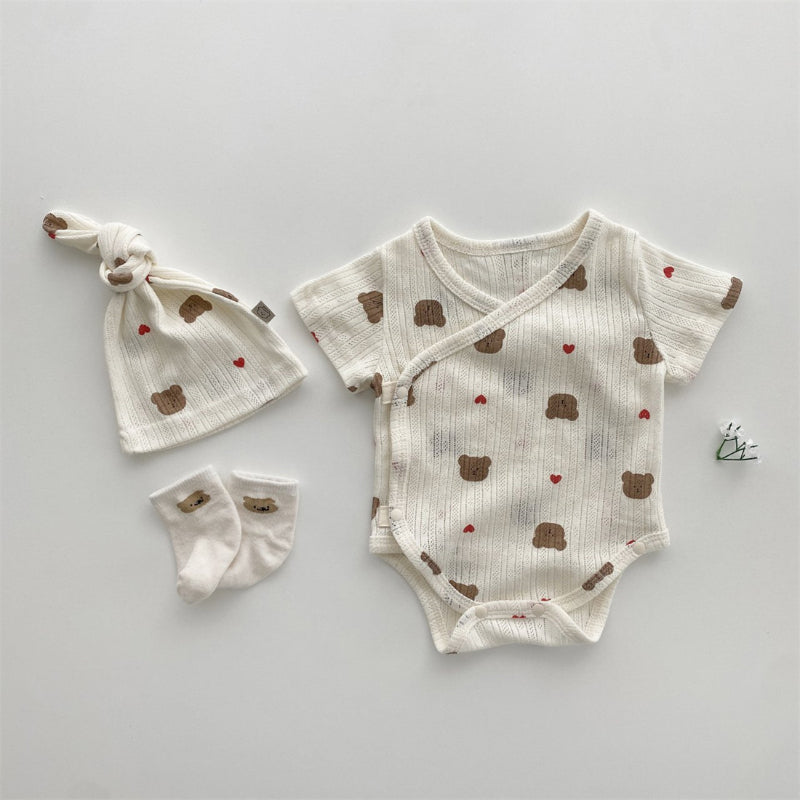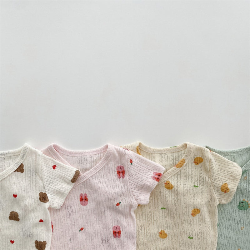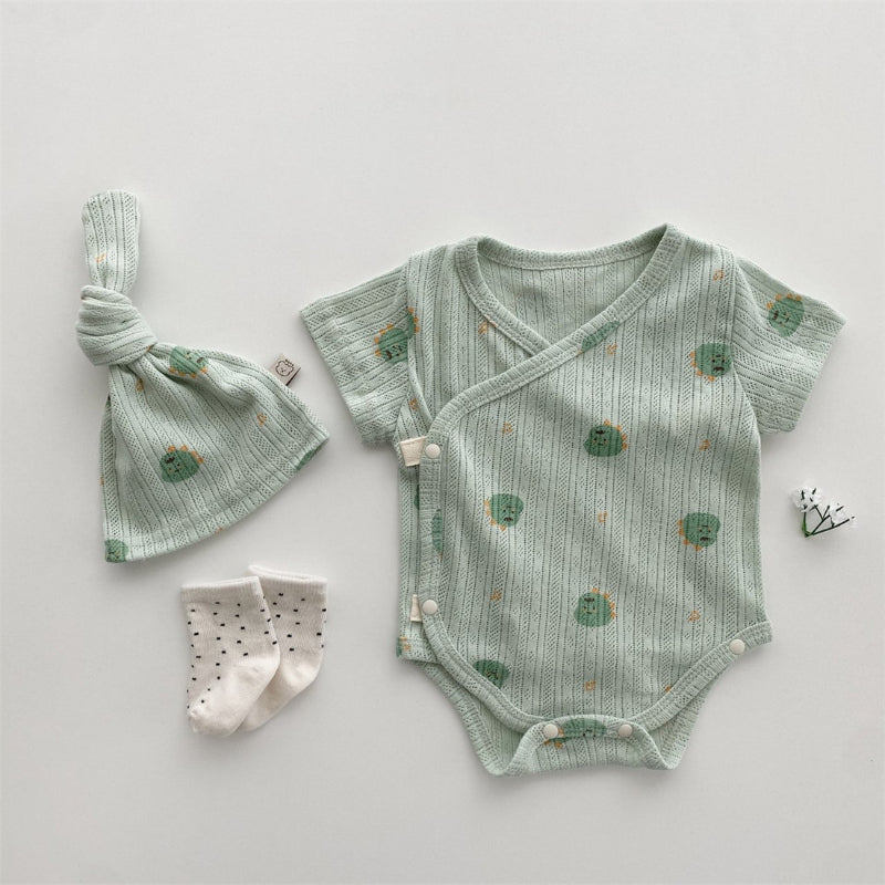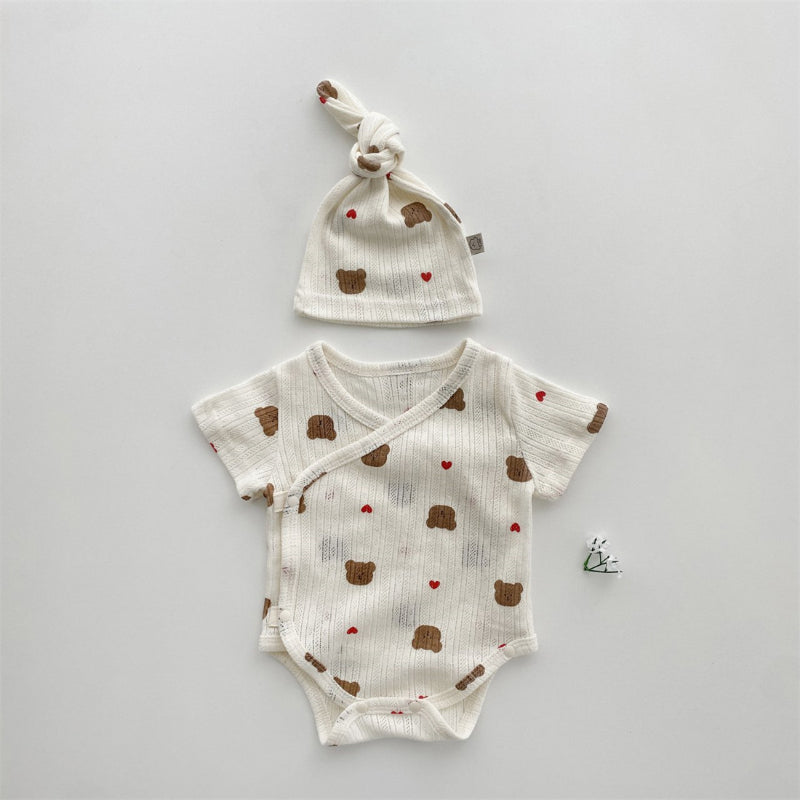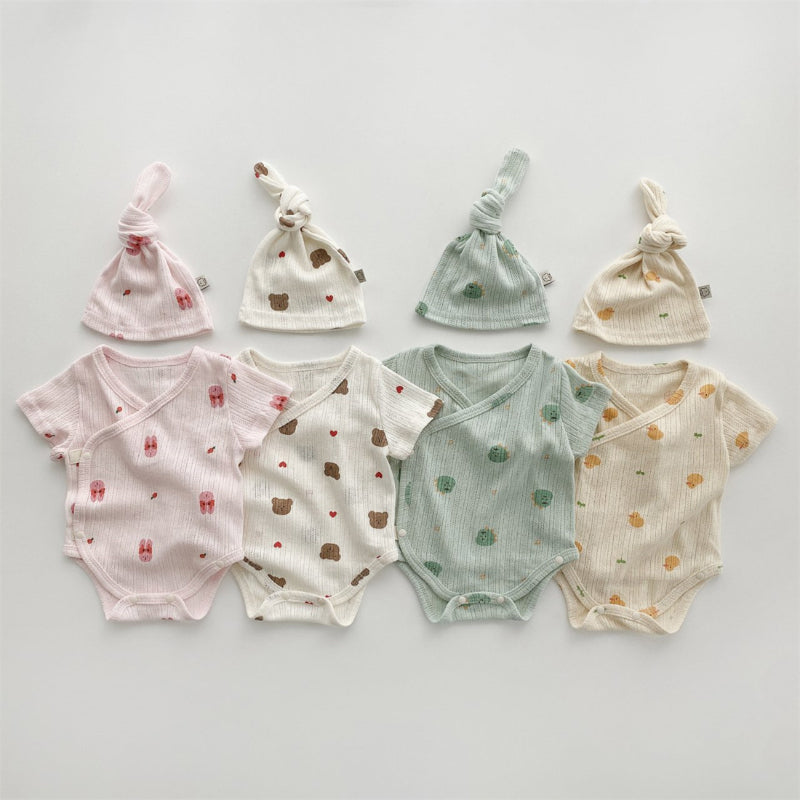 【BABY】夏新作 総柄キャラクターロンパース&帽子SK080825