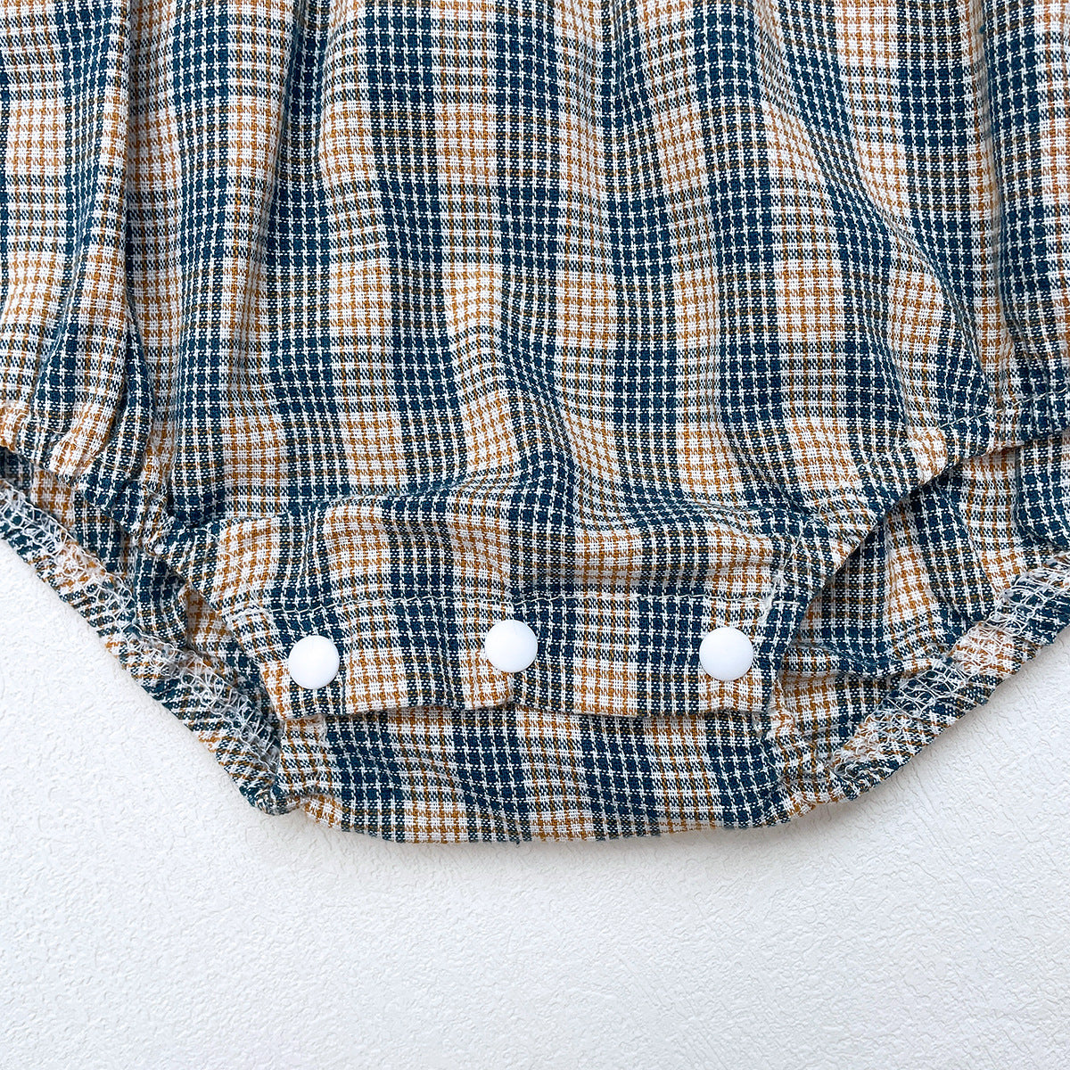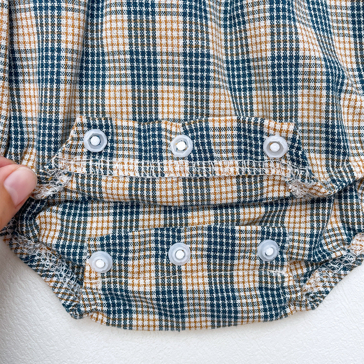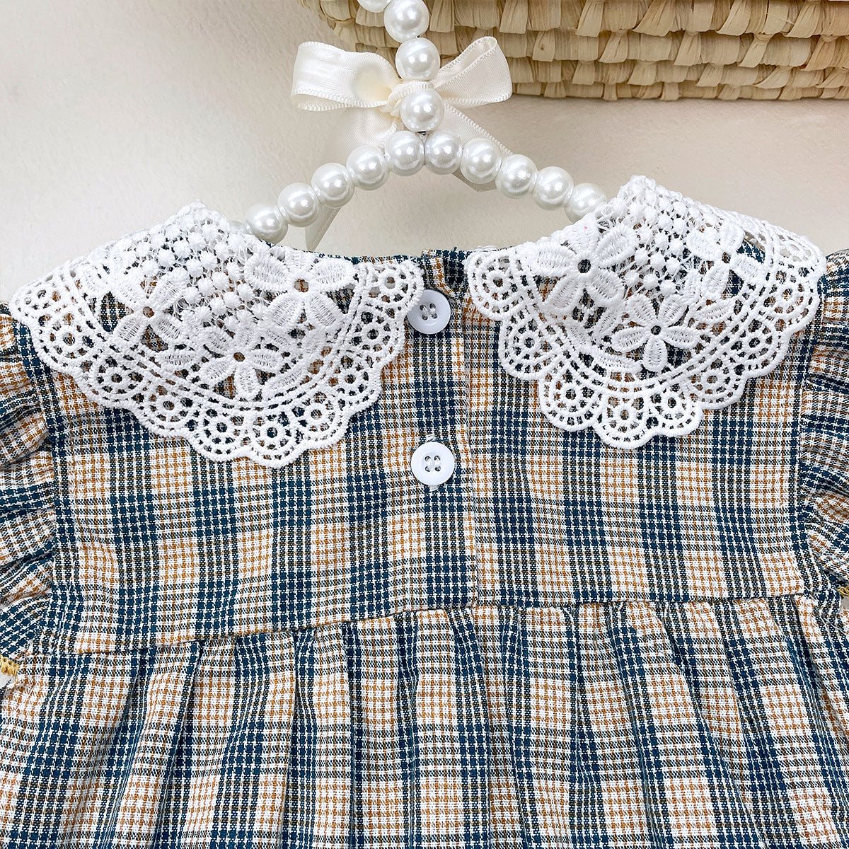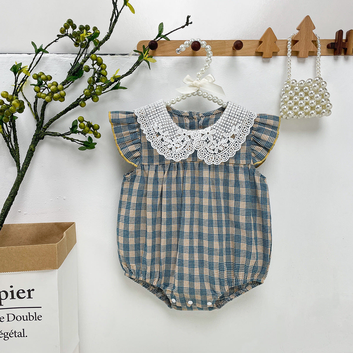【BABY】夏新作 肩フリルレース丸襟チェックロンパースSK062726