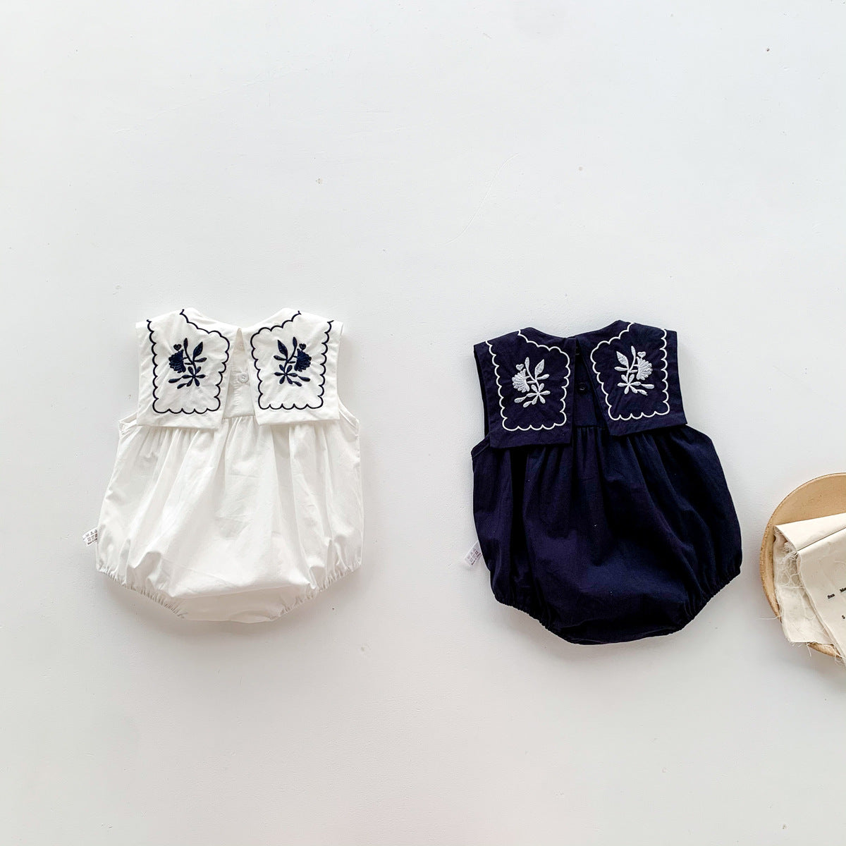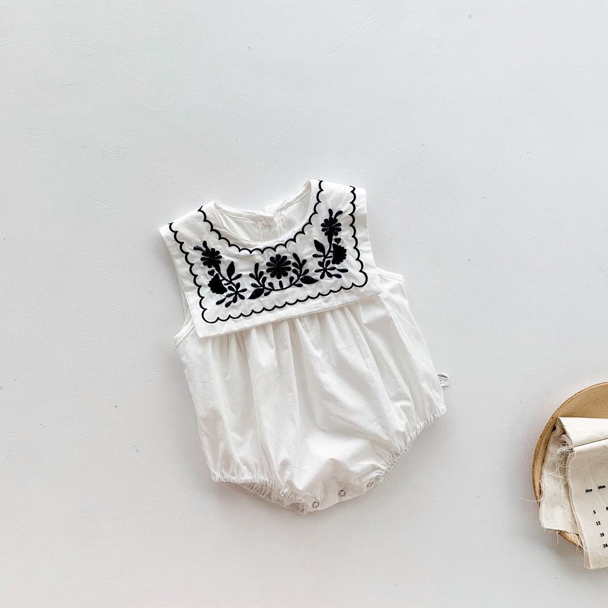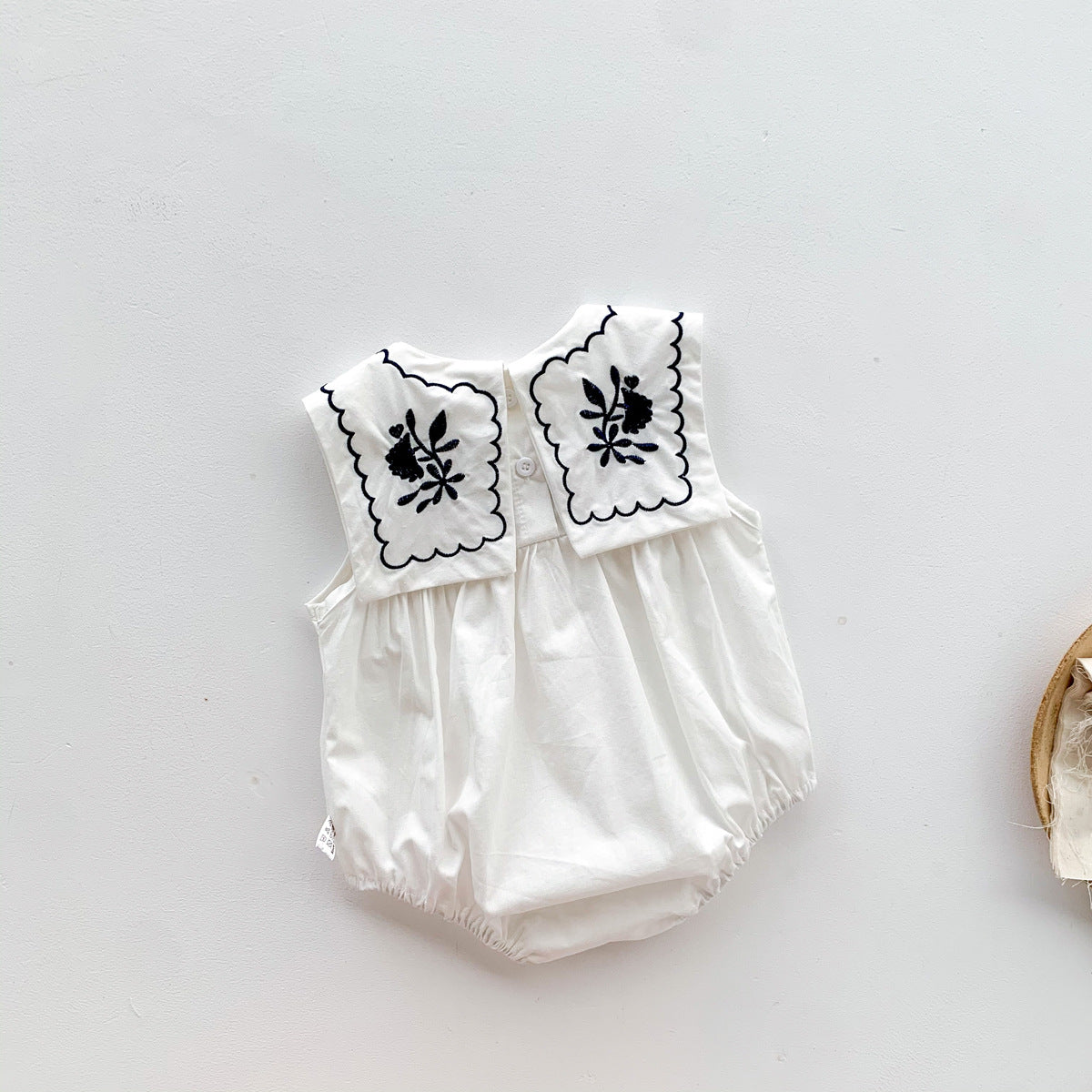 【BABY】夏新作 花刺しゅうスクエア襟ロンパースSK082723