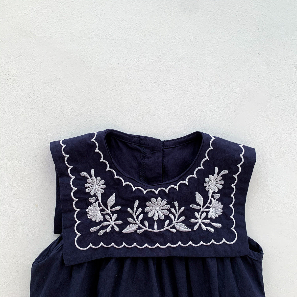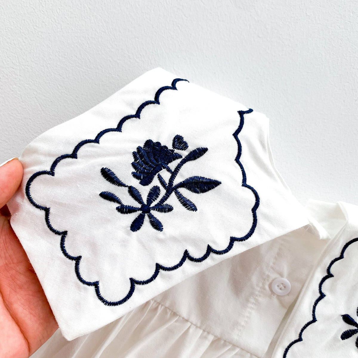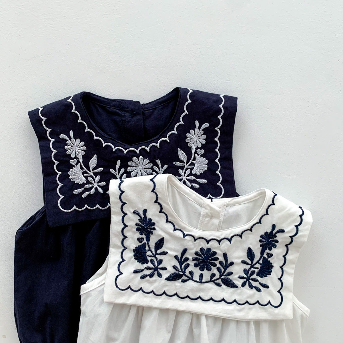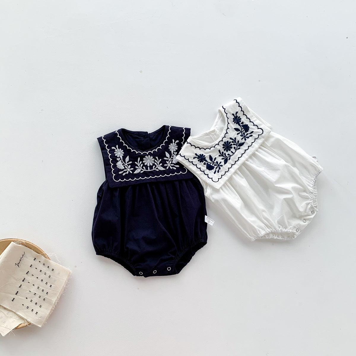 【BABY】夏新作 花刺しゅうスクエア襟ロンパースSK082723