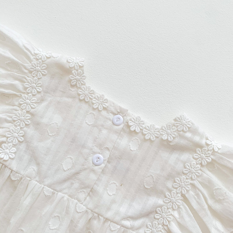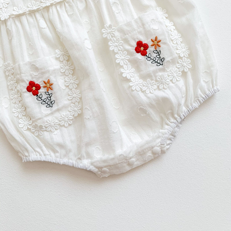 【BABY】夏新作 花刺繍スクエアネックロンパースSK090704