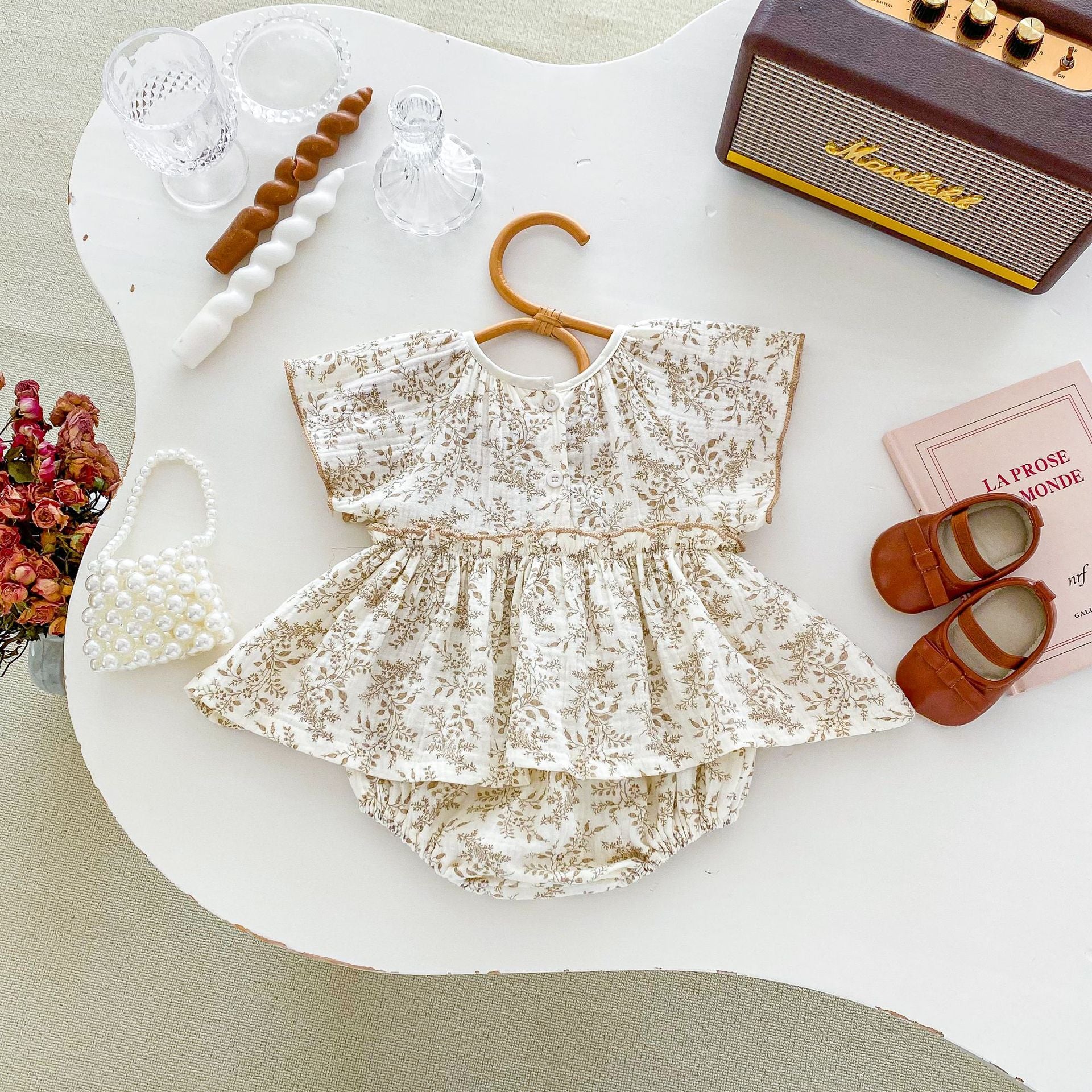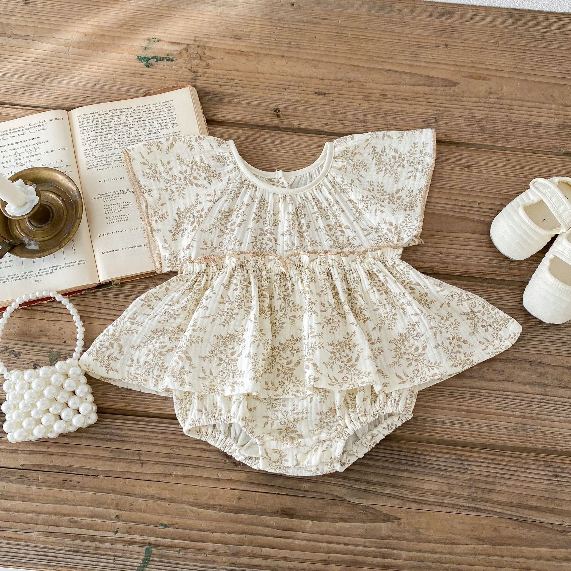 【BABY】夏新作 花柄ナチュラルしわコットンロンパースSK062309