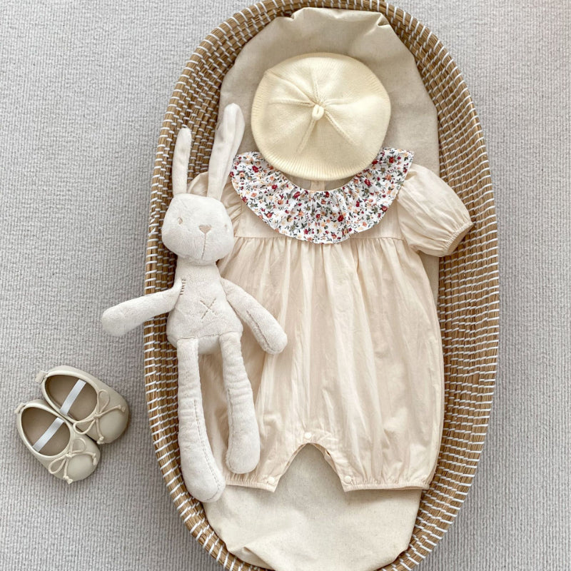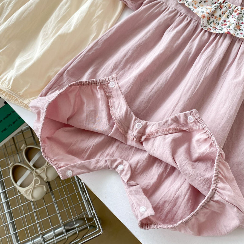 【BABY】夏新作 花柄ラペル無地ロンパースSK072503
