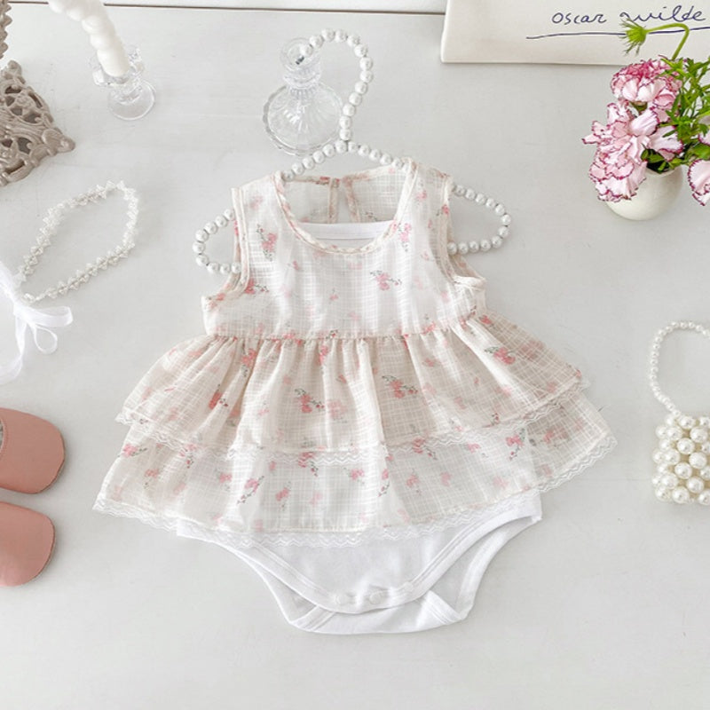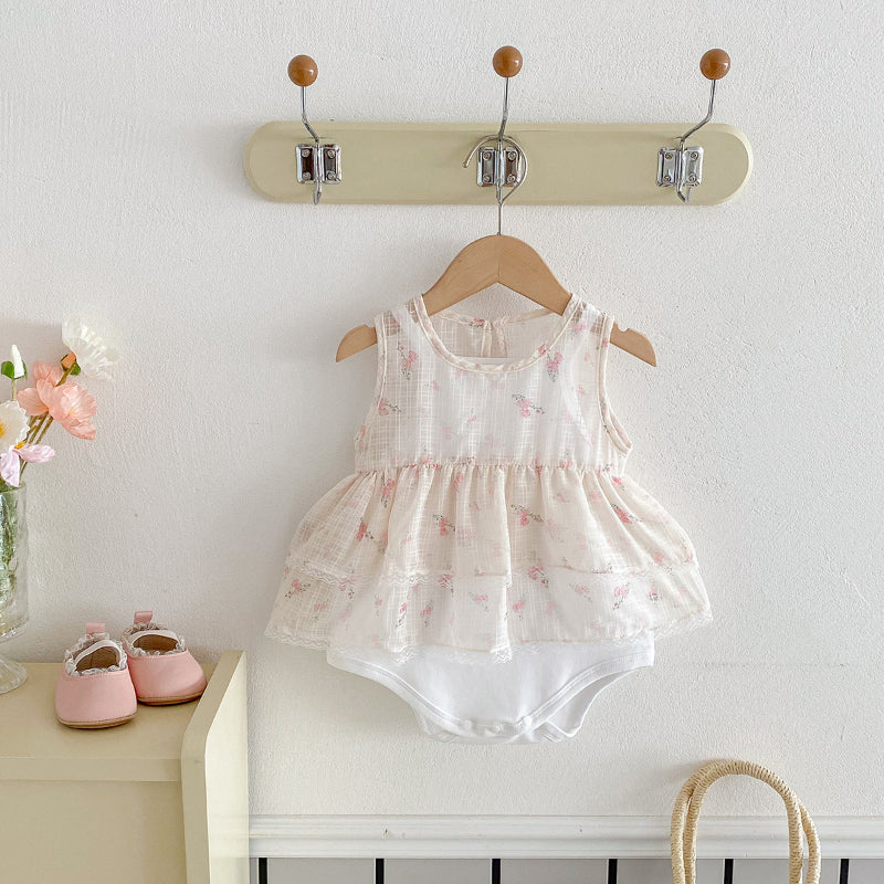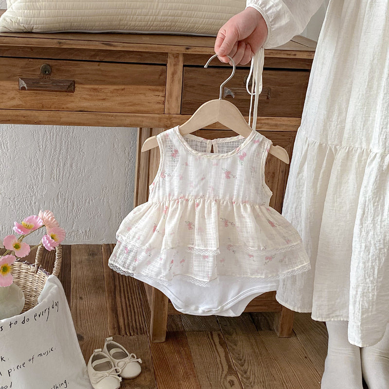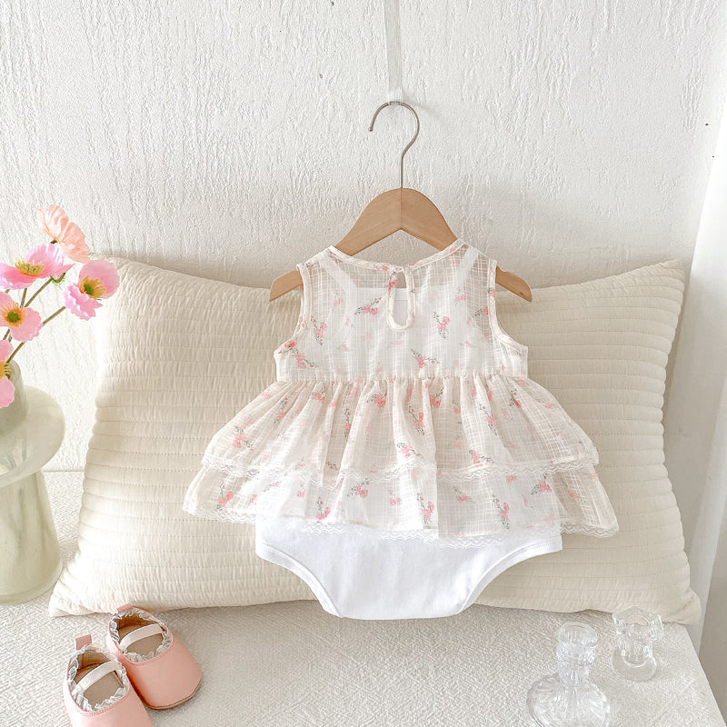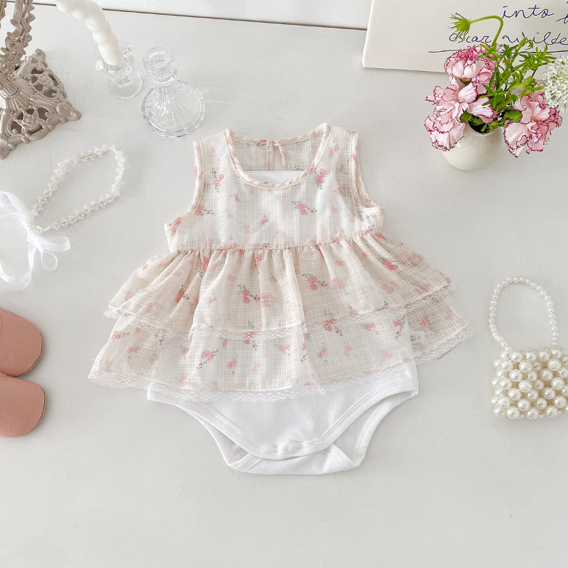 【BABY】夏新作 花柄レースジャンスカ風ロンパースセットSK090705