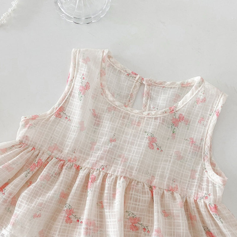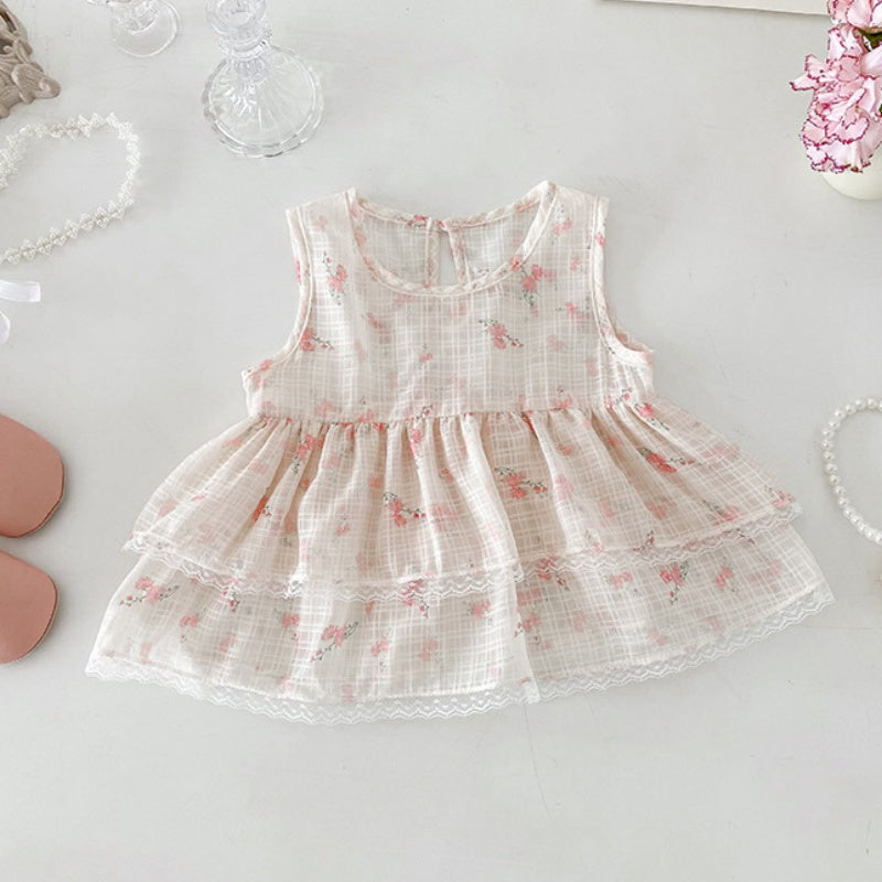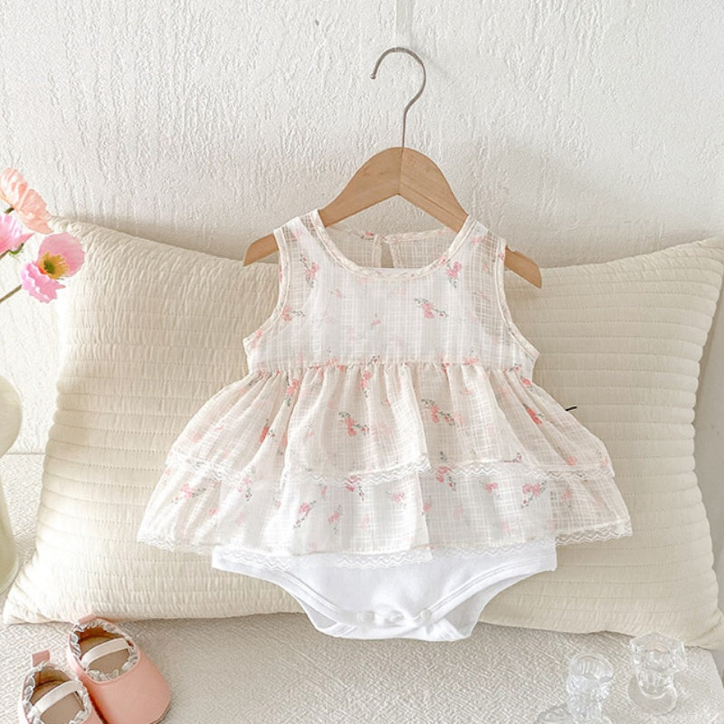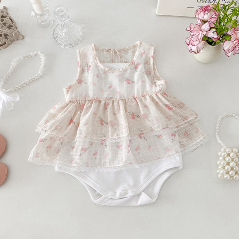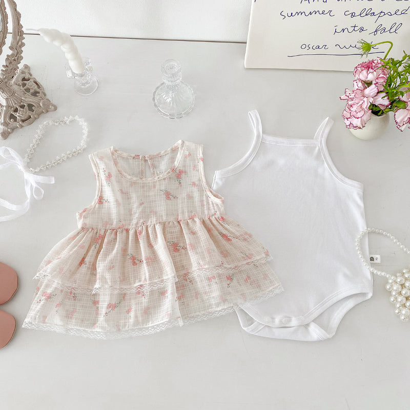 【BABY】夏新作 花柄レースジャンスカ風ロンパースセットSK090705