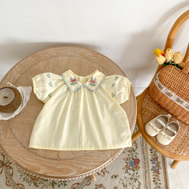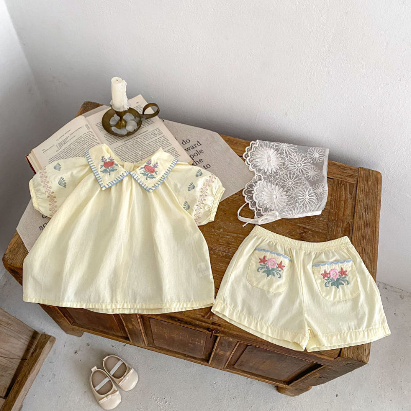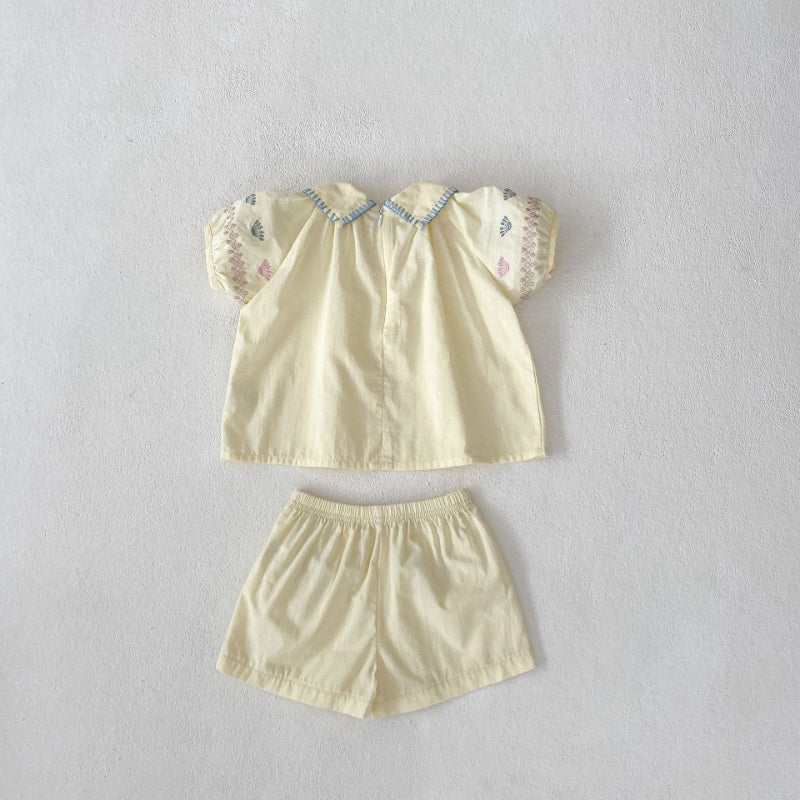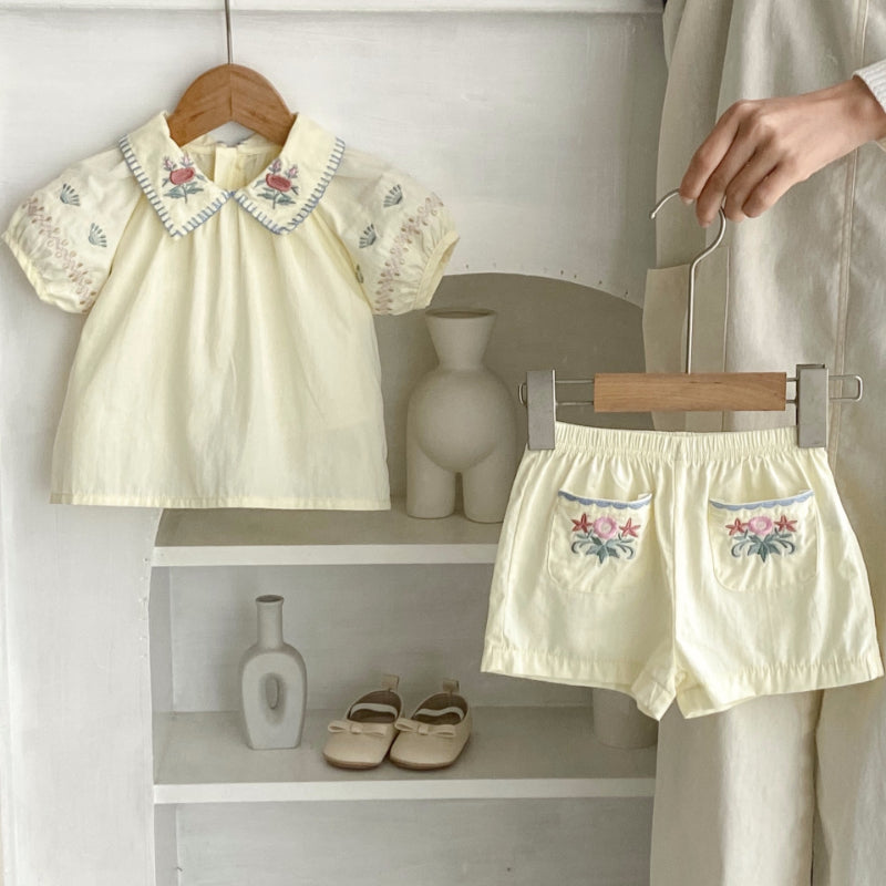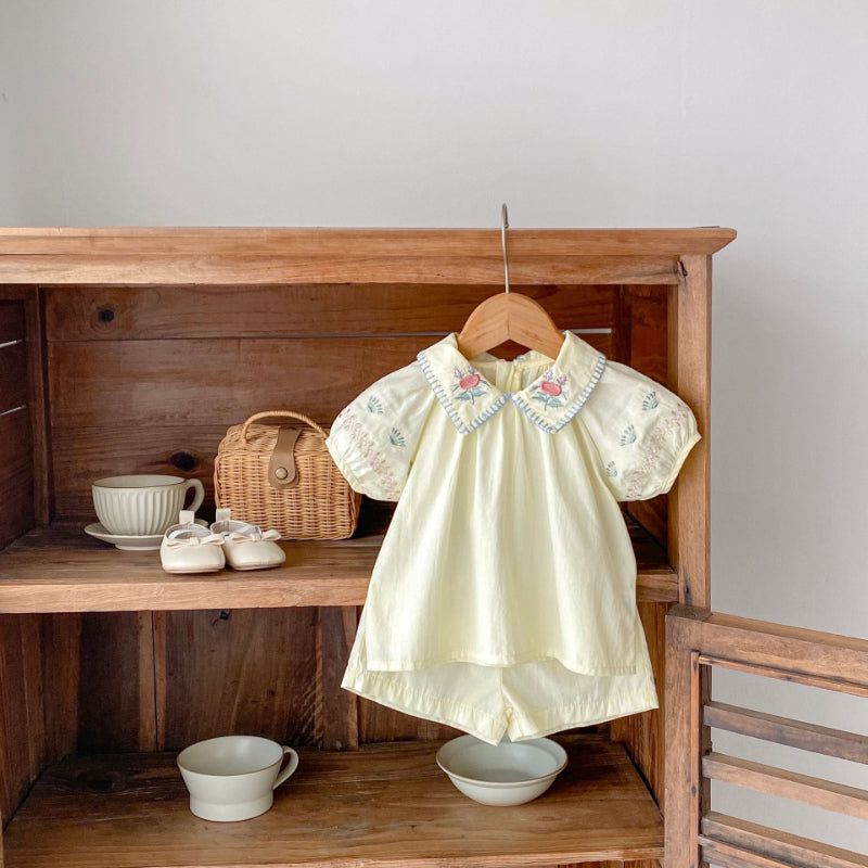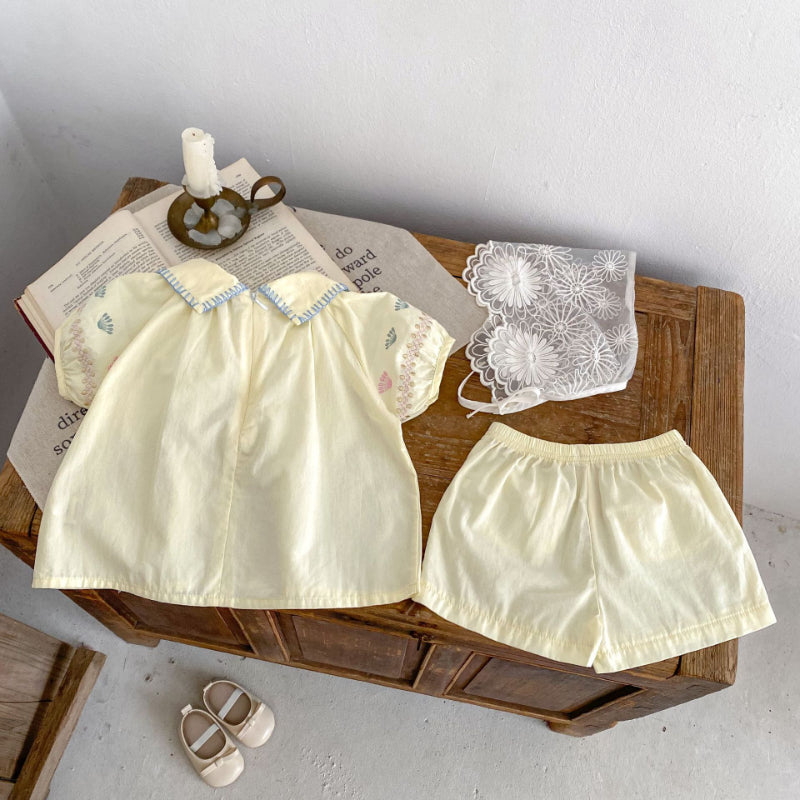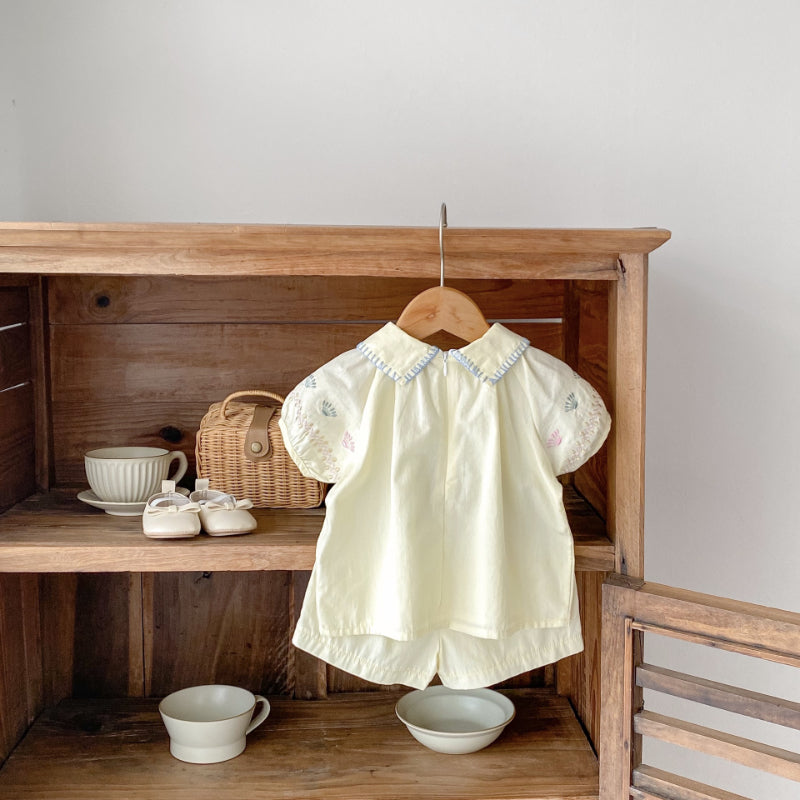 【BABY】夏新作 花柄刺繍襟付きセットアップSK010231