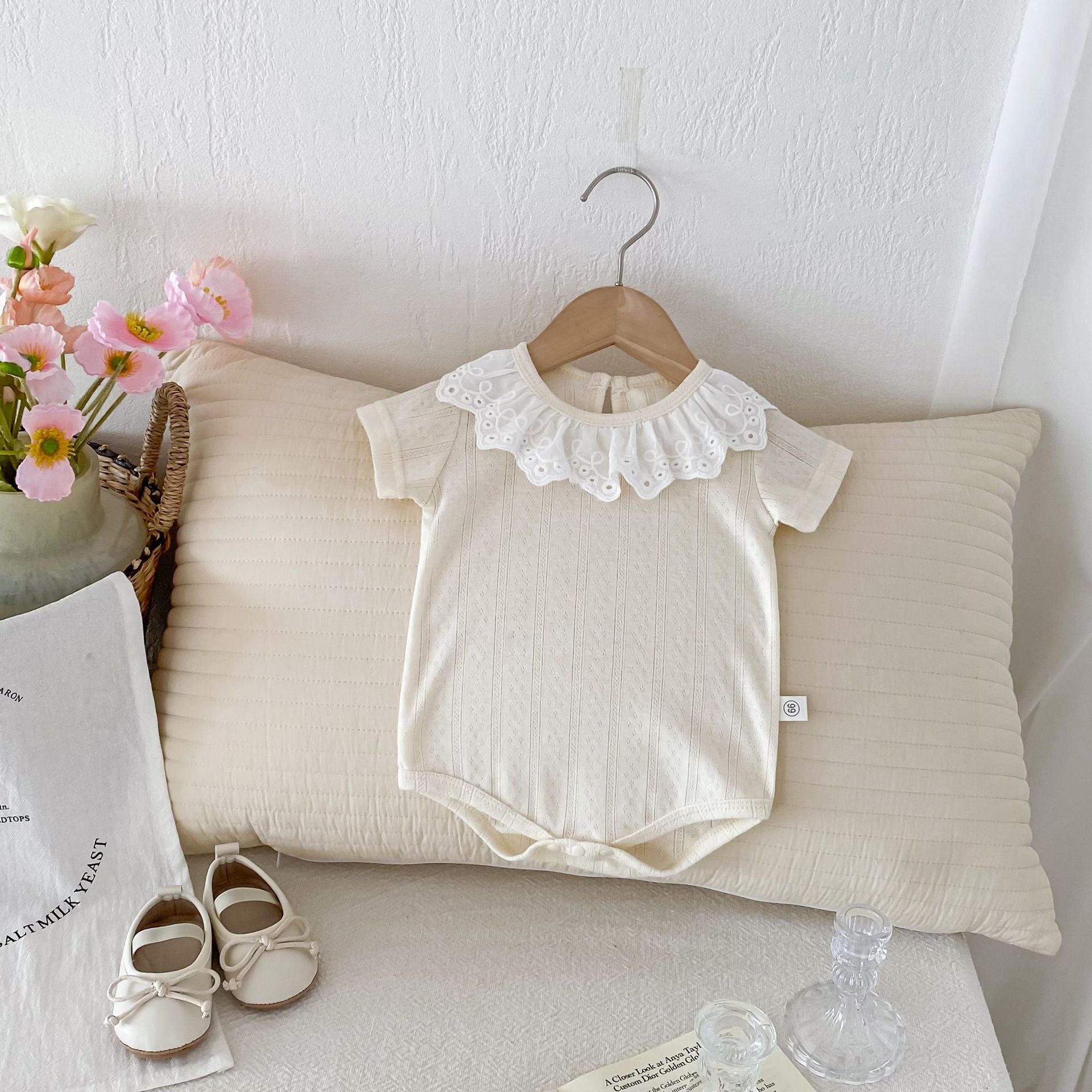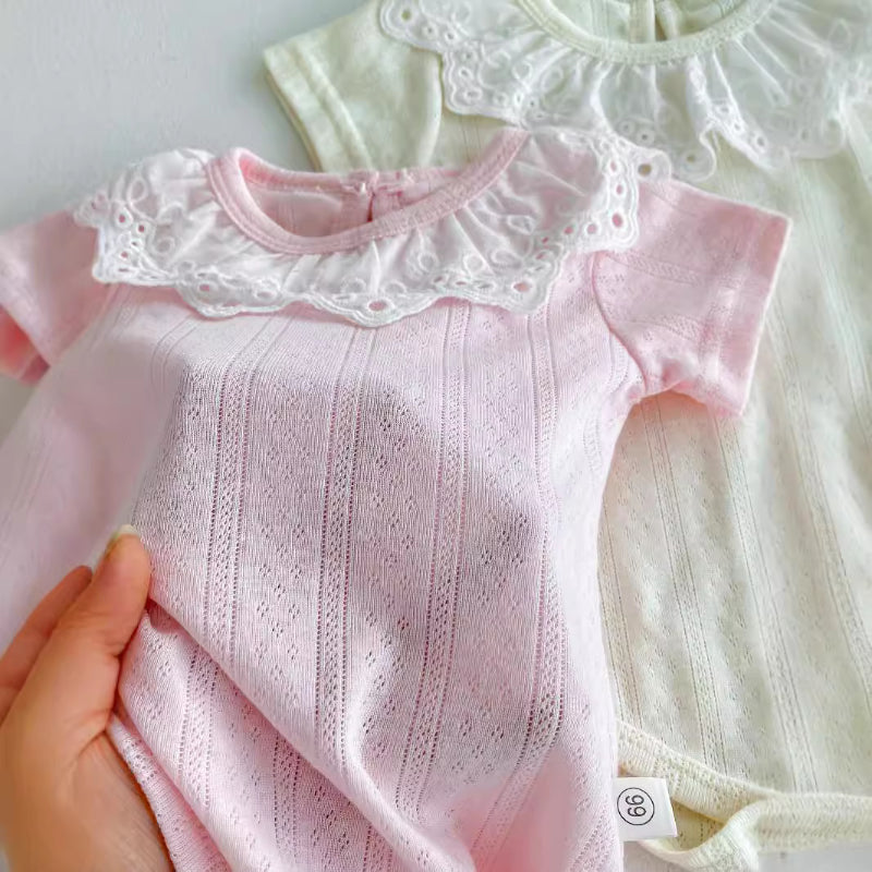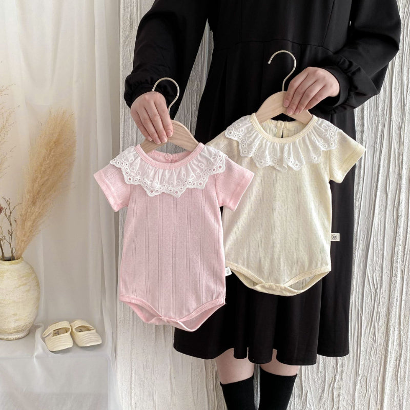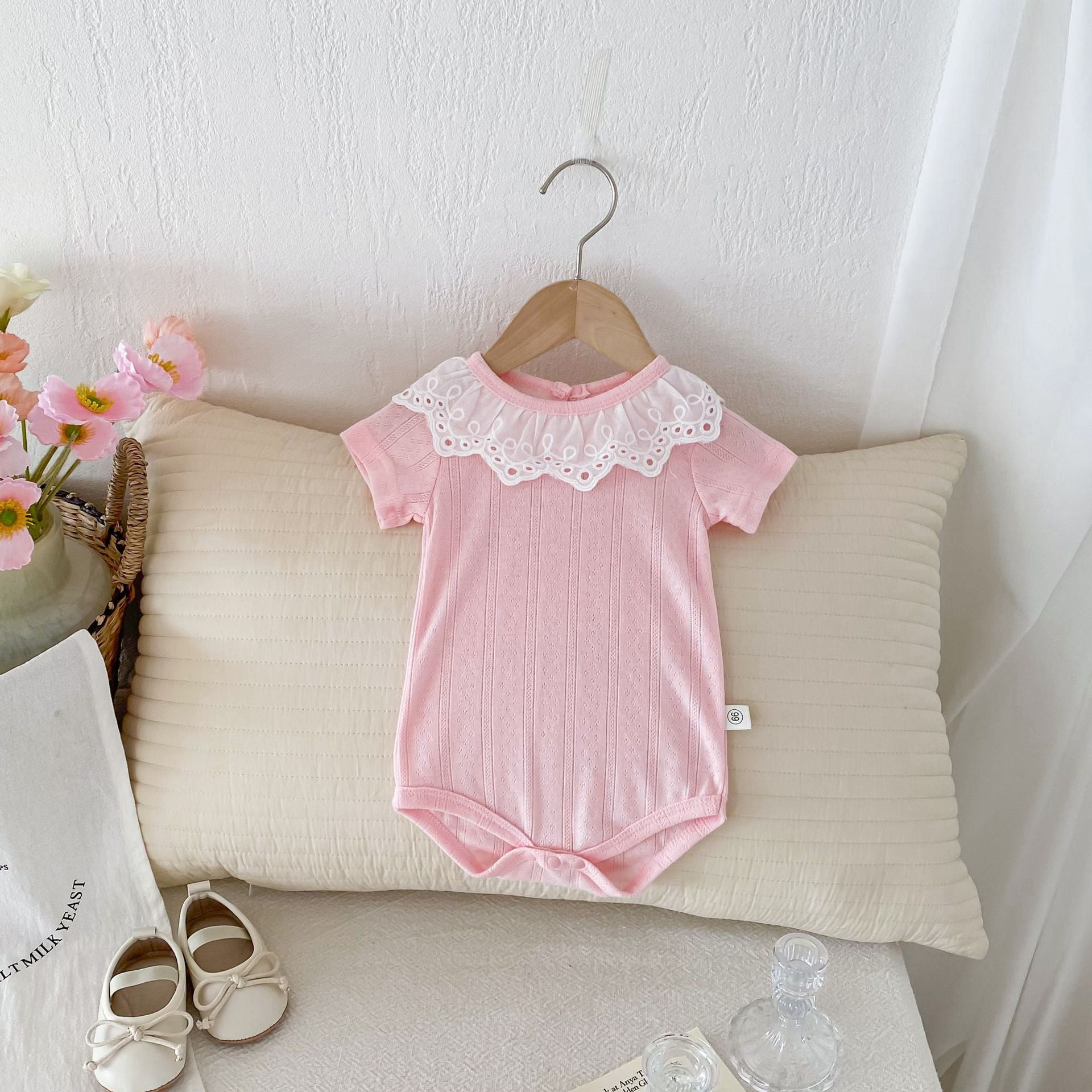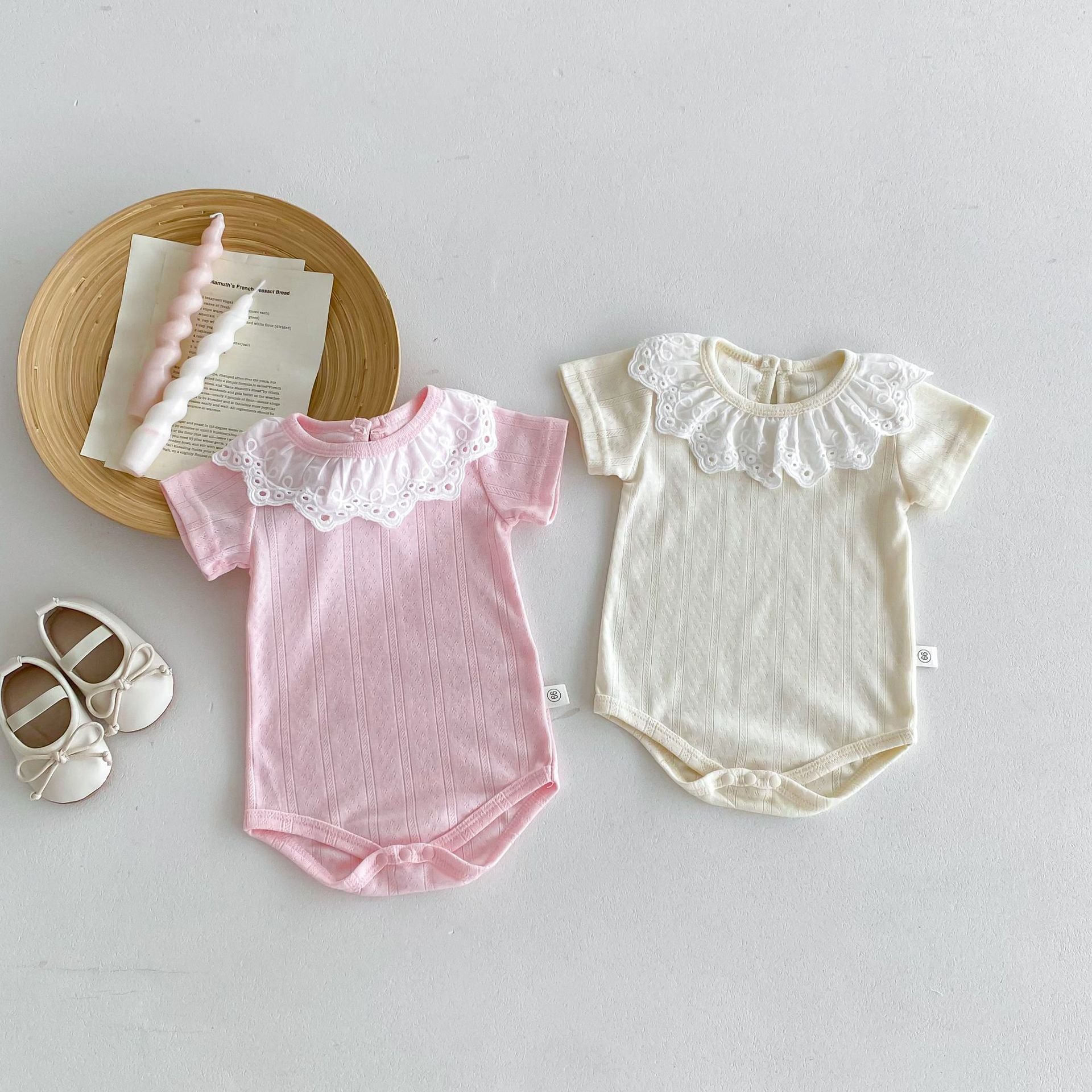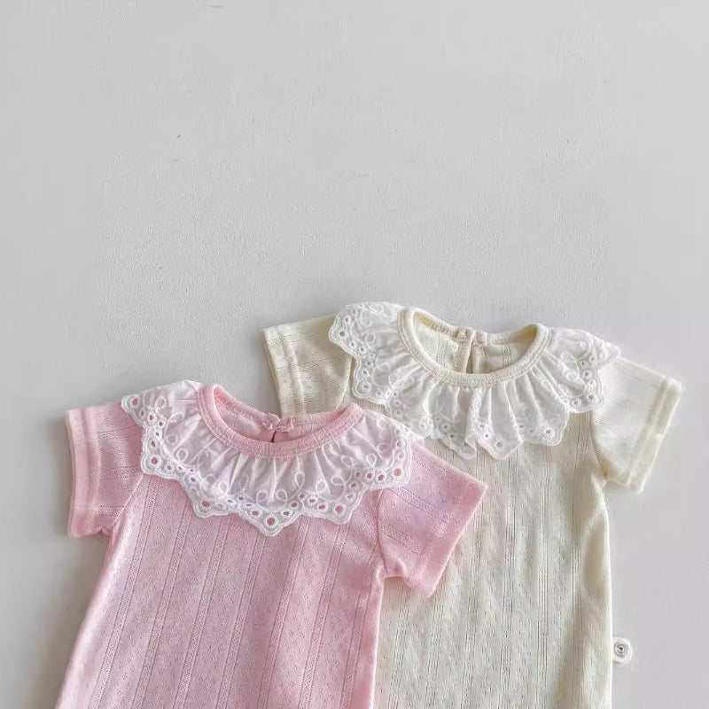 【BABY】夏新作 薄手コットンレース襟ロンパースSK090709
