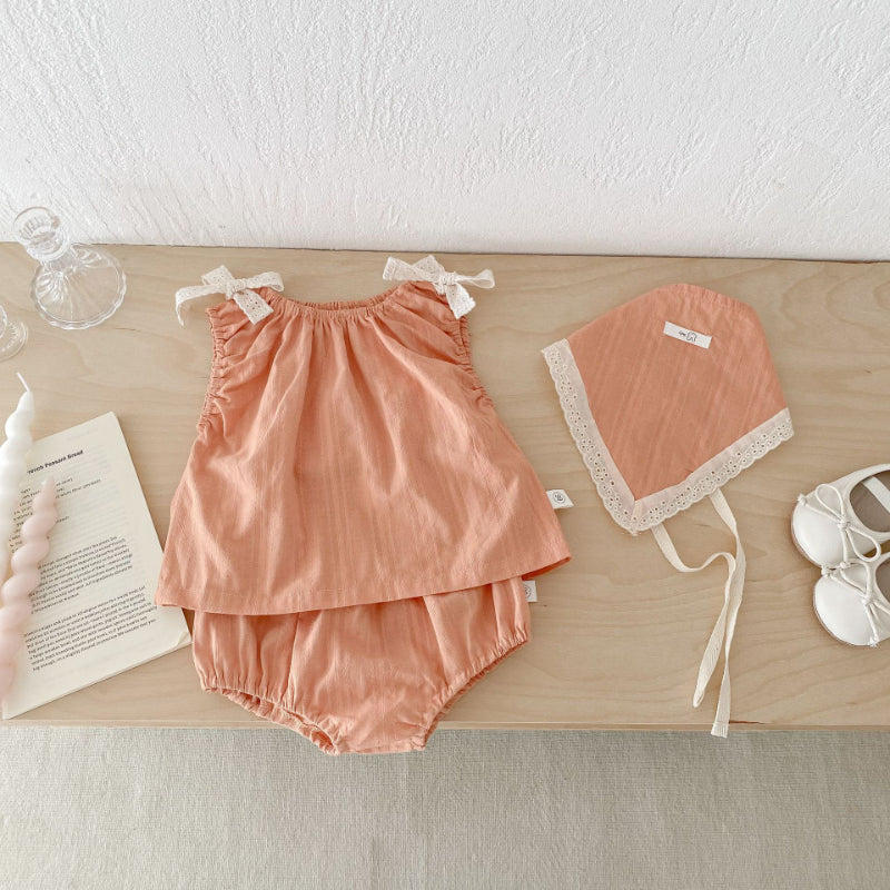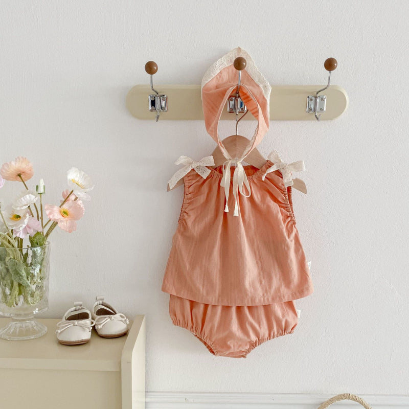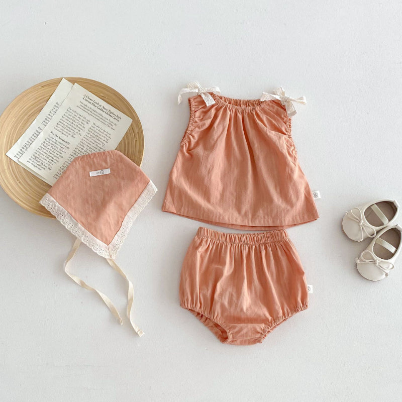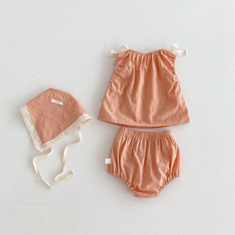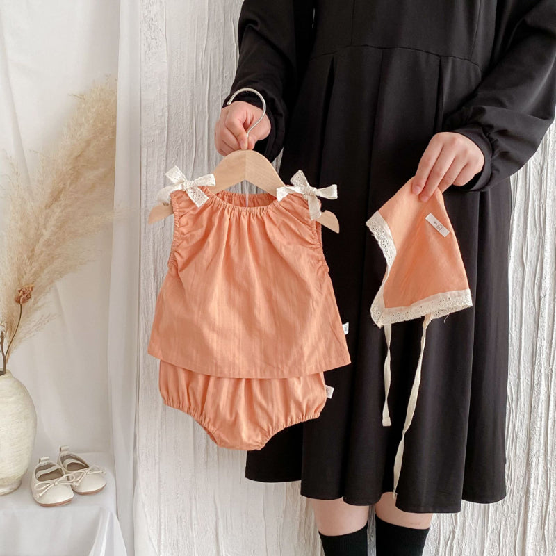 【BABY】夏新作 蝶ネクタイキャミソールトップス&ショートパンツ&ヘッドスカーフの3点SK071903