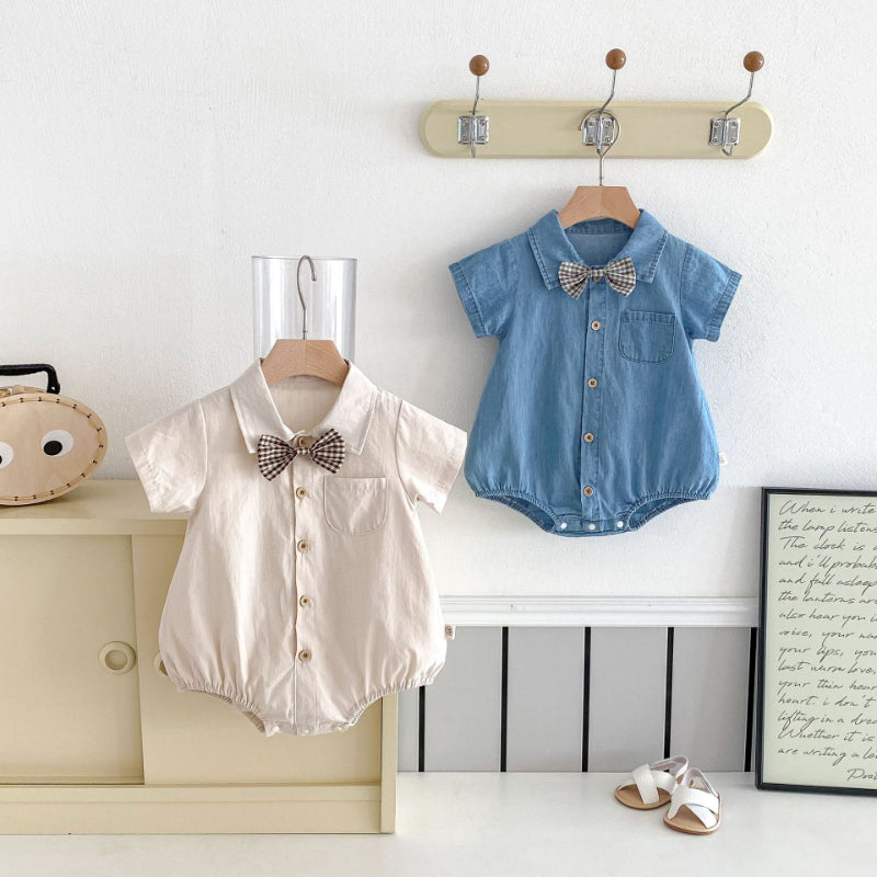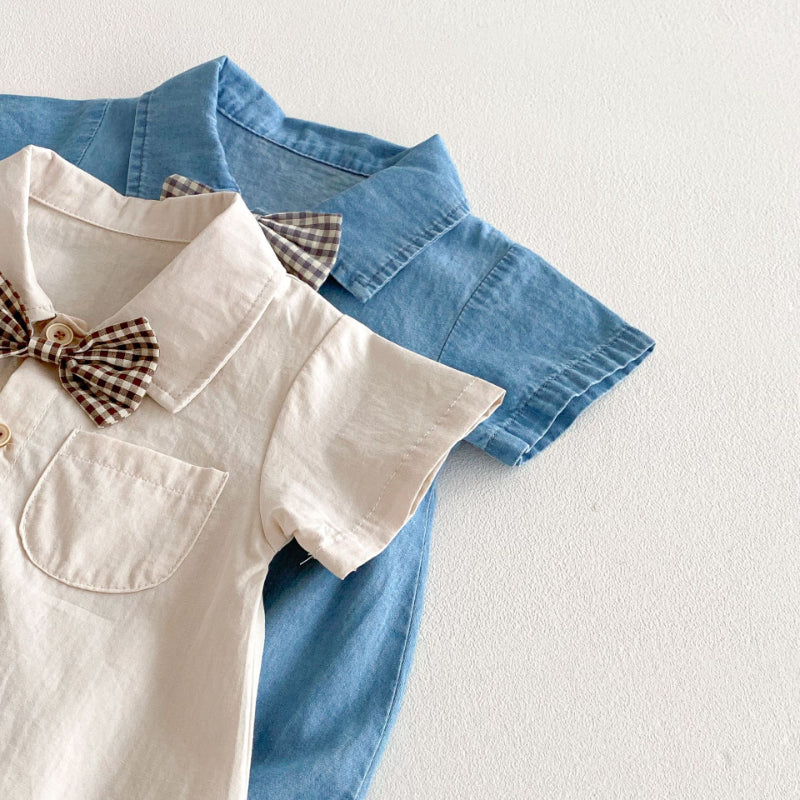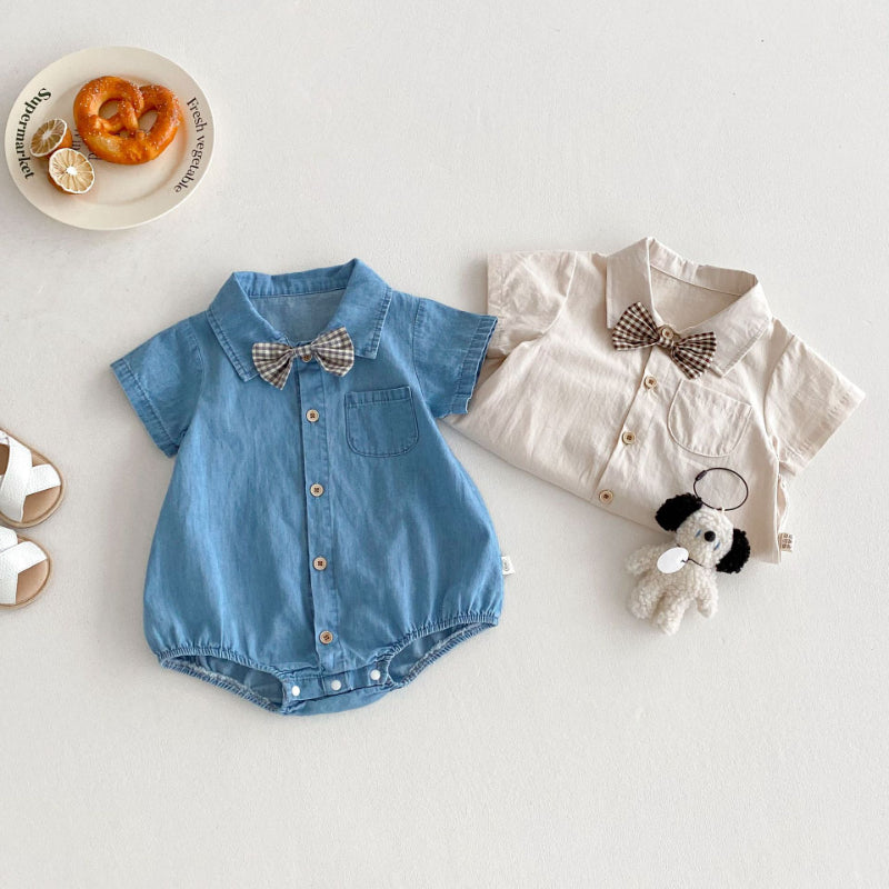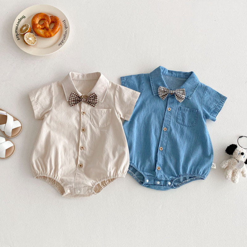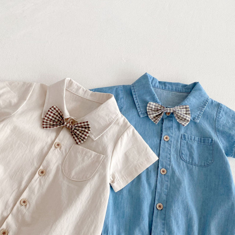 【BABY】夏新作 蝶ネクタイ付きシャツロンパースSK091112