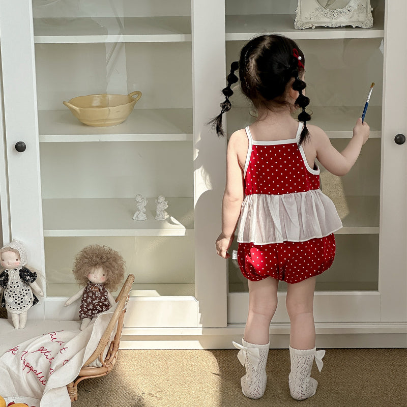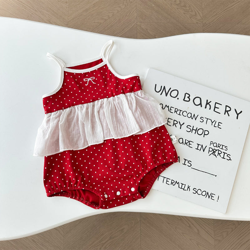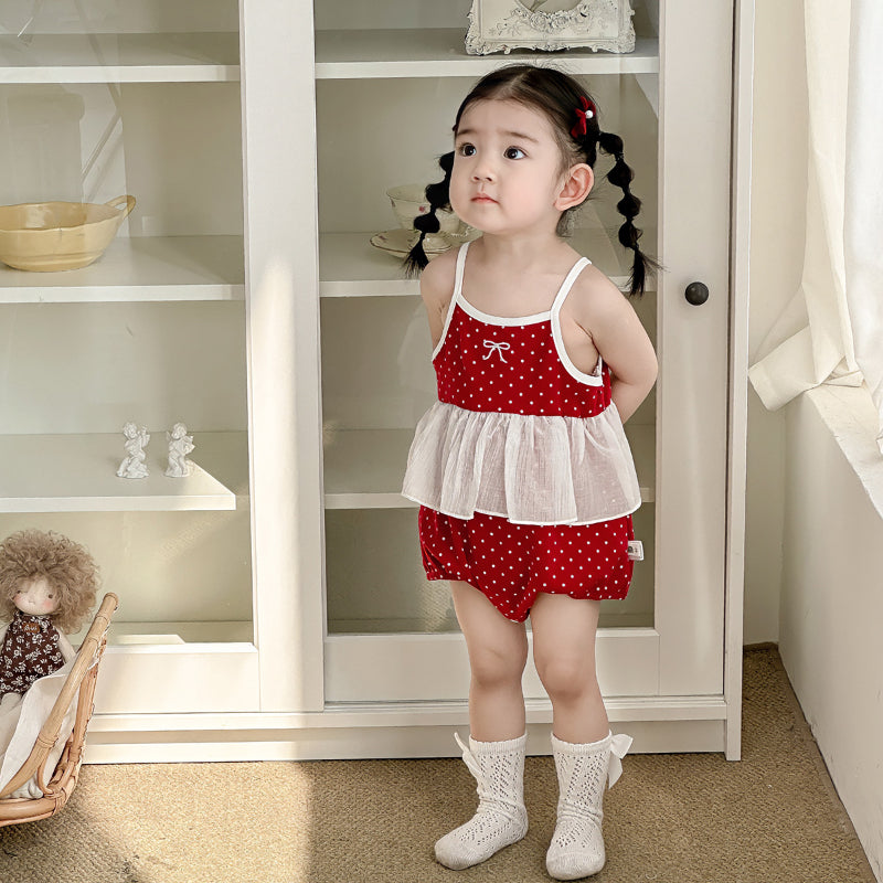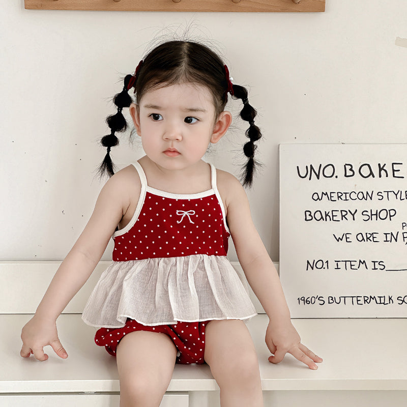 【BABY】夏新作 蝶結びドットロンパースSK091813