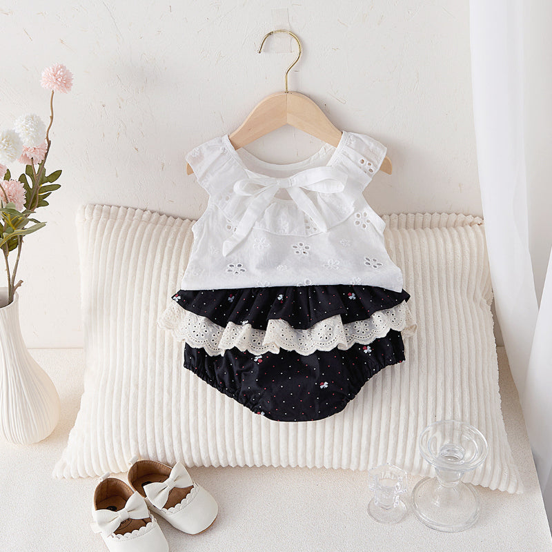 【BABY】夏新作 蝶結びベスト風ノースリーブセットアップSK082606