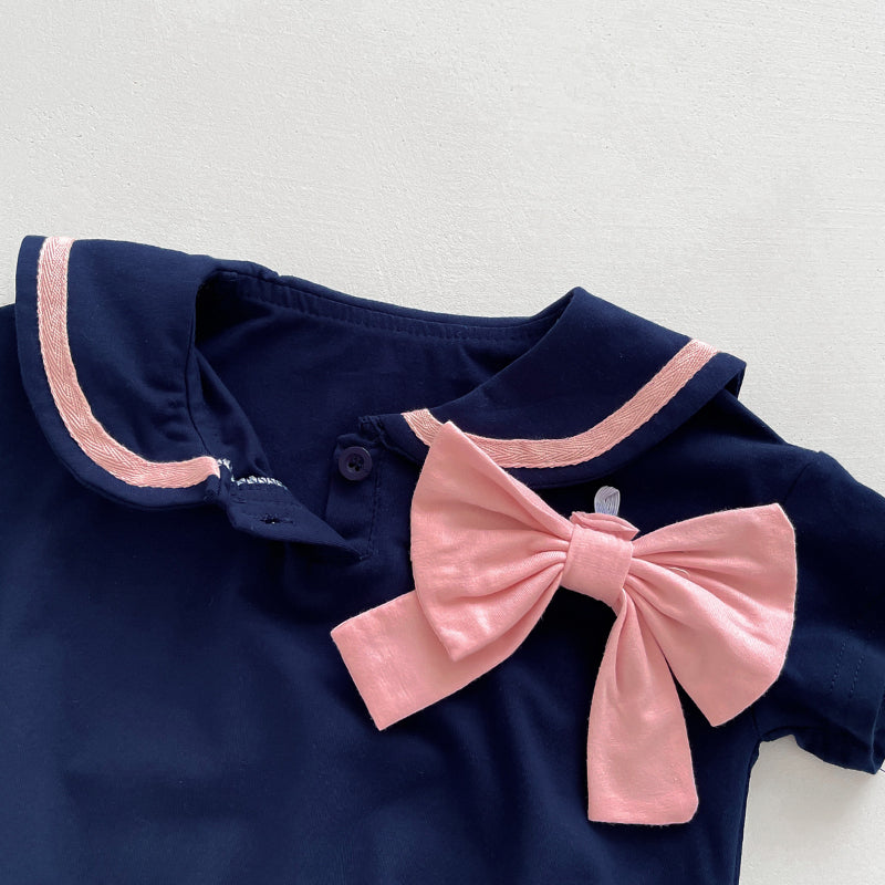 【BABY】夏新作 蝶結び付きポロシャツロンパースSK091321