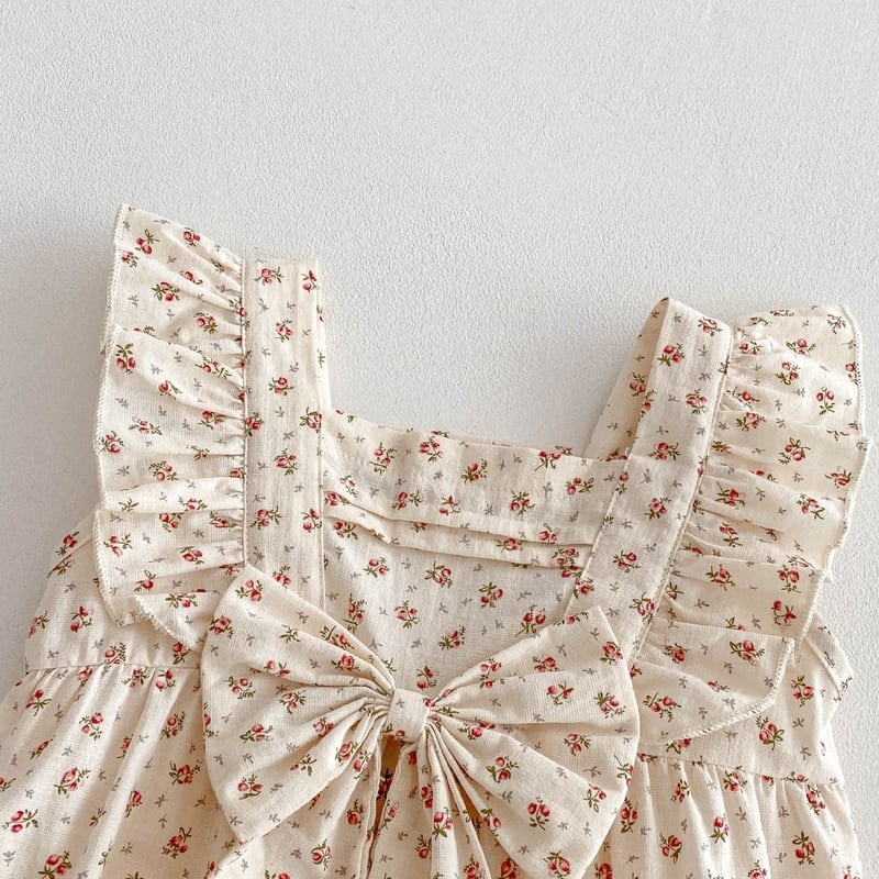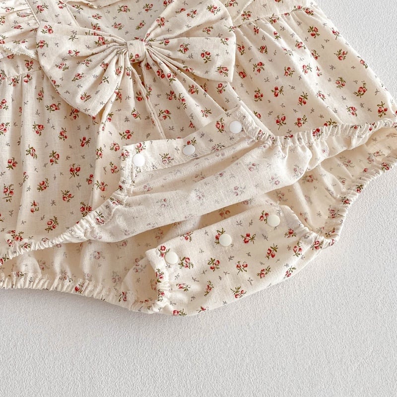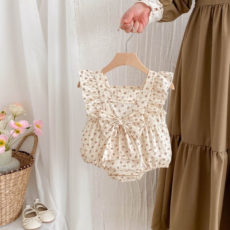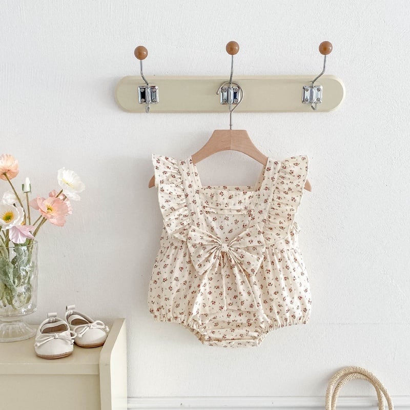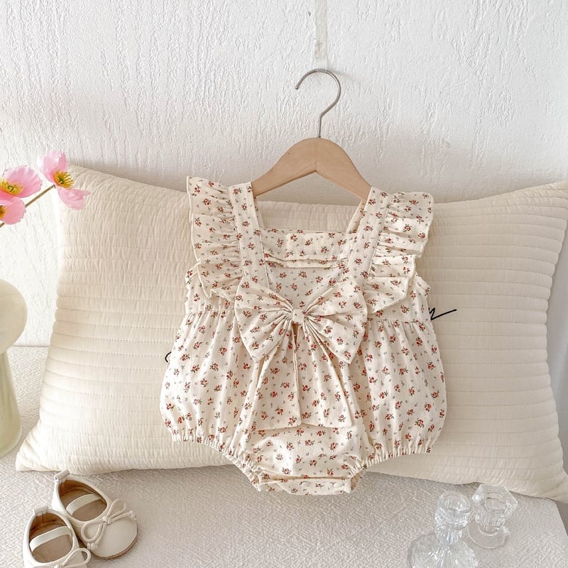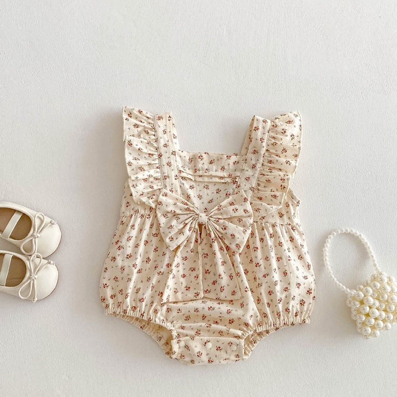 【BABY】夏新作 蝶結び付き総柄フリルロンパースSK081306