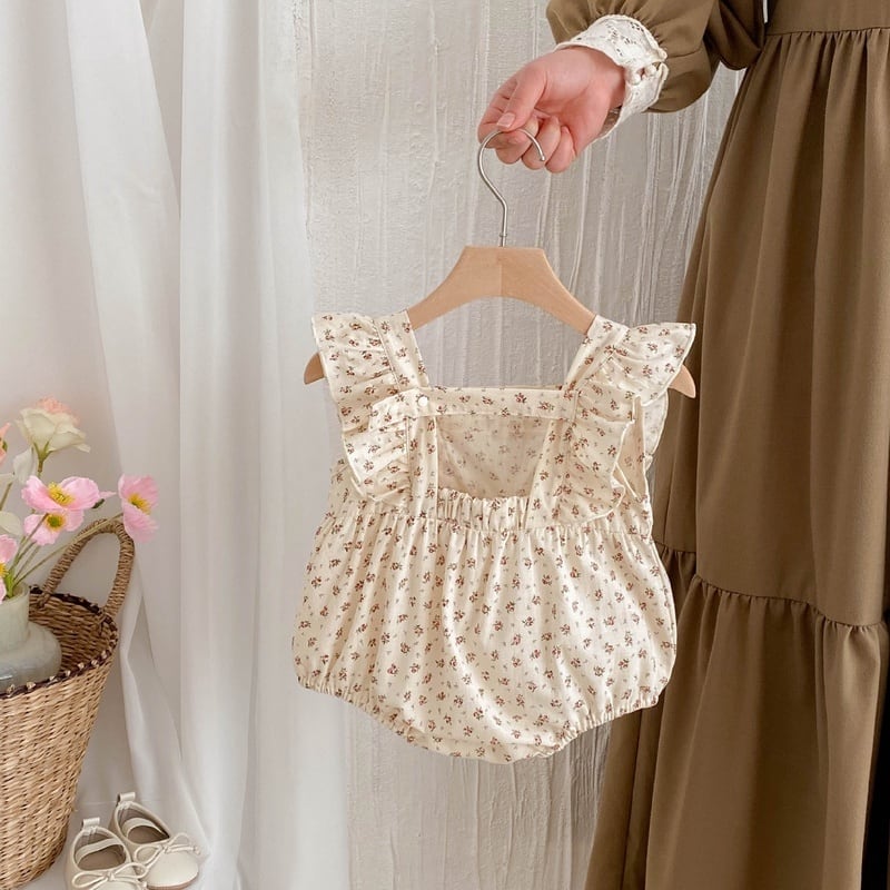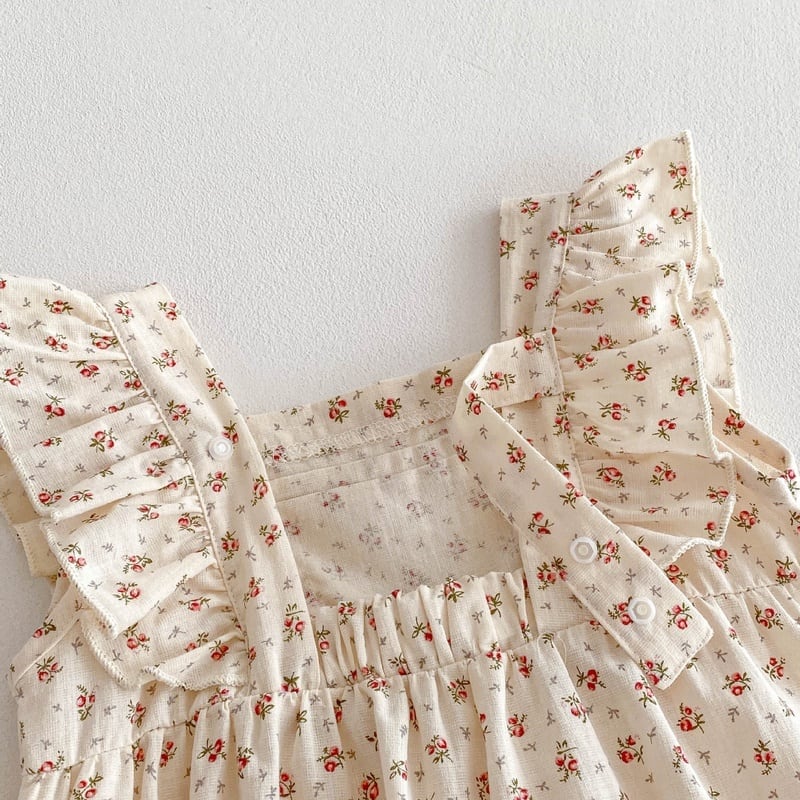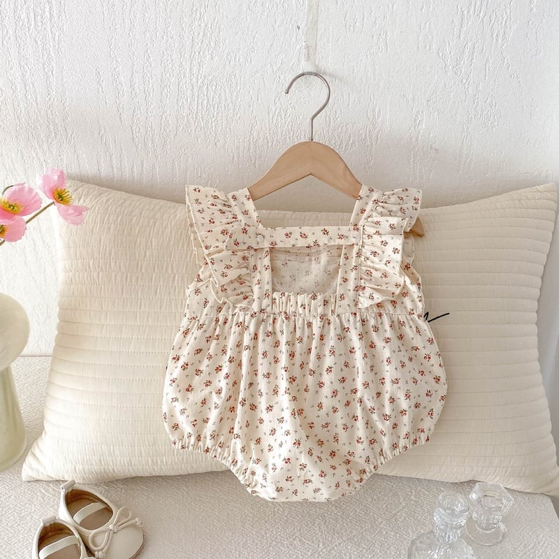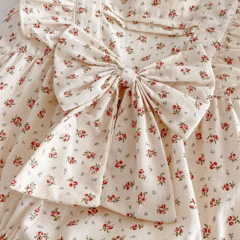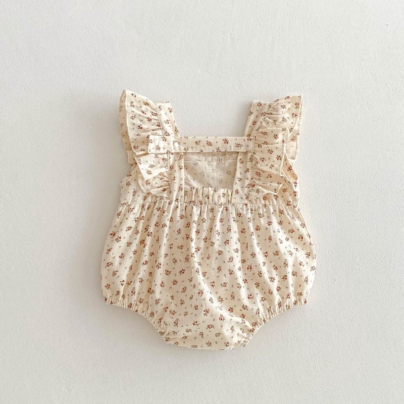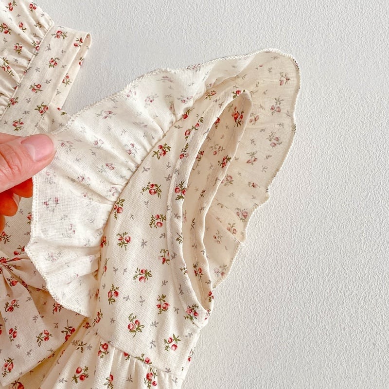 【BABY】夏新作 蝶結び付き総柄フリルロンパースSK081306