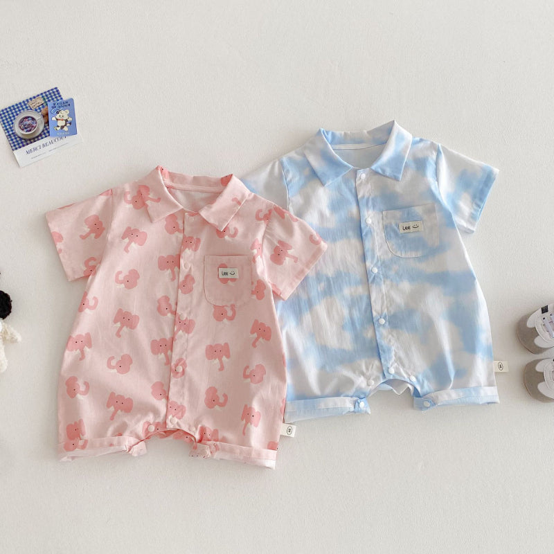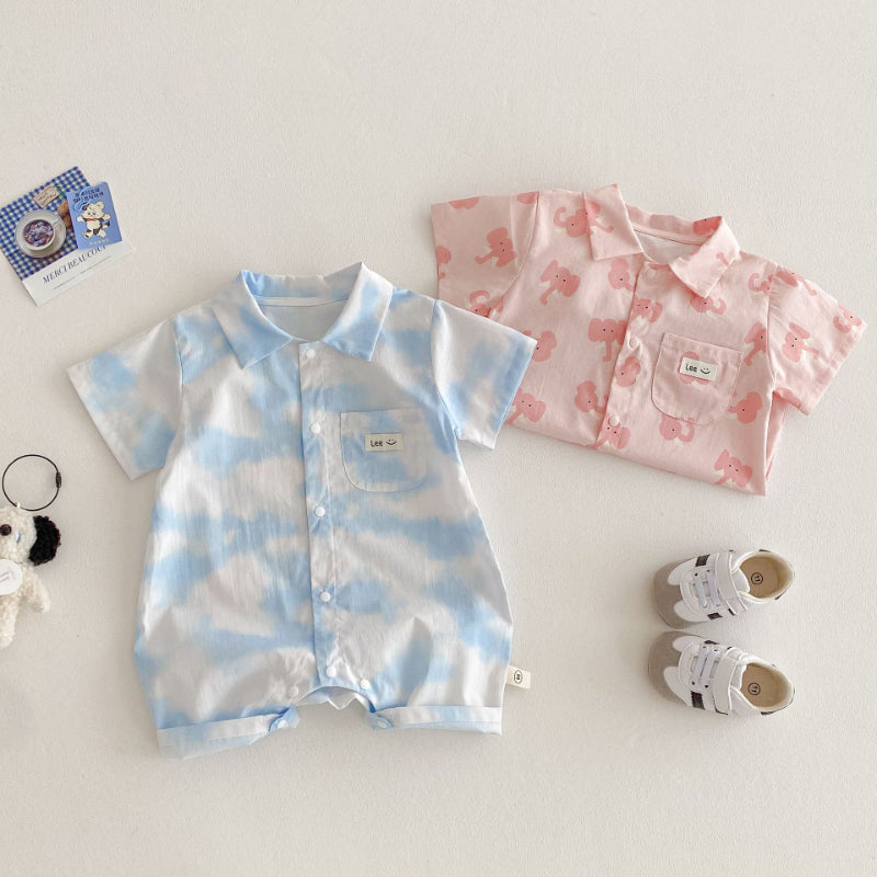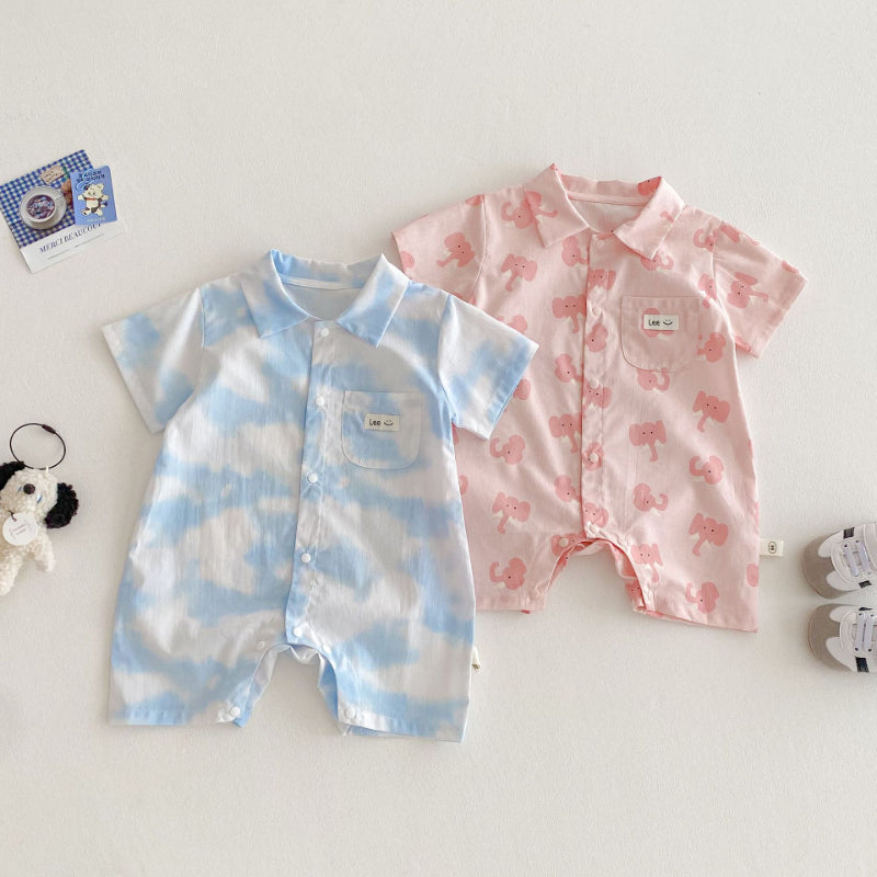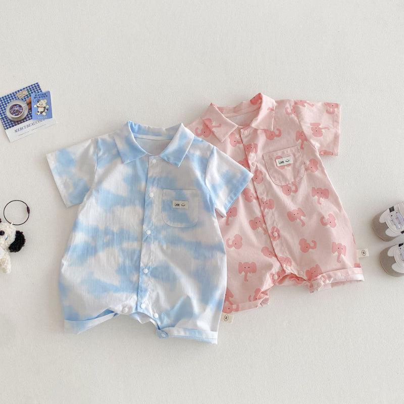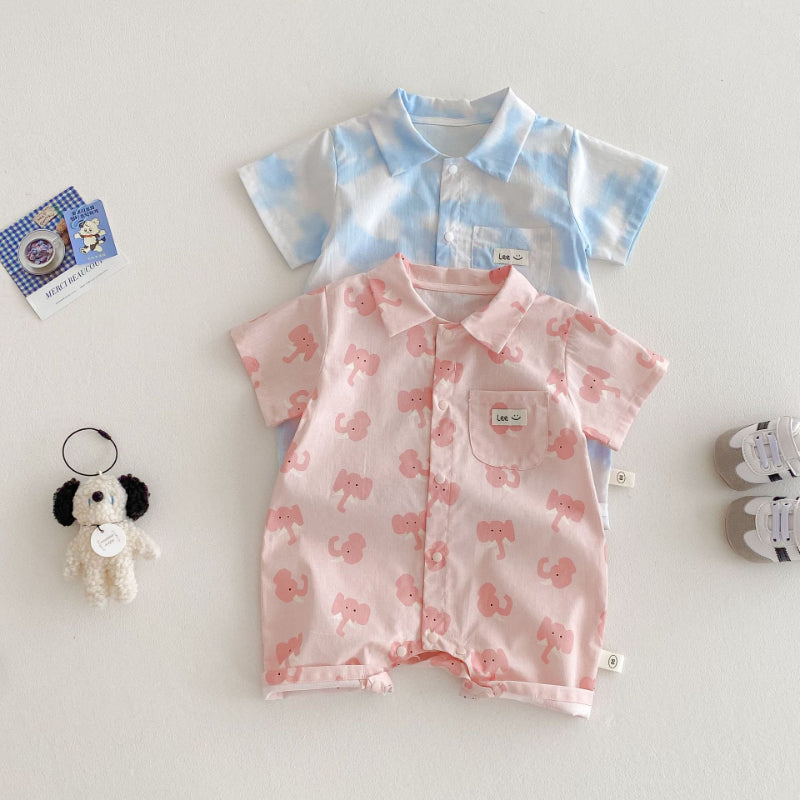 【BABY】夏新作 韓国風総柄ポケット付きロンパースSK070119