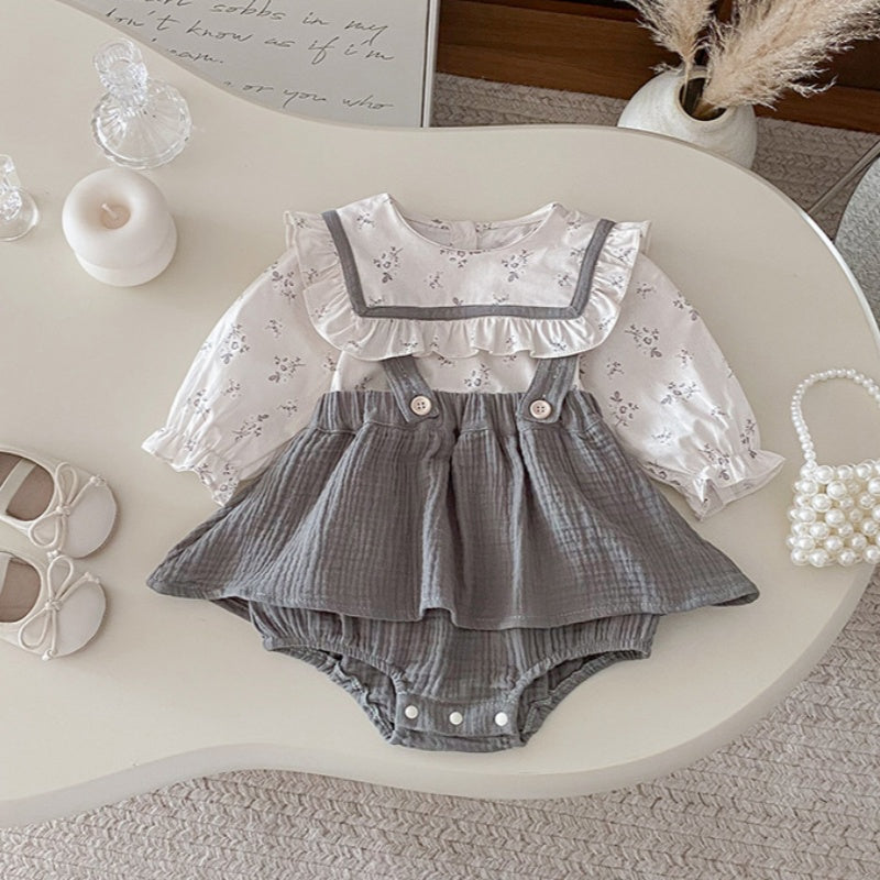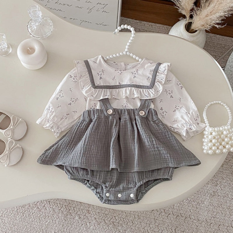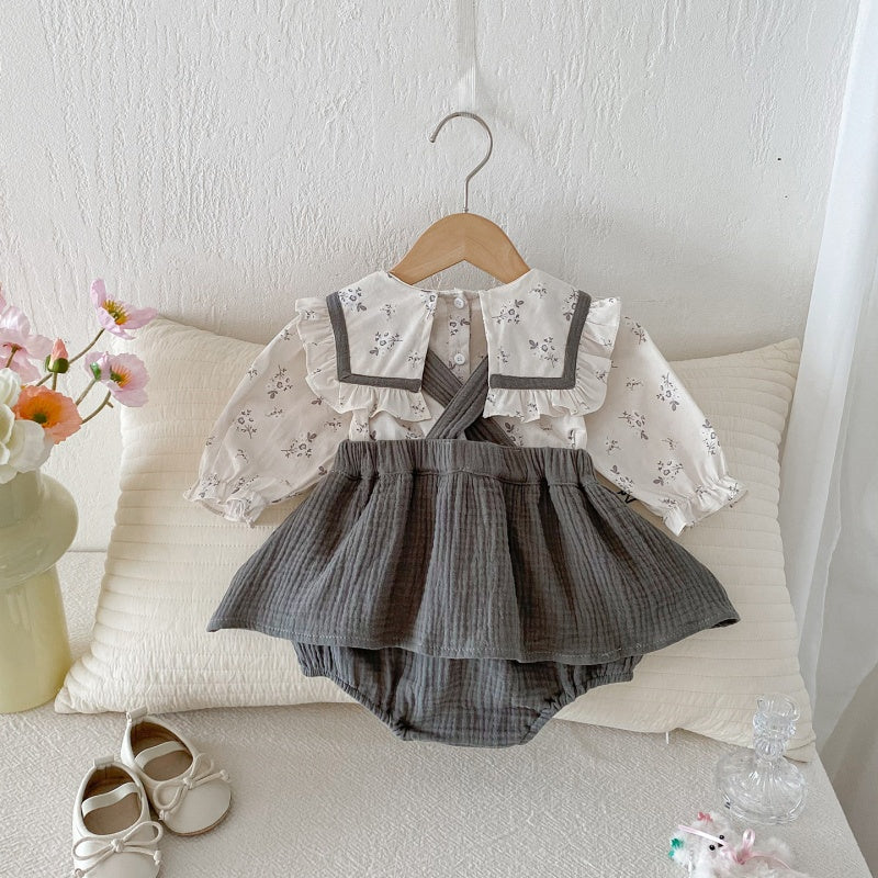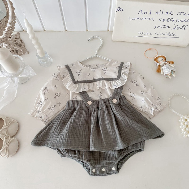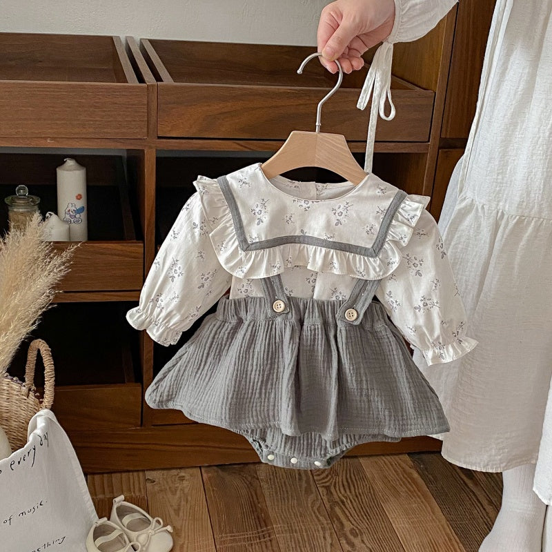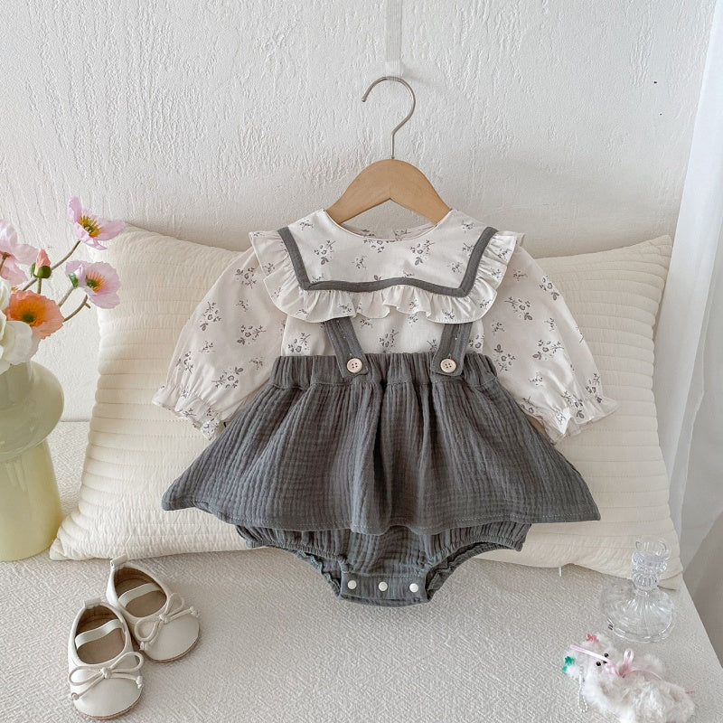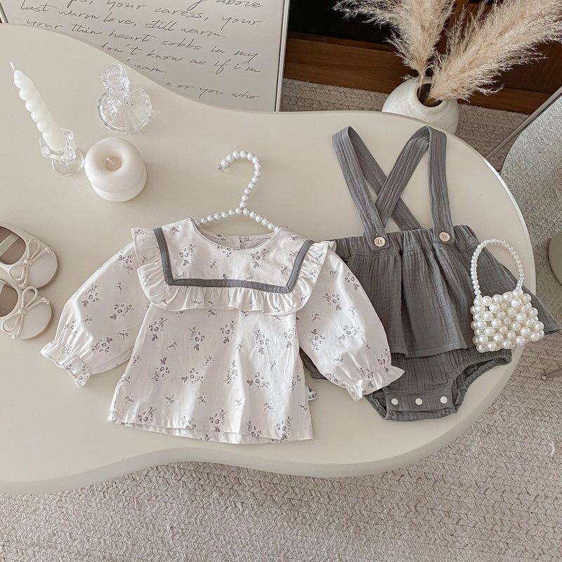 【BABY】大きな丸襟ブラウス&サロペットロンパースSK100436