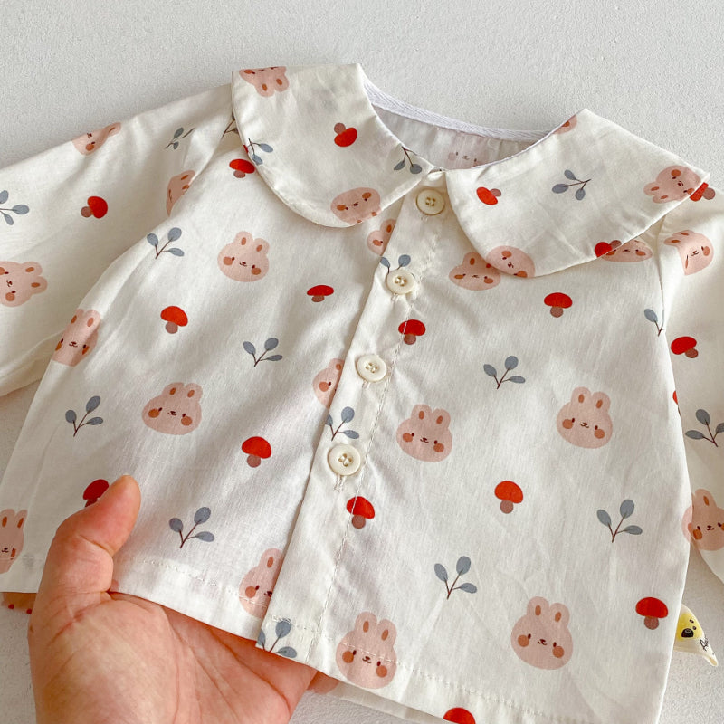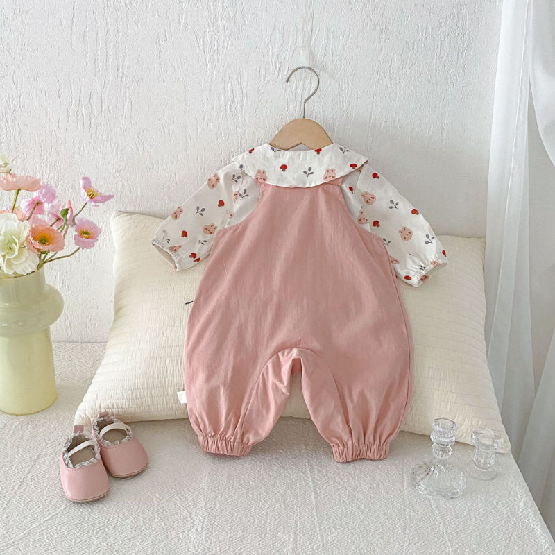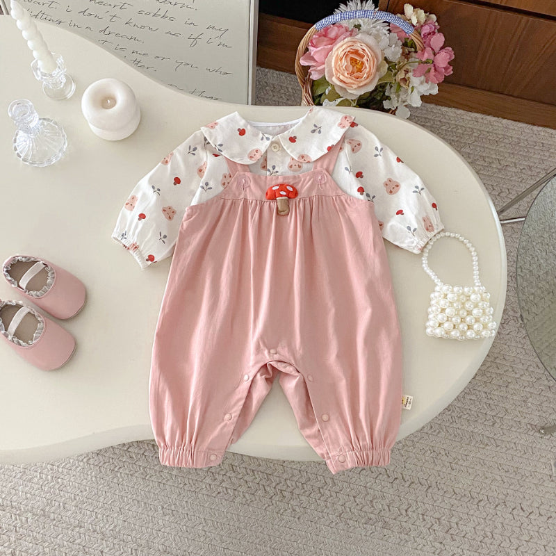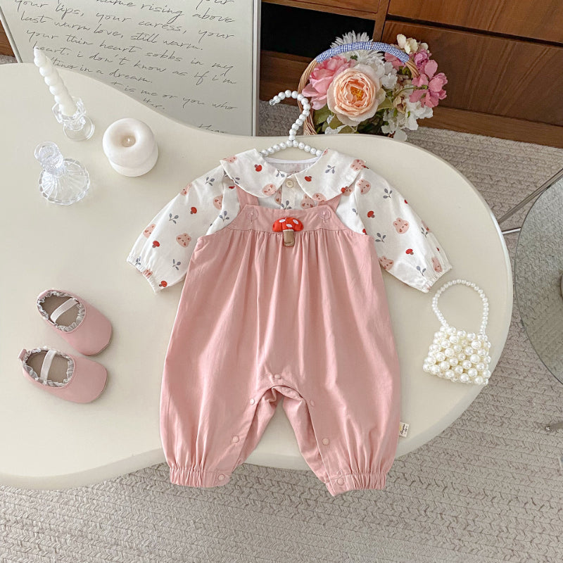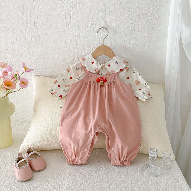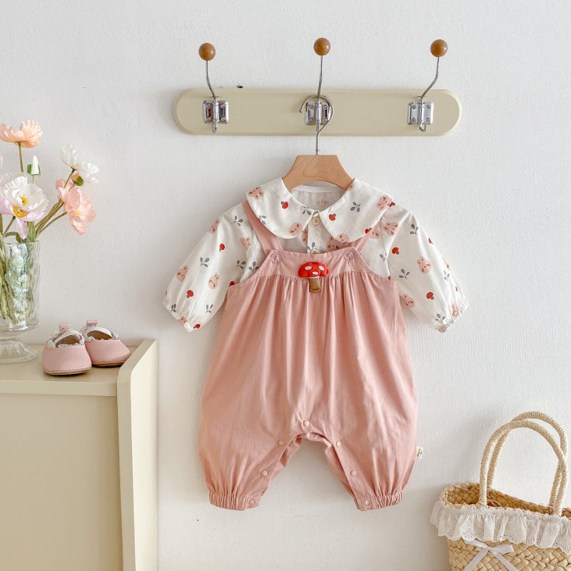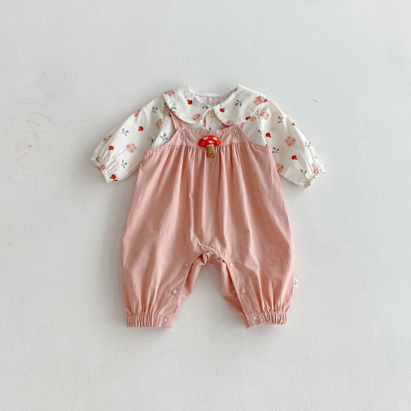 【BABY】小さな襟シャツ&きのこサロペット2点セットSK092302