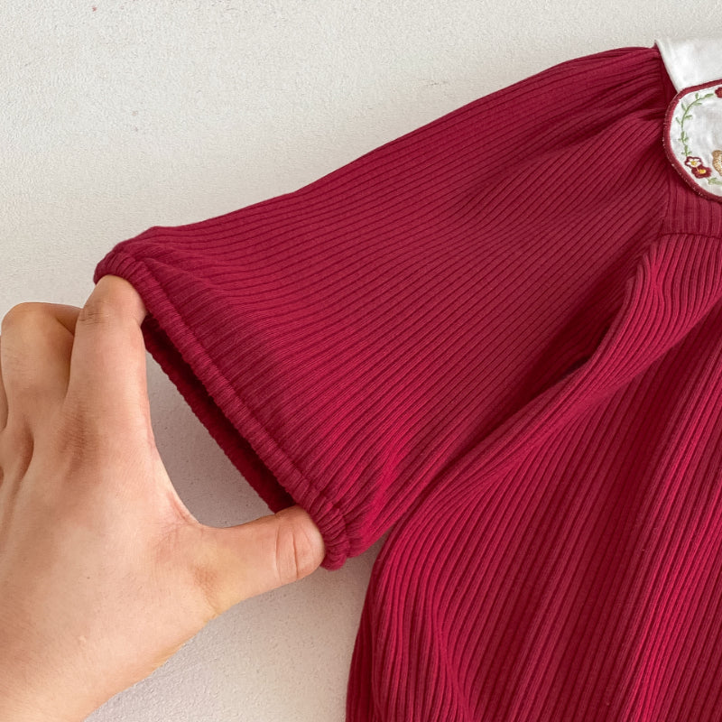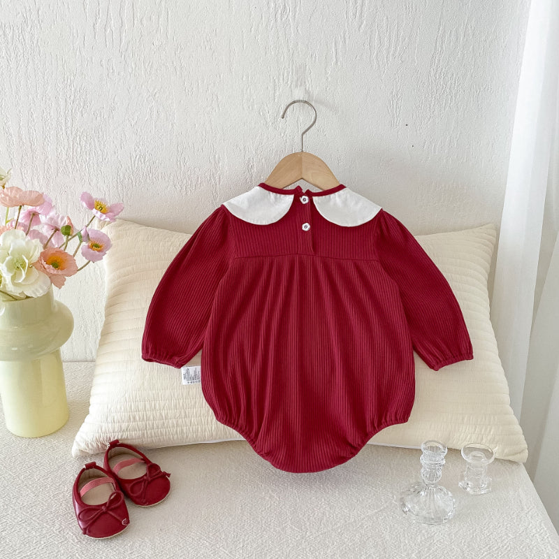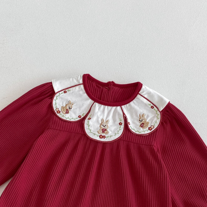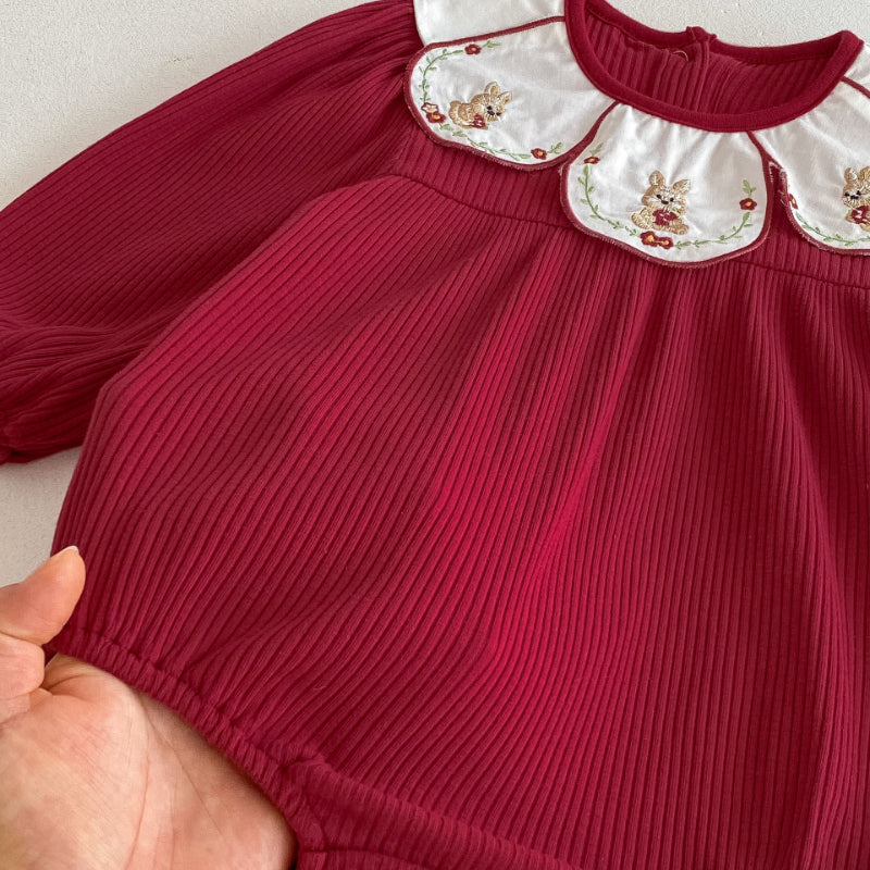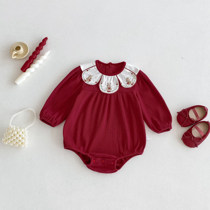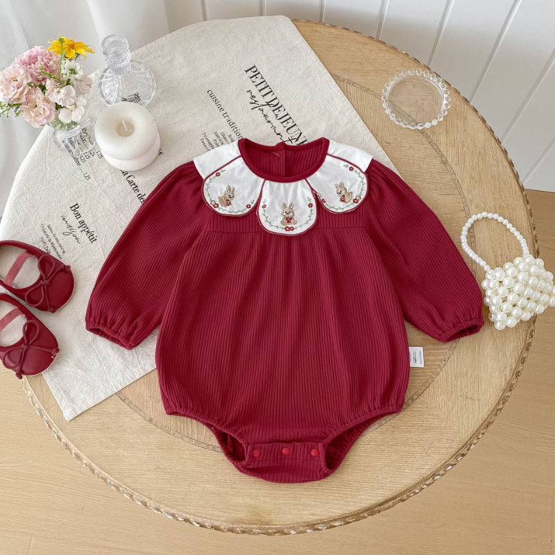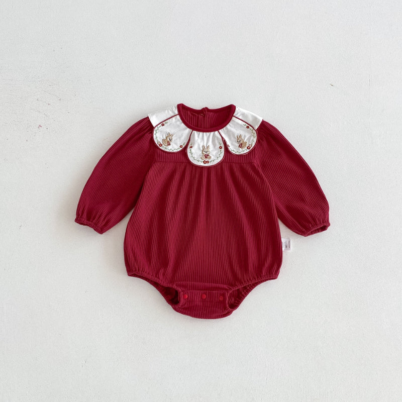 【BABY】小兔刺繍花びら襟ロンパースSK092801