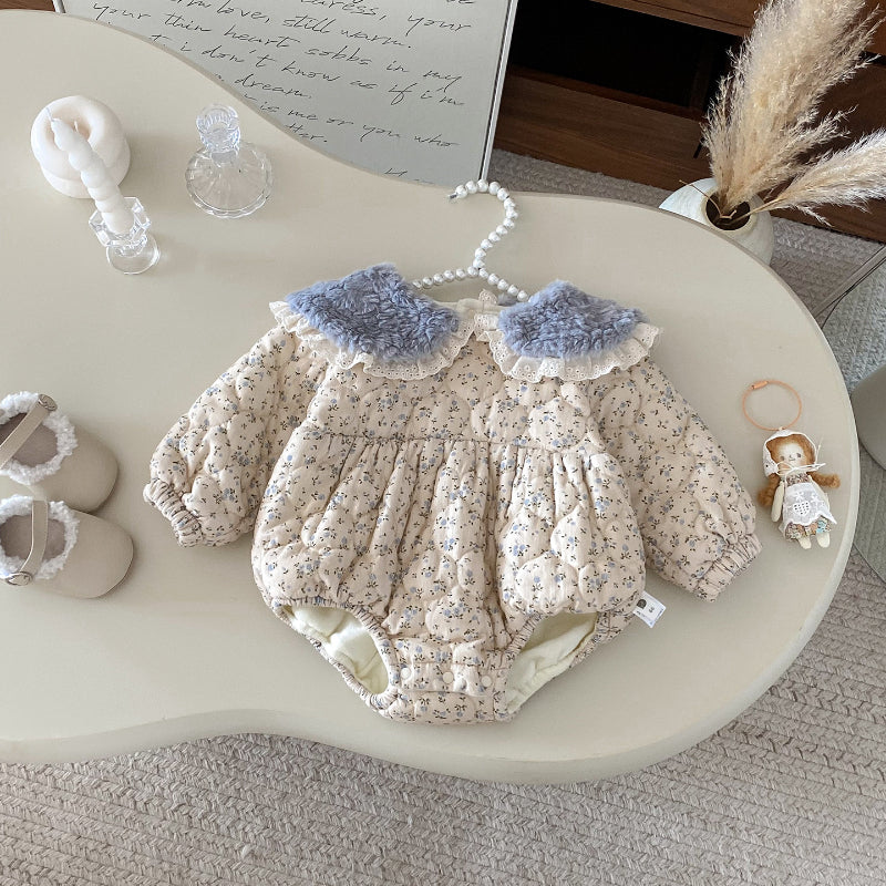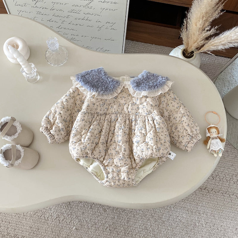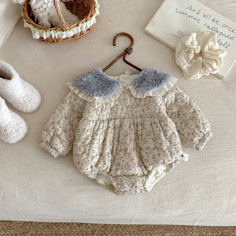 【BABY】冬新作 小花柄キルティングロンパースSK102103