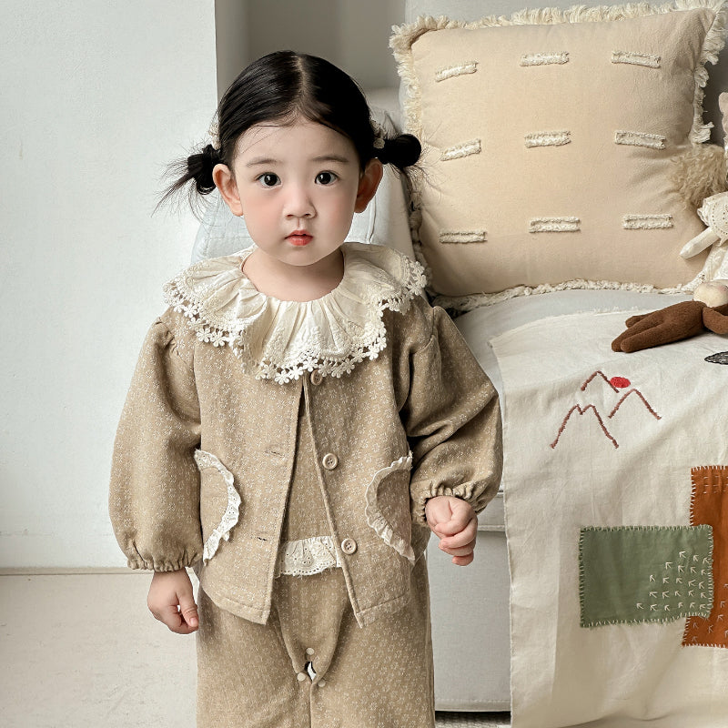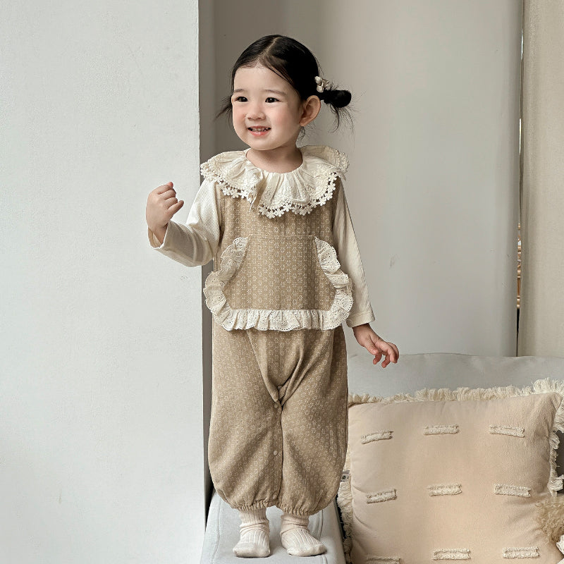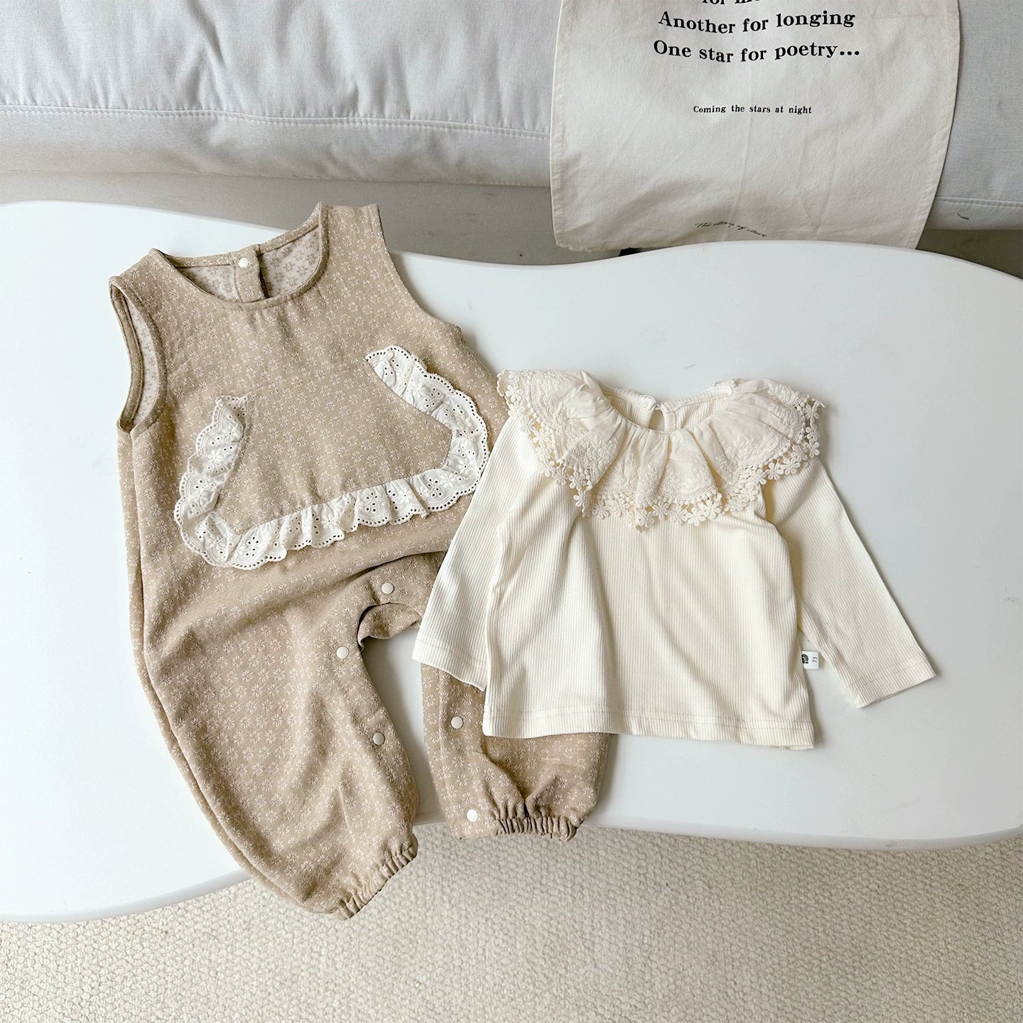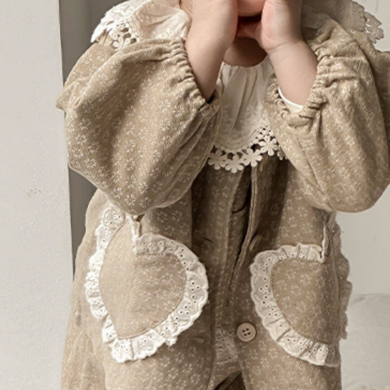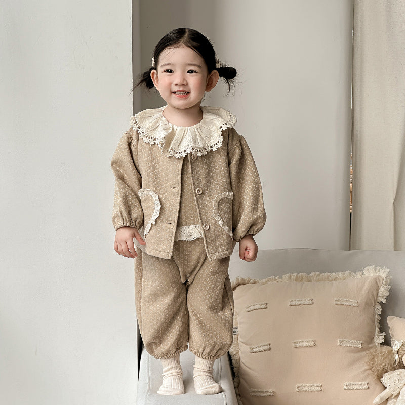 【BABY】小花柄サロペット&レースTシャツ、ハートポケットアウターSK101417