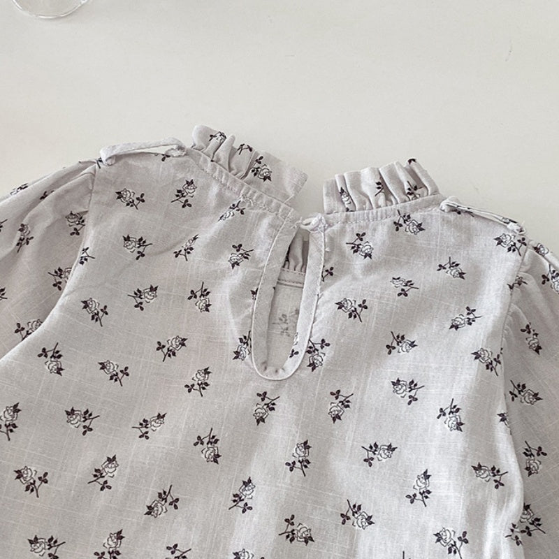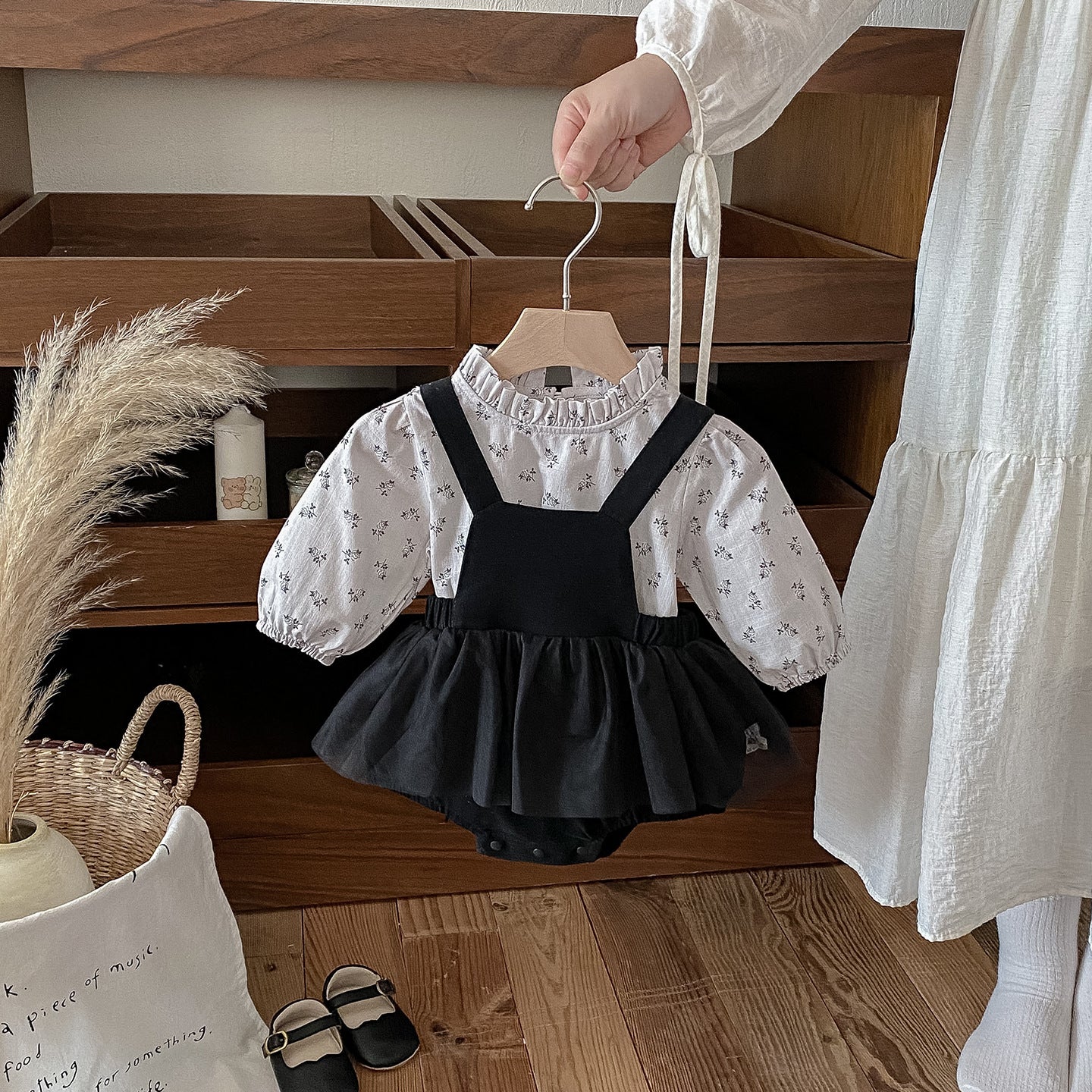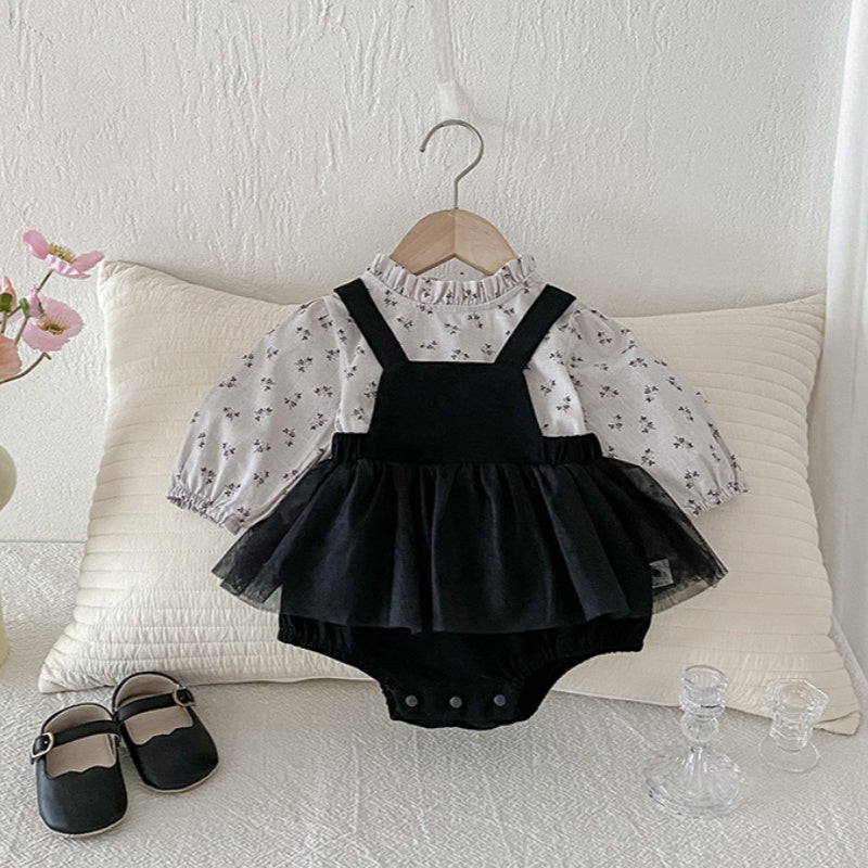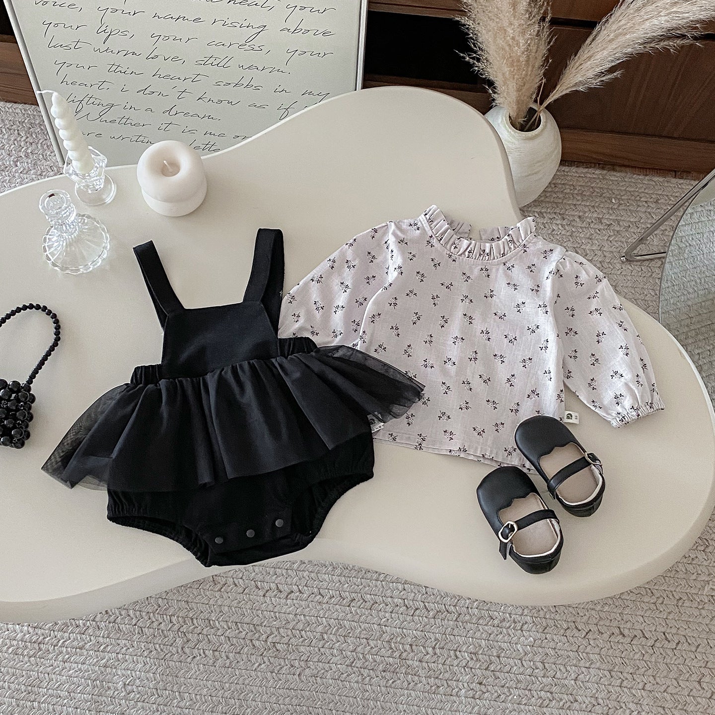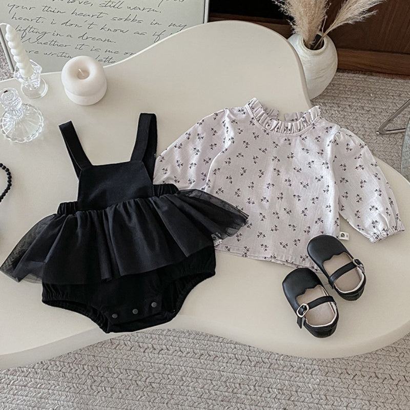 【BABY】小花柄ブラウス&無地サロペットロンパースSK100426