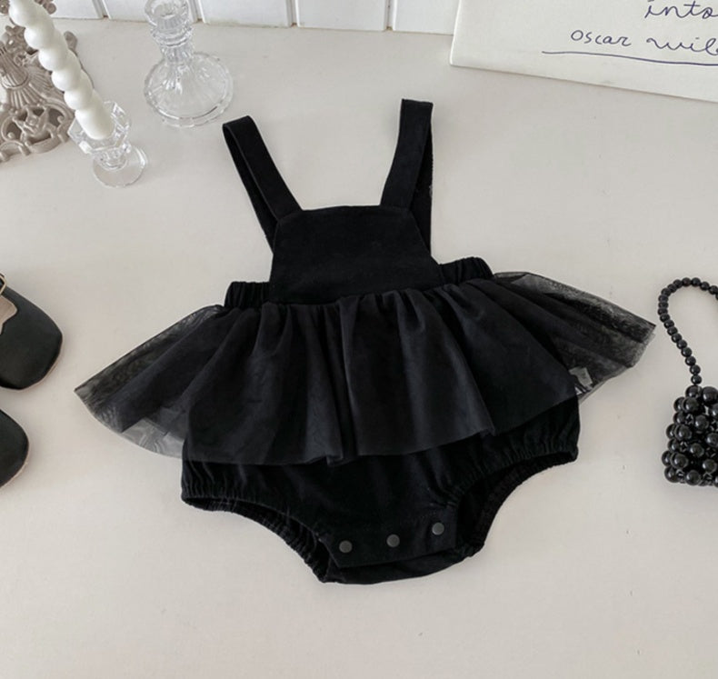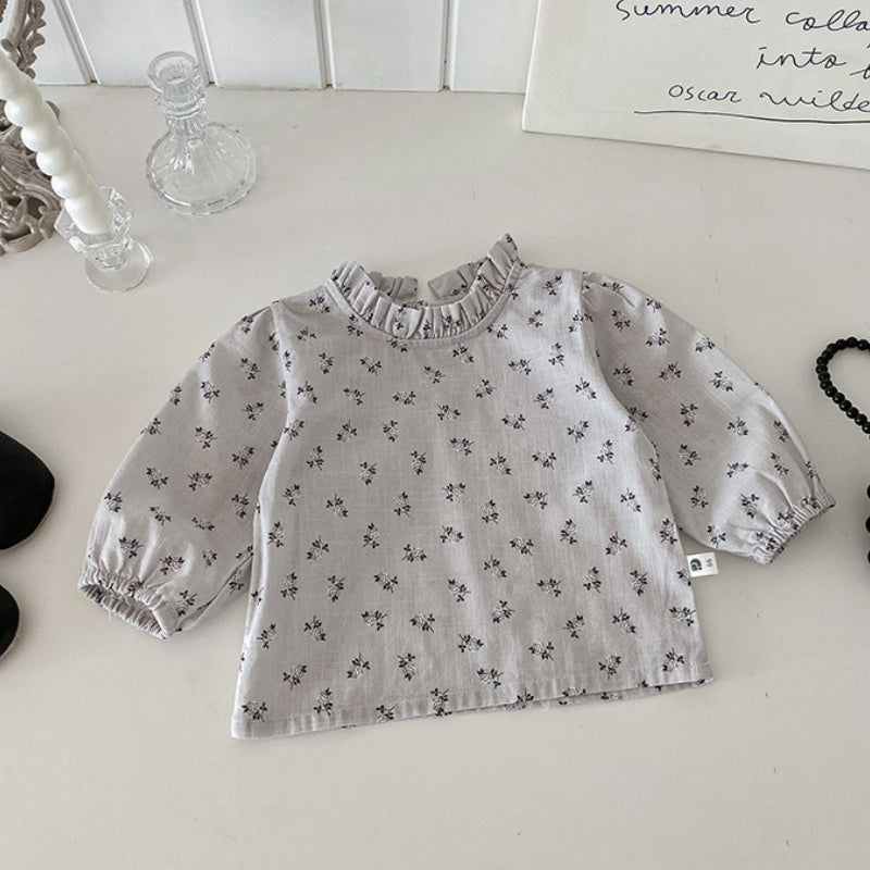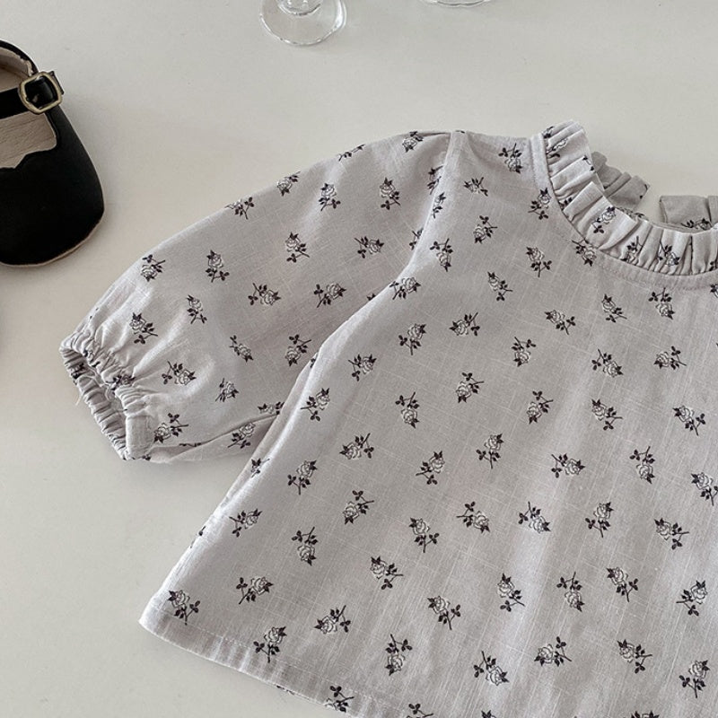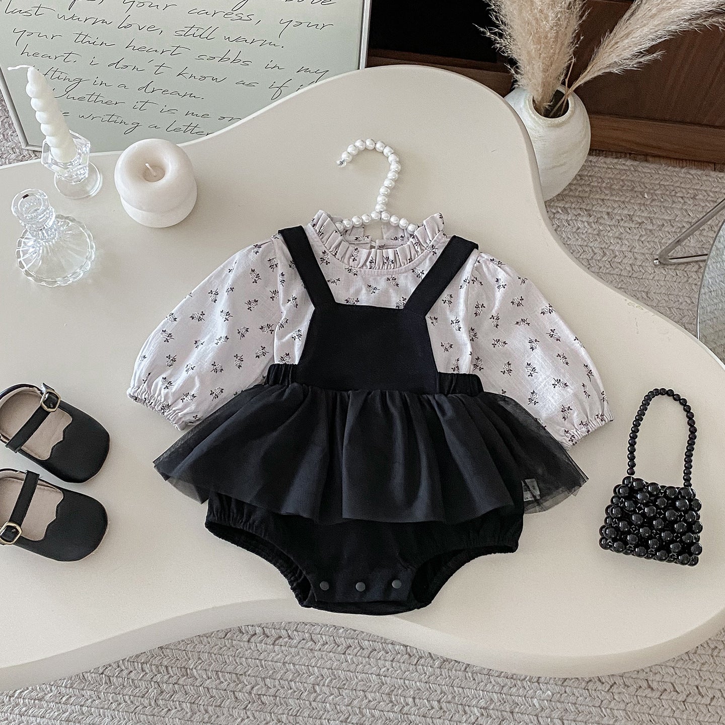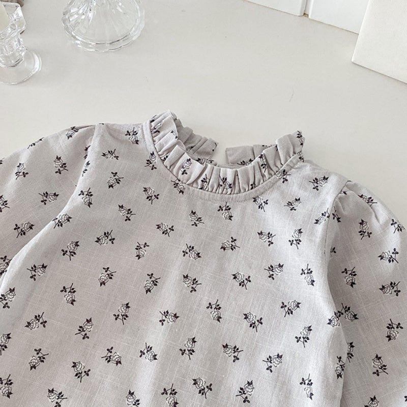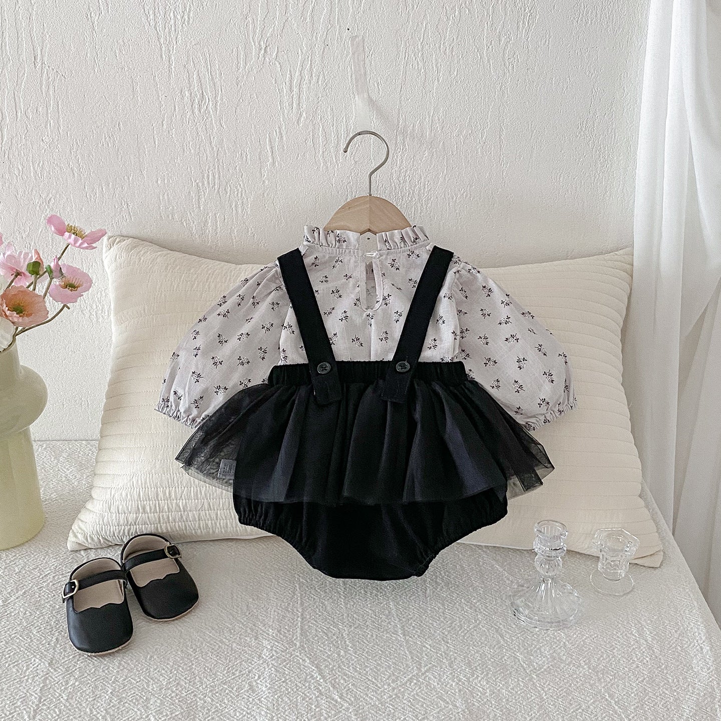 【BABY】小花柄ブラウス&無地サロペットロンパースSK100426