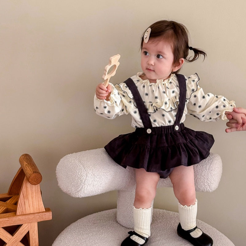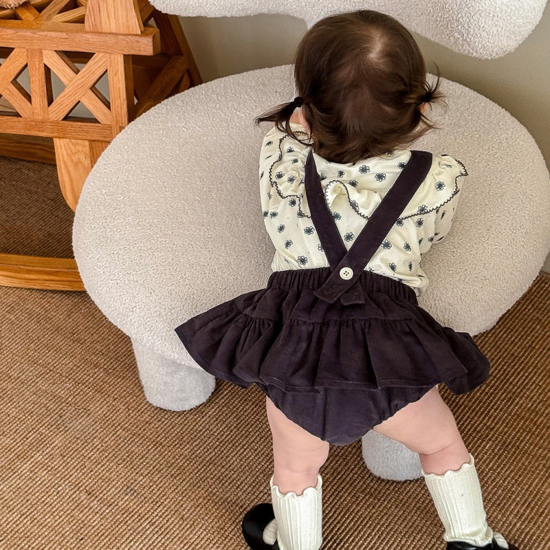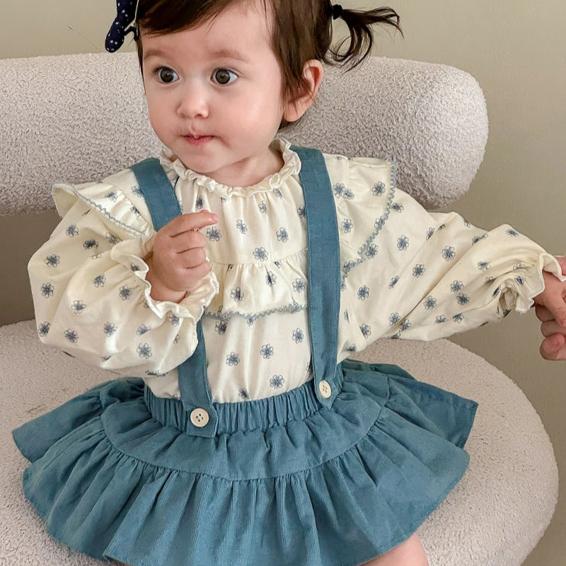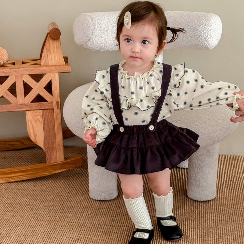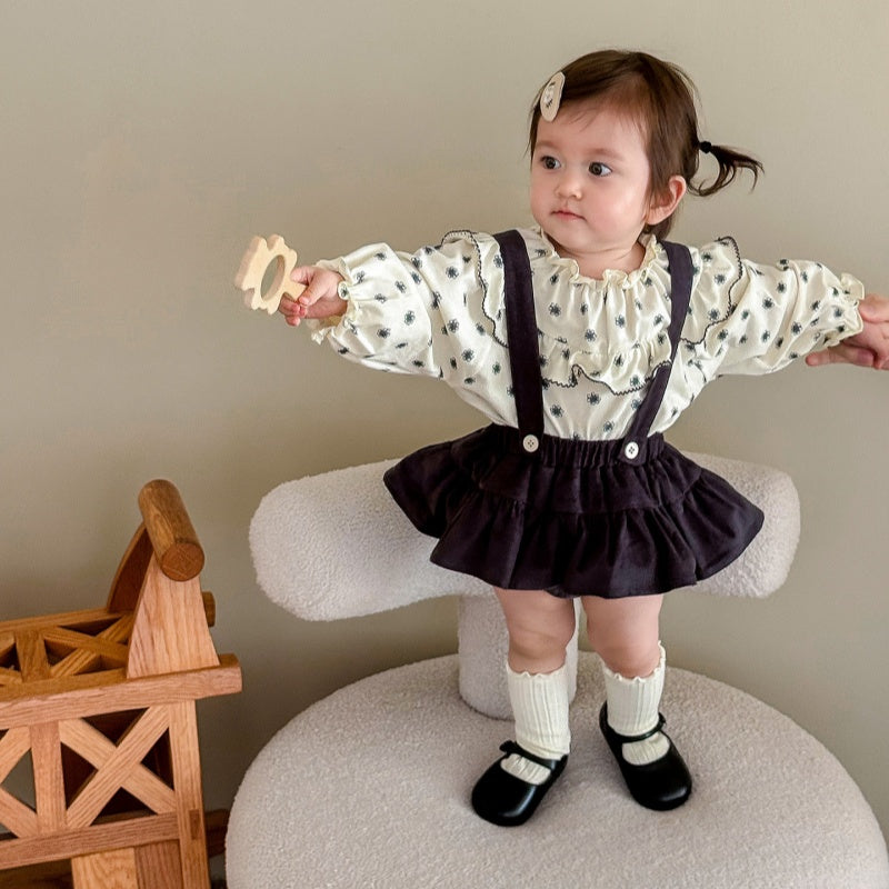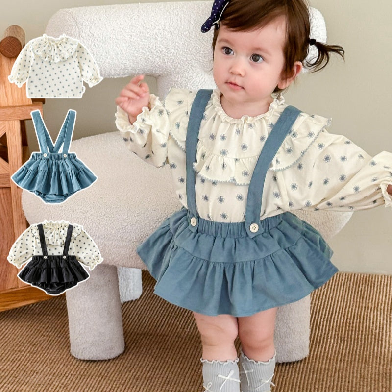 【BABY】小花柄Tシャツ、サロペットロンパースSK100311