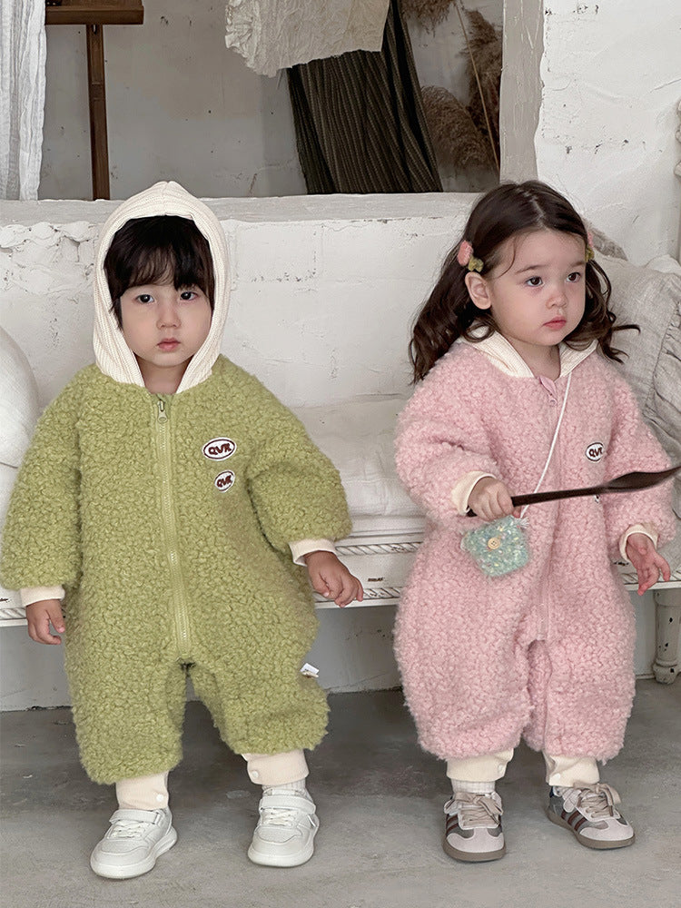 【BABY】帽子付き裏起毛ロンパースSK11551