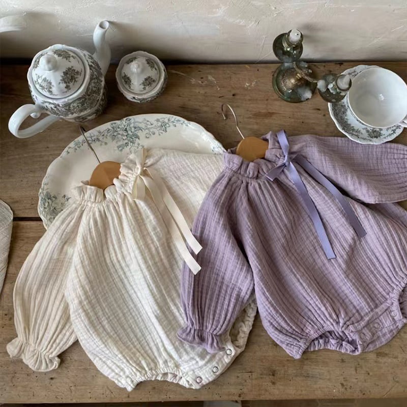 【BABY】春新作優しいピュアカラーリボンロンパースSK11321